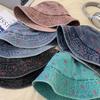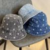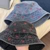 Bordado de mariposa Sombrero de pescador de mezclilla para mujer de ala ancha que hace que la cara se vea pequeña, moda casual, sombrero de cubo, protección solar para primavera y verano, sombrero para la sombra del sol