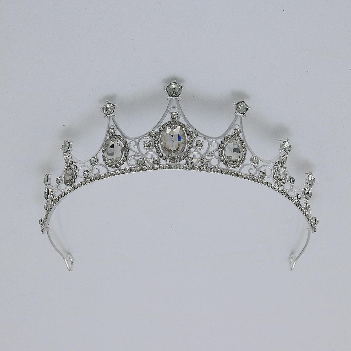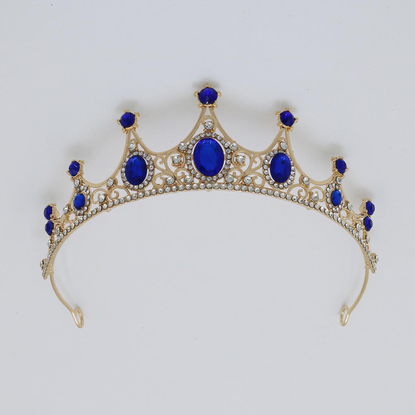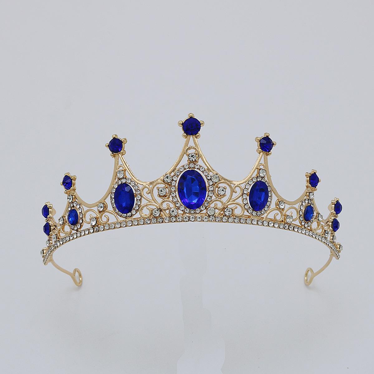 Accesorios para el cabello de novia, tocado para vestido de novia, aleación de diamantes de colores, luz de lujo, corona vintage sencilla con diamantes de imitación chapada, corona para cena