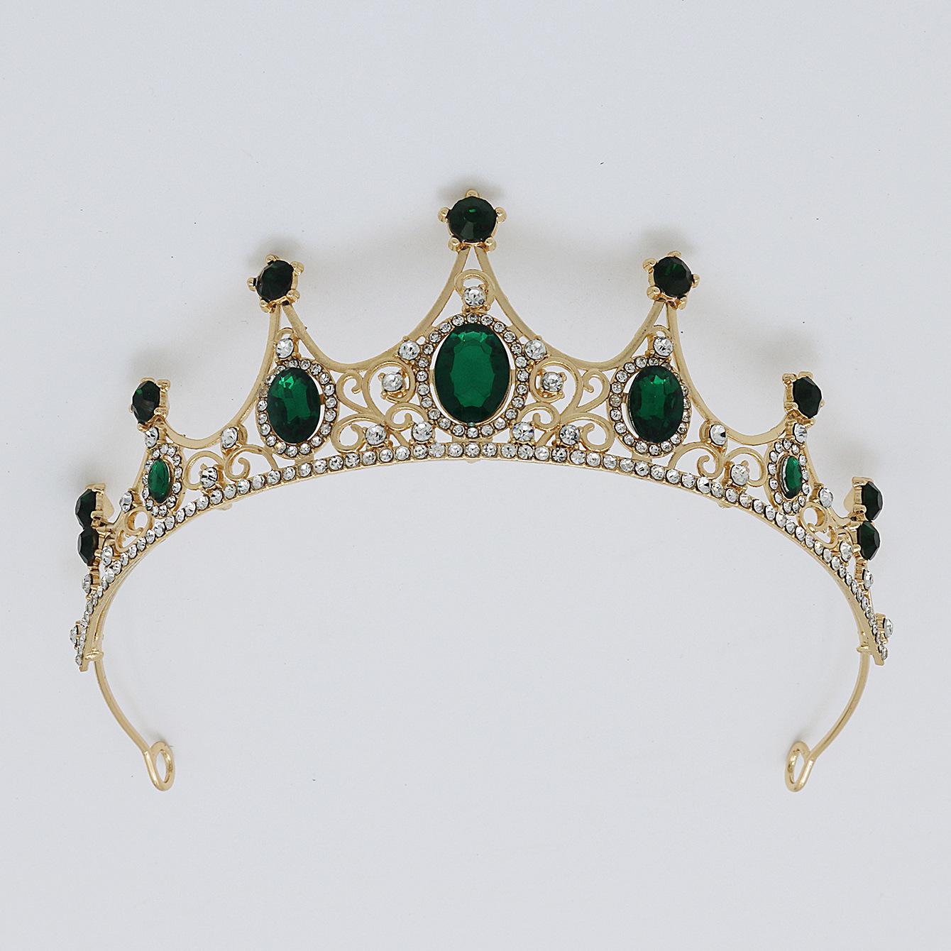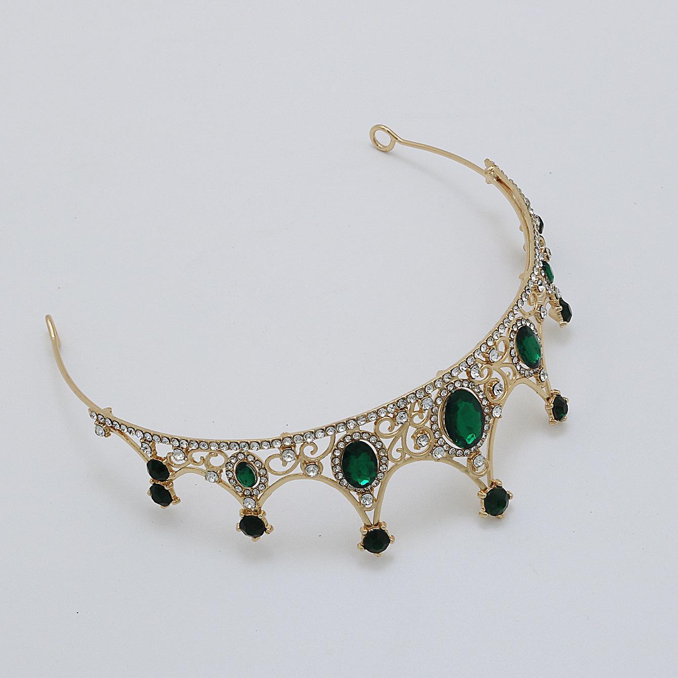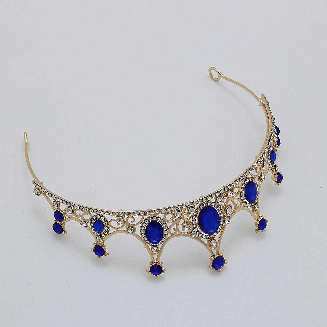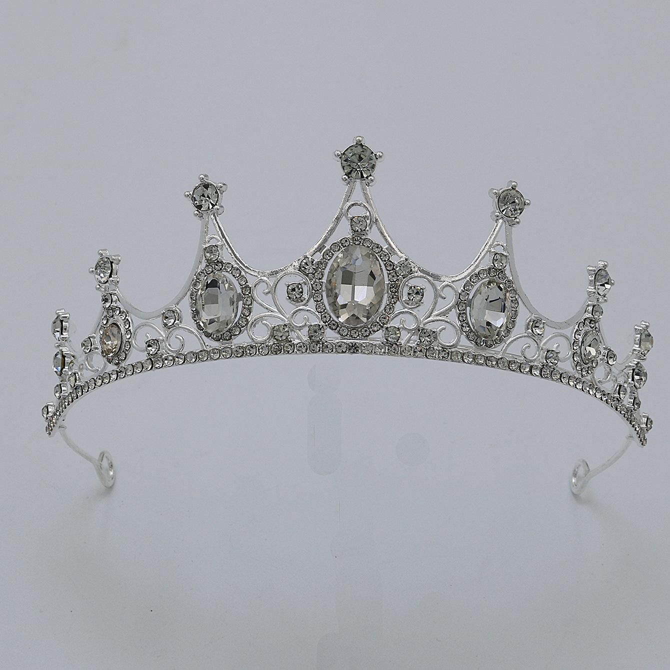 Accesorios para el cabello de novia, tocado para vestido de novia, aleación de diamantes de colores, luz de lujo, corona vintage sencilla con diamantes de imitación chapada, corona para cena