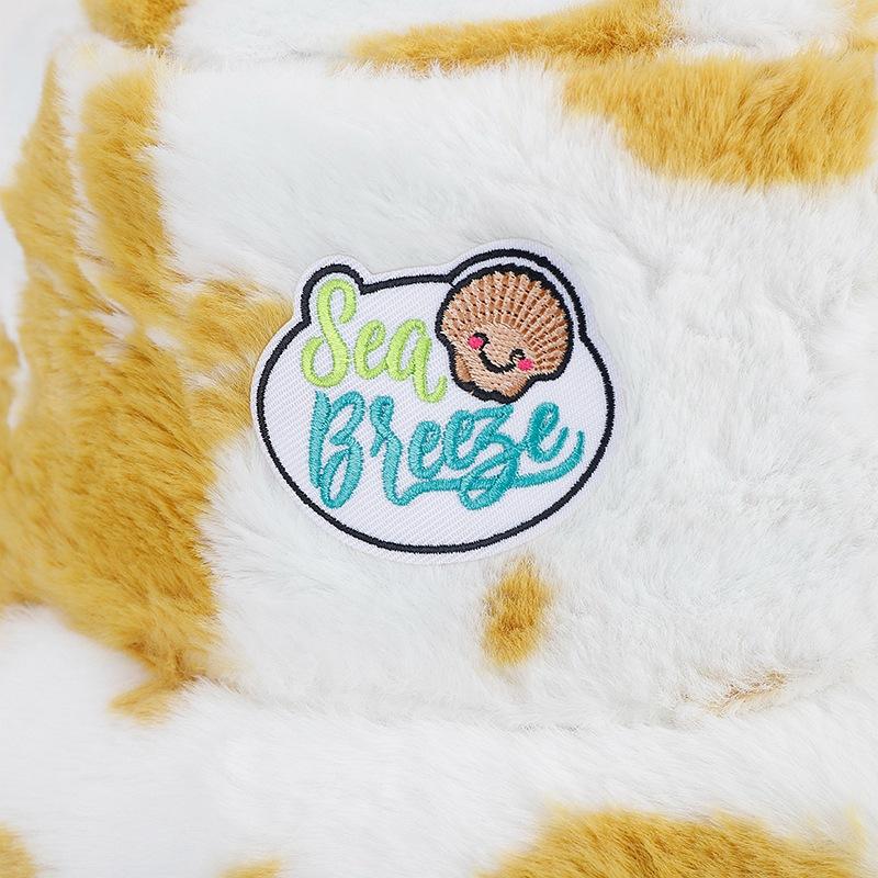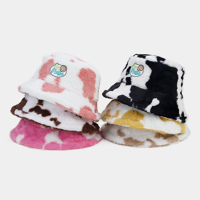Bonito sombrero de pescador Fresh Patch de estilo japonés, moderno gorro de felpa grueso y cálido para el sol, gorro de lavabo de moda de estilo universitario para mujer.