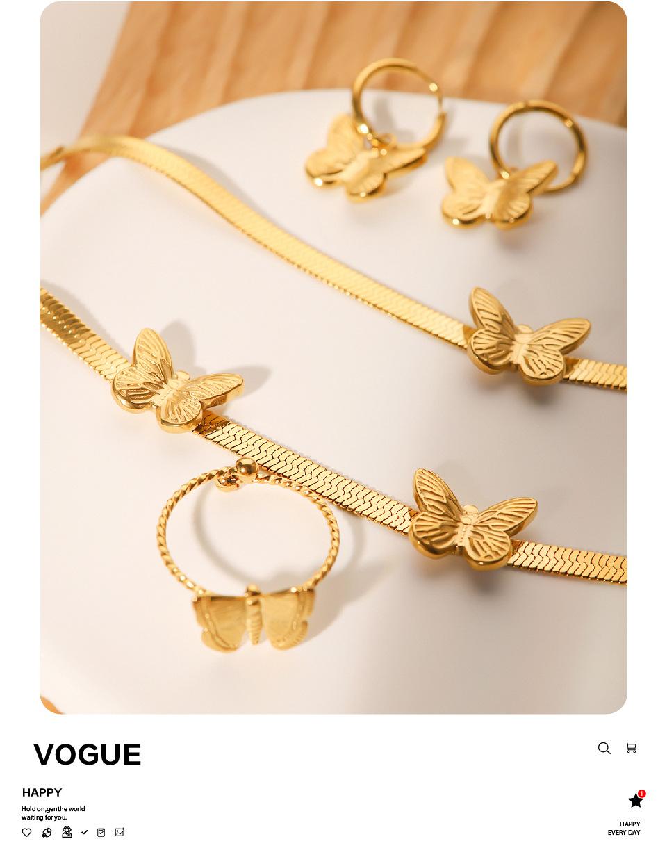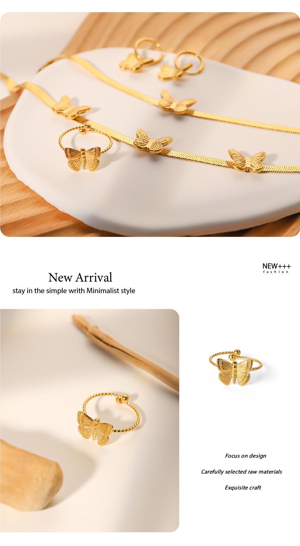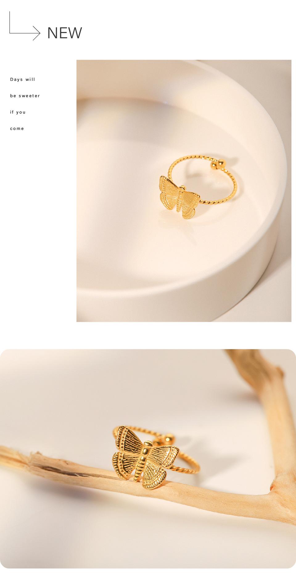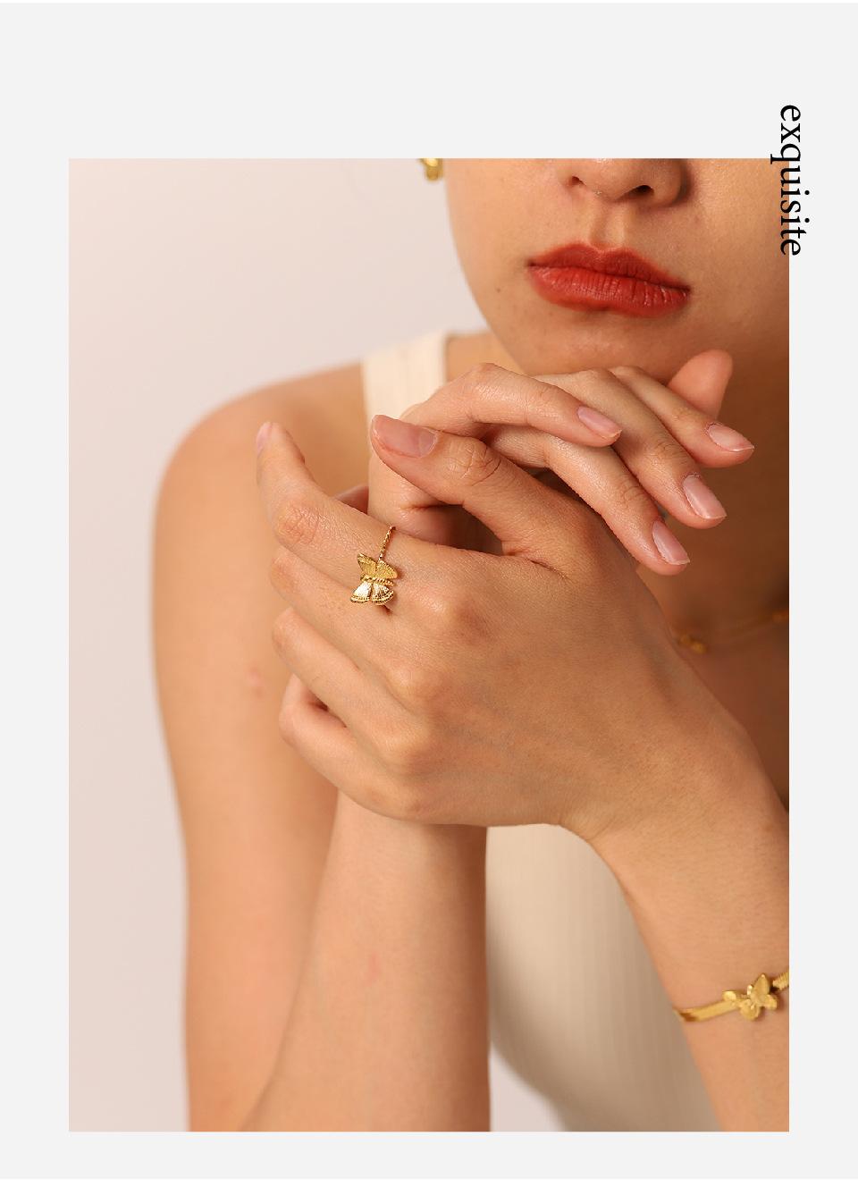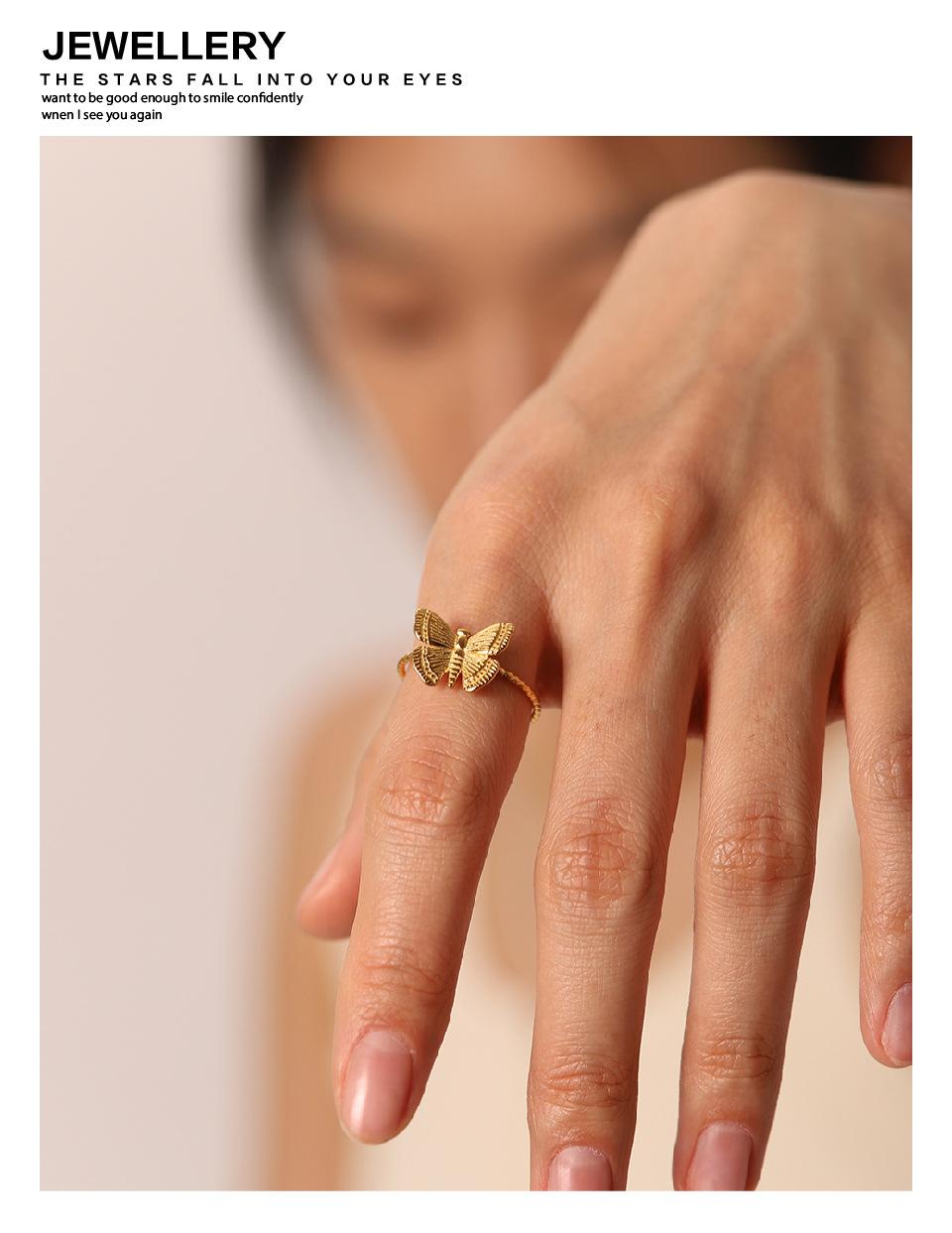 Anillo retro francés para mujer estilo frío sensación de alta gama abierto acero inoxidable mariposa no se desvanece nicho joyería de oro de 18k