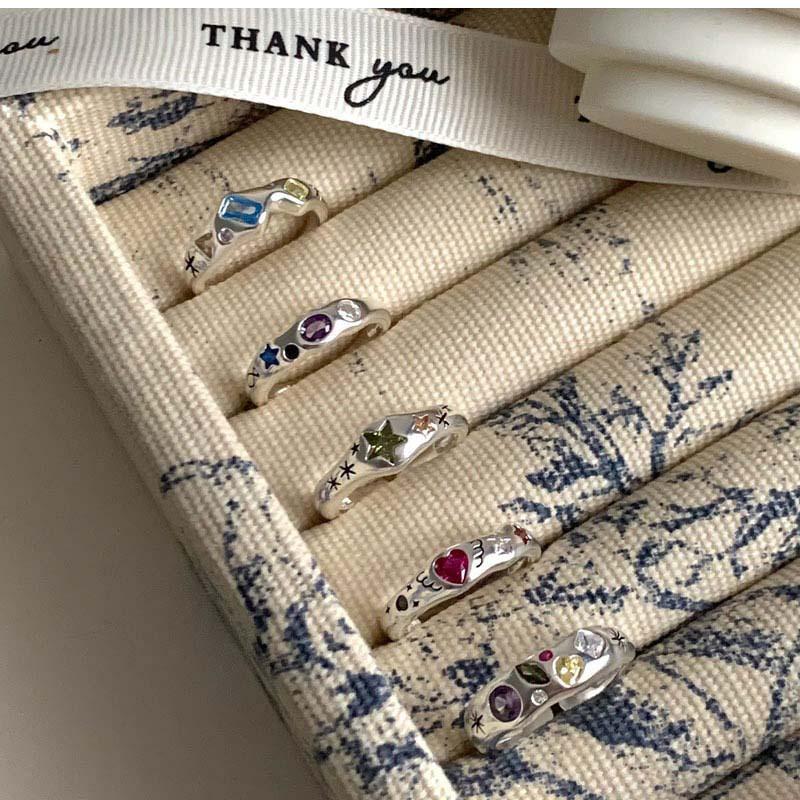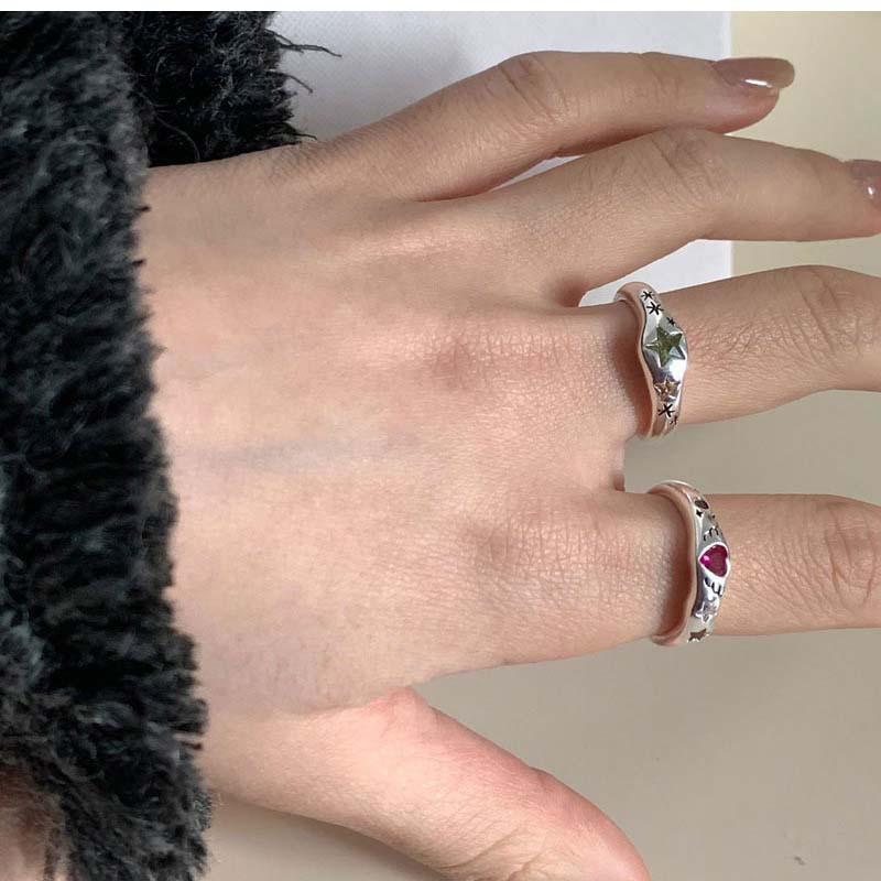 Anillo Vintage de Diseño Nicho con Zircón de Siete Colores para Mujer, Engaste a Mano 2YK, Dulce, Cool, Moda, Anillo Abierto Ajustable