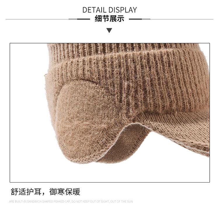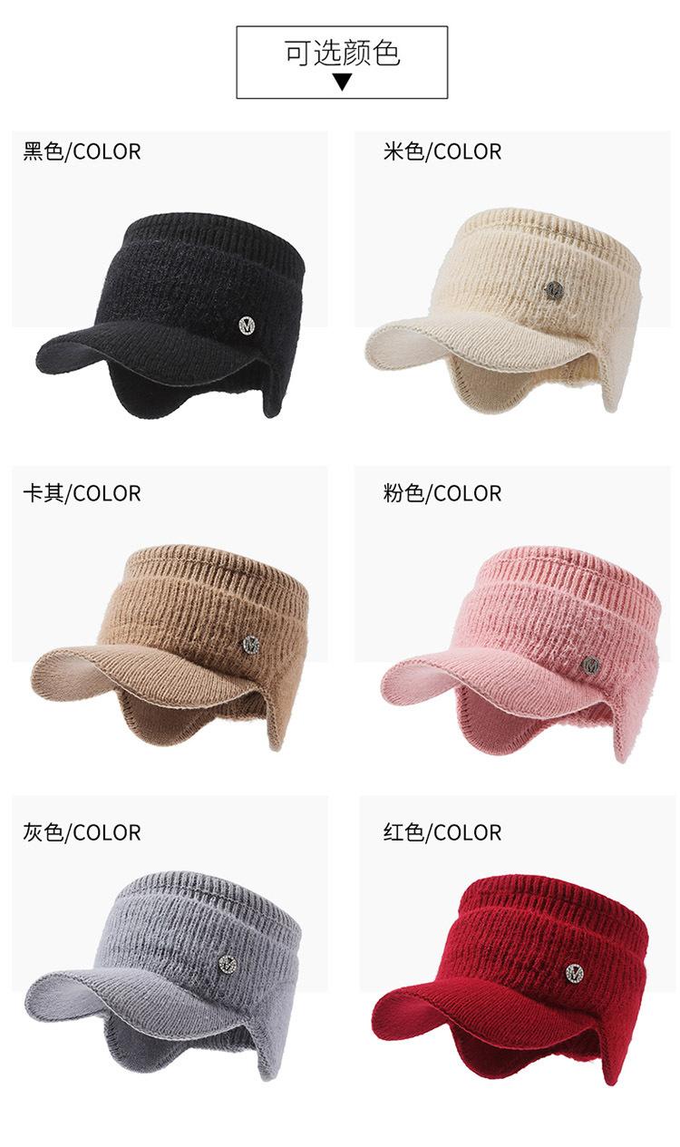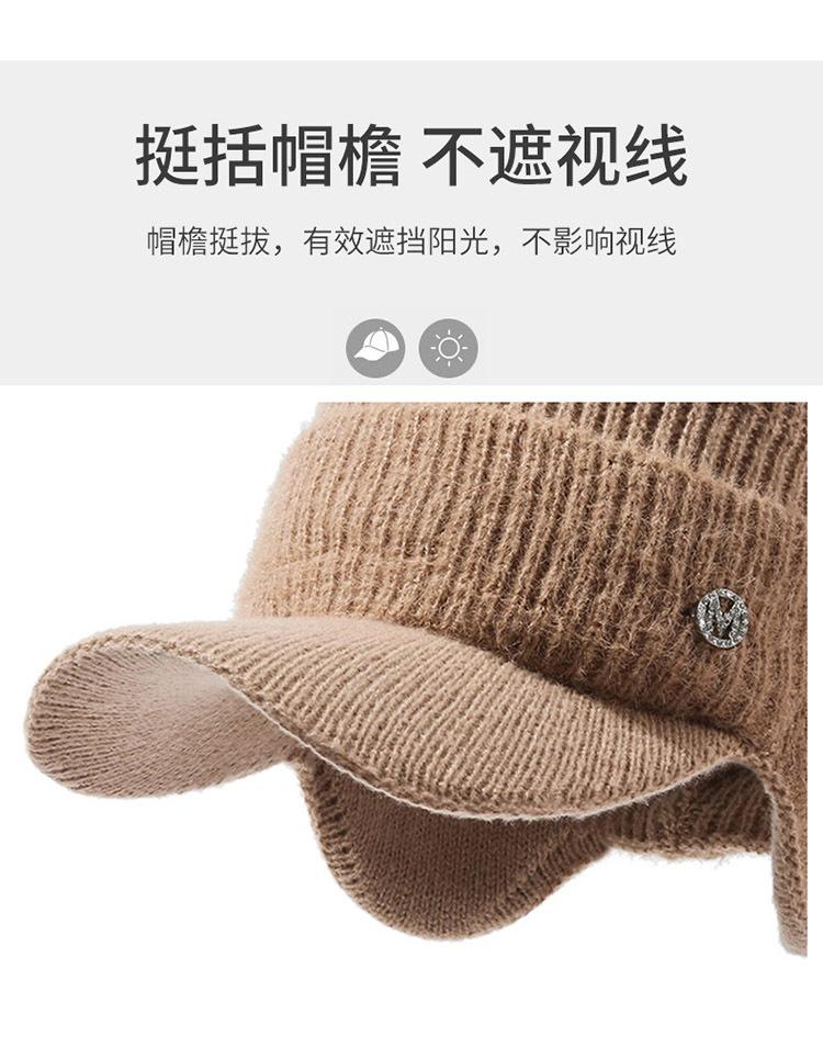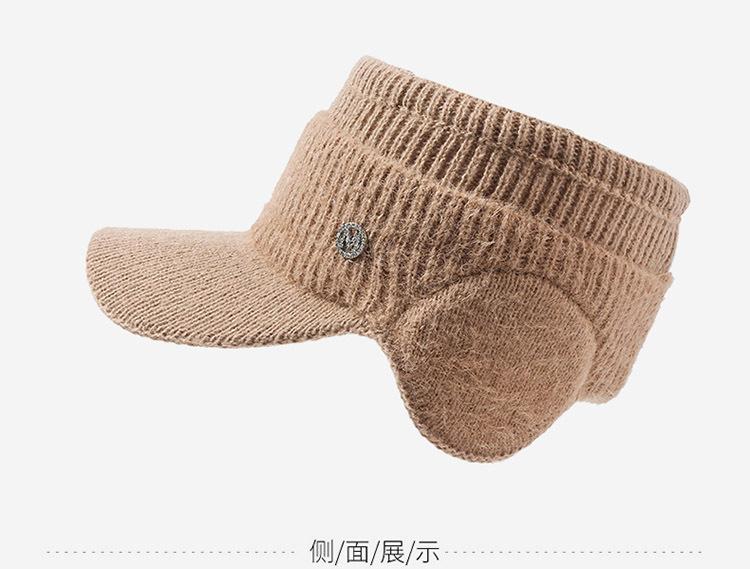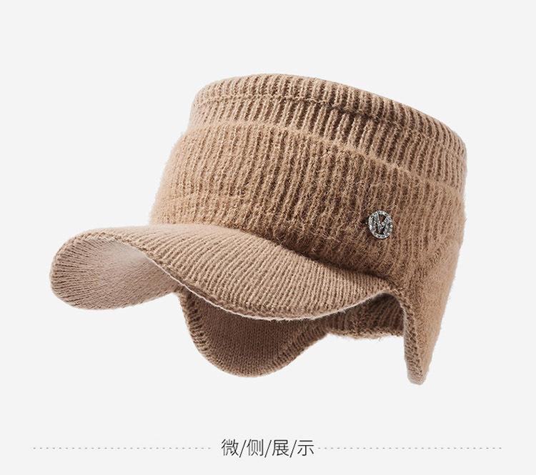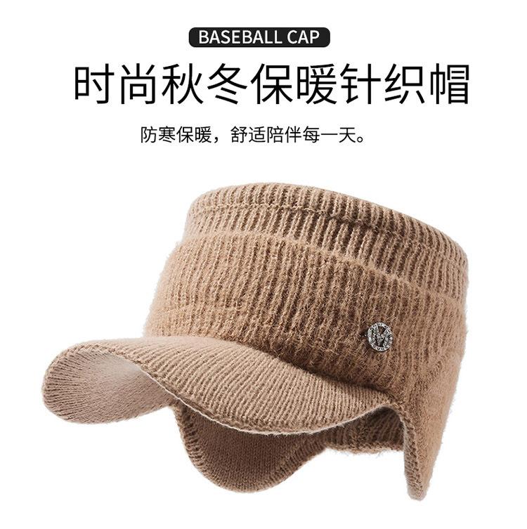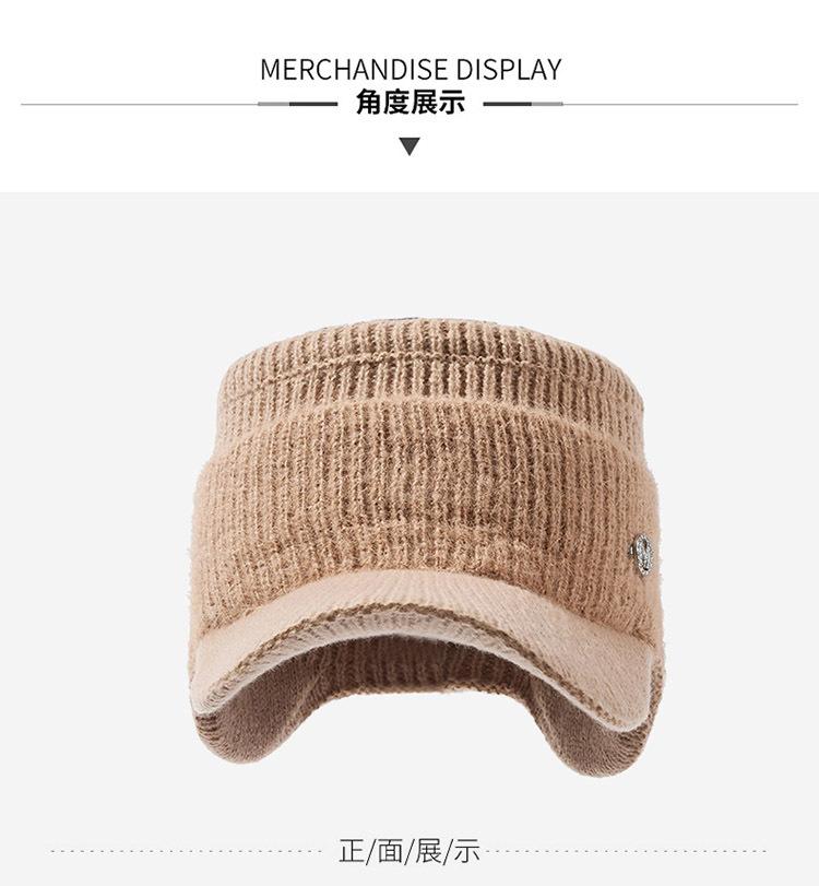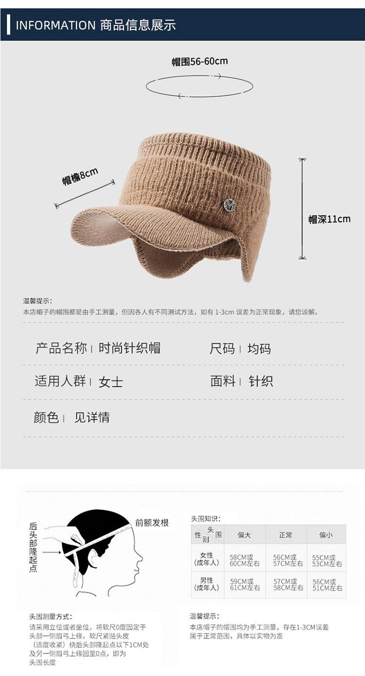 Gorro de mujer para otoño e invierno, con protección para las orejas, cálido, combinable, de lana de punto, resistente al frío, moderno, resistente al viento, para cabeza grande.