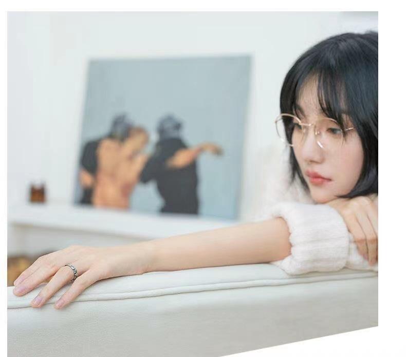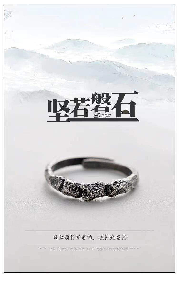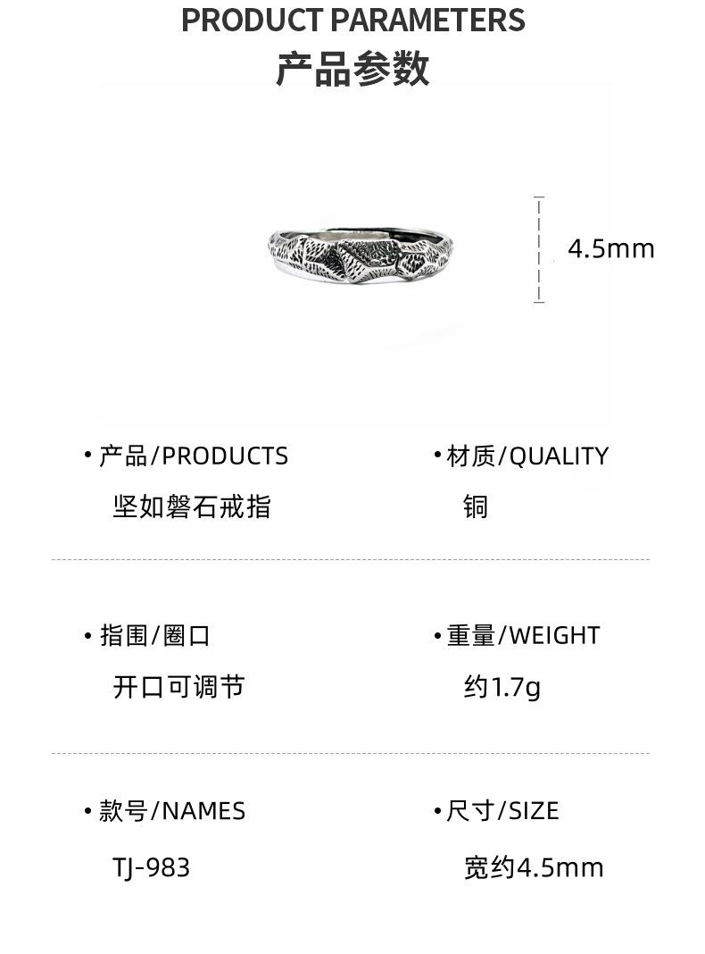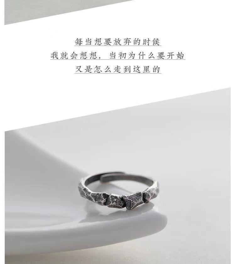 Anillo de pareja Qianye retro sólido como una roca, simple anillo de boca abierta para hombres y mujeres, amor a larga distancia, regalo conmemorativo del Día de San Valentín