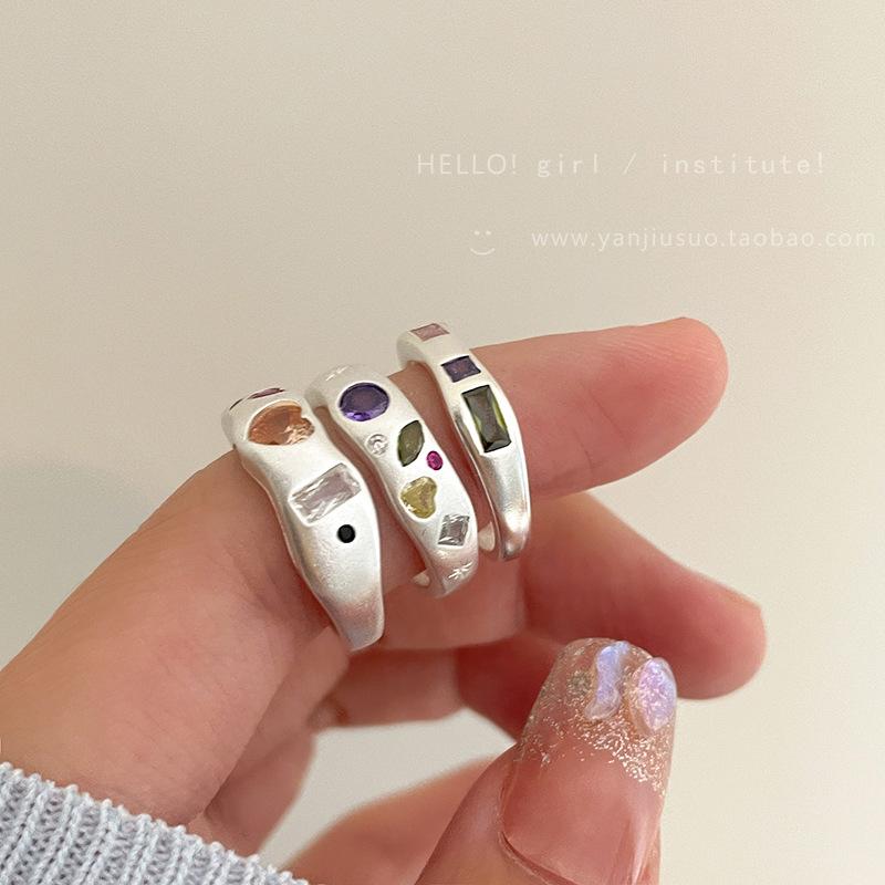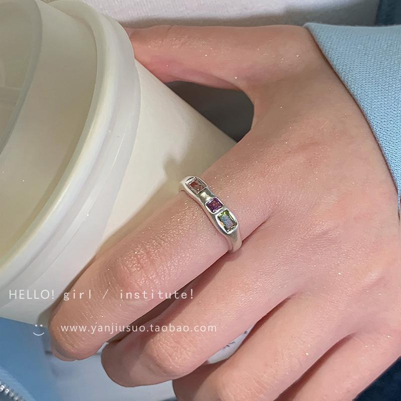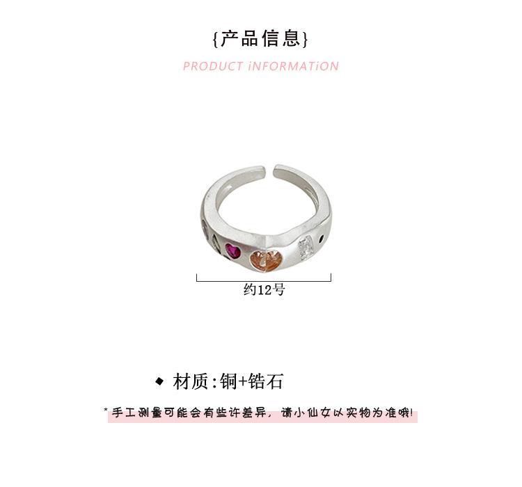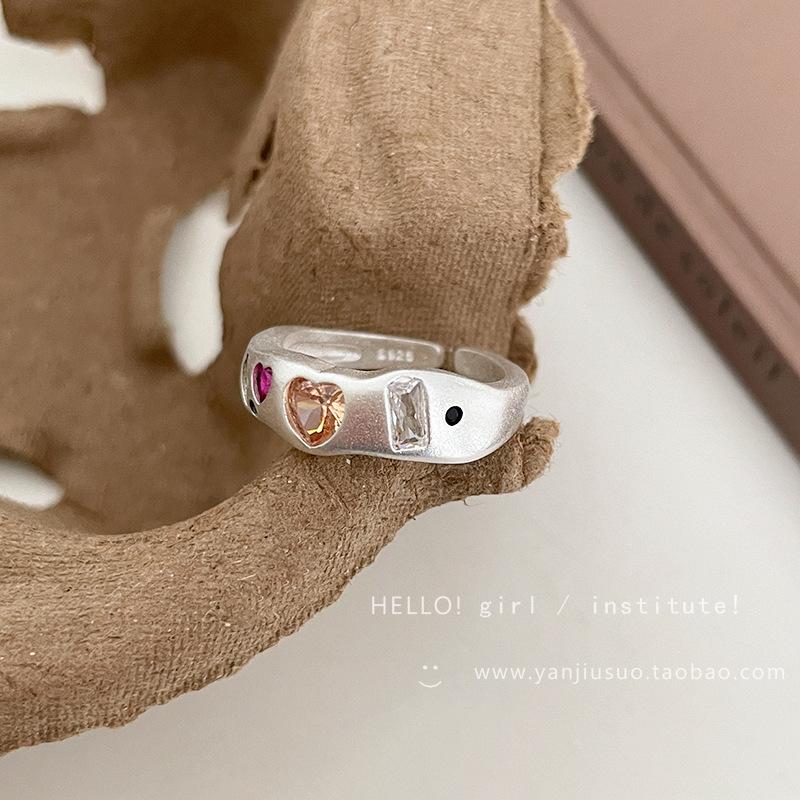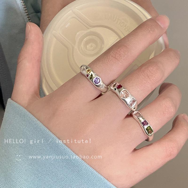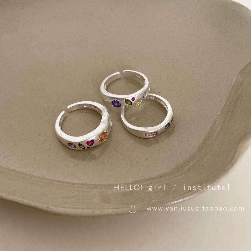Anillo de circonitas de color Love para mujer, de moda, distintivo, colorido, plata S925, anillo abierto apilado, anillo de dedo estilo hip-hop, marea