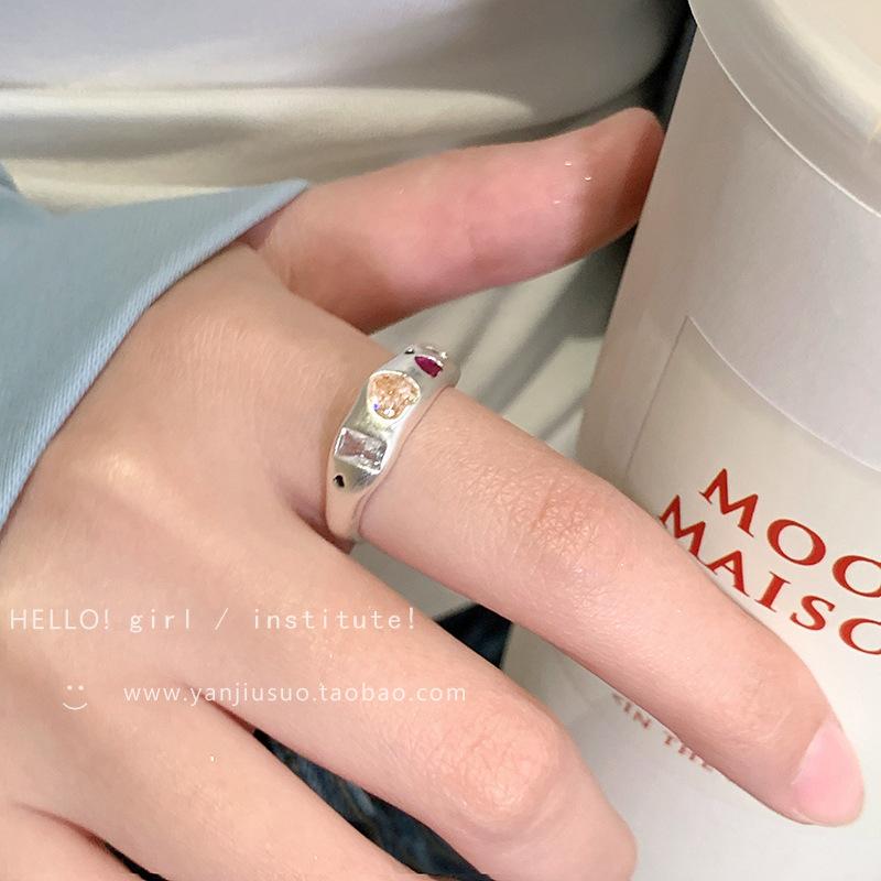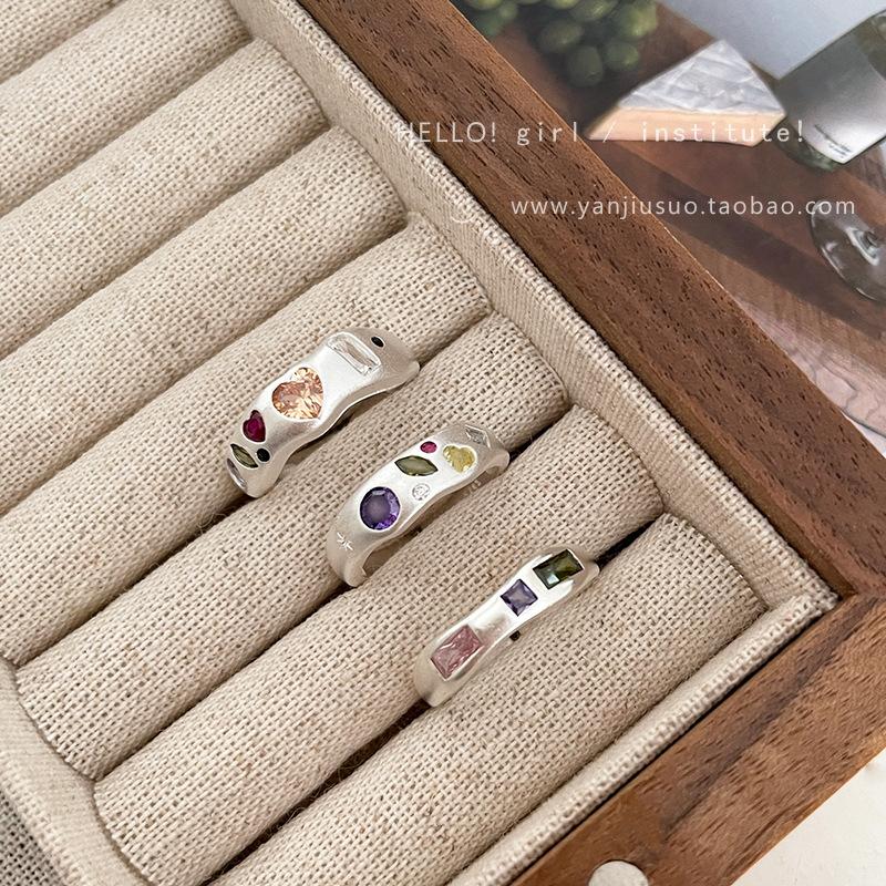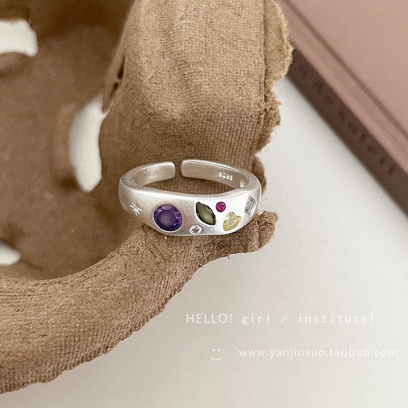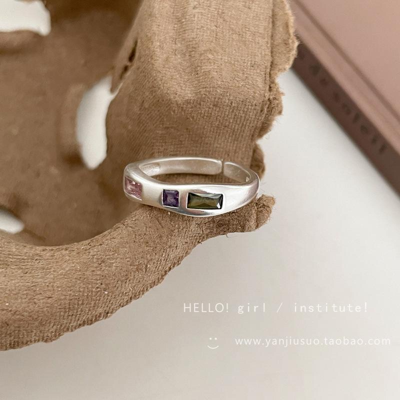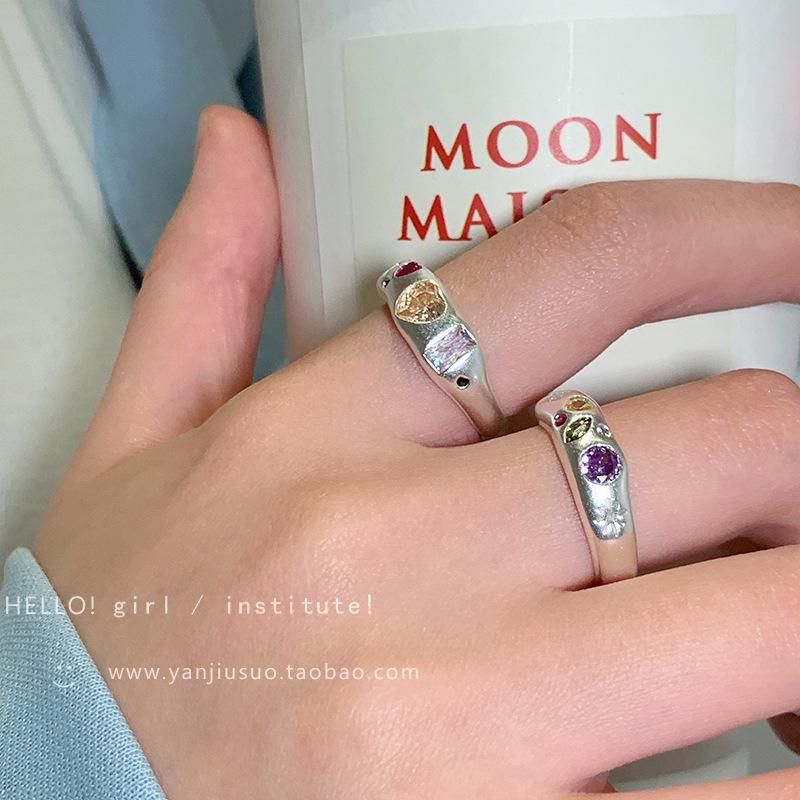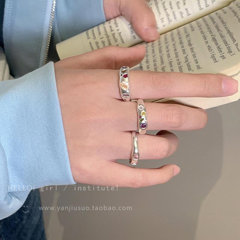 Anillo de circonitas de color Love para mujer, de moda, distintivo, colorido, plata S925, anillo abierto apilado, anillo de dedo estilo hip-hop, marea