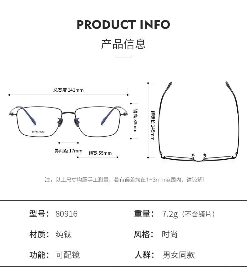 Nuevas gafas de negocios de moda cuadradas de cara grande 80916 con montura de titanio puro que cambian de color y antiluz azul para mujer
