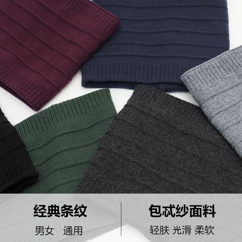 Bufanda de lana cálida con forro polar para hombre y mujer, conjunto de cuello a rayas de color liso, bufanda de punto gruesa, nueva para invierno