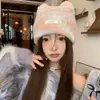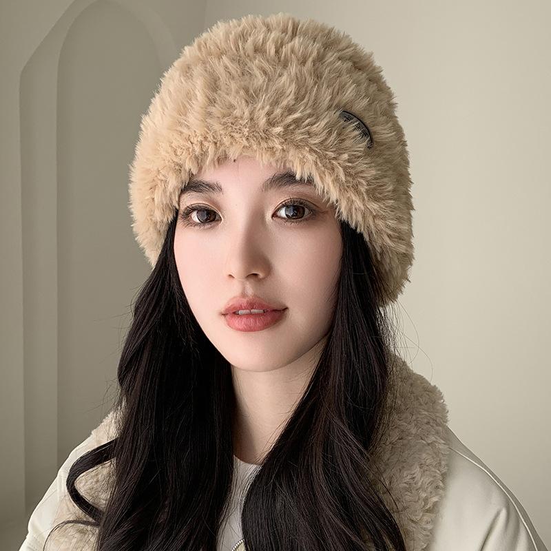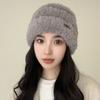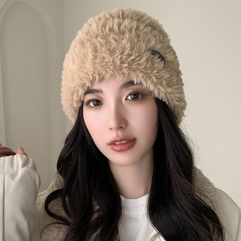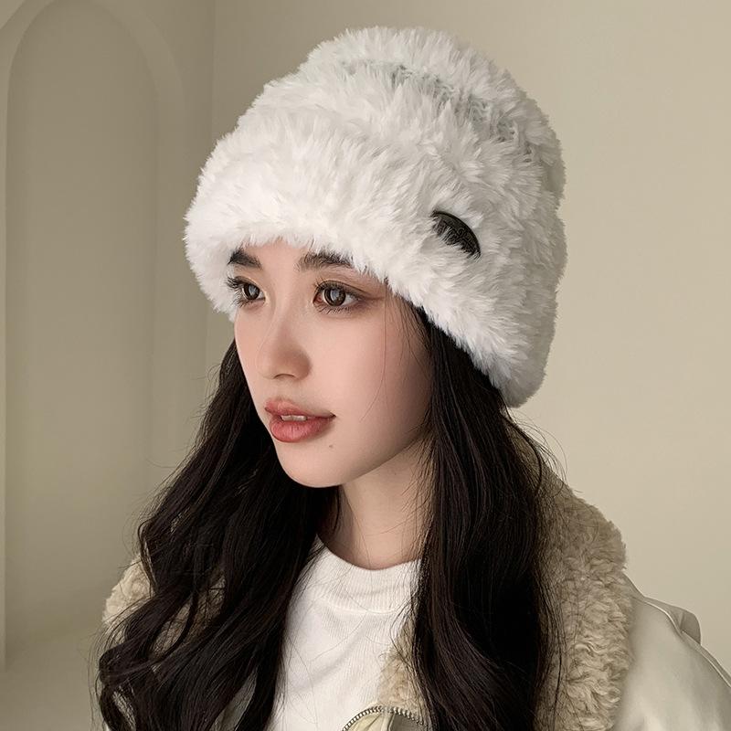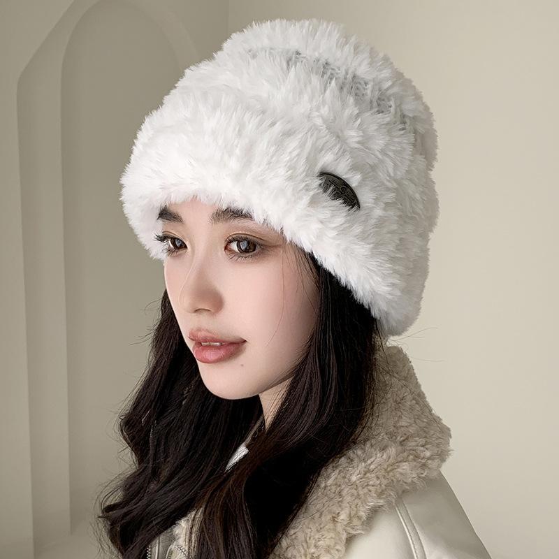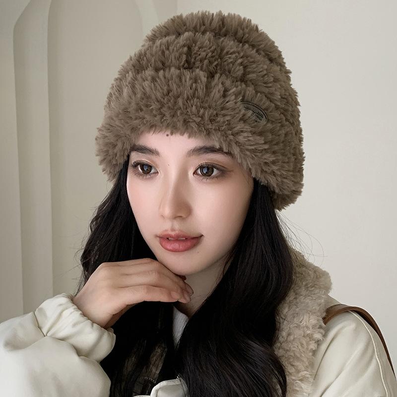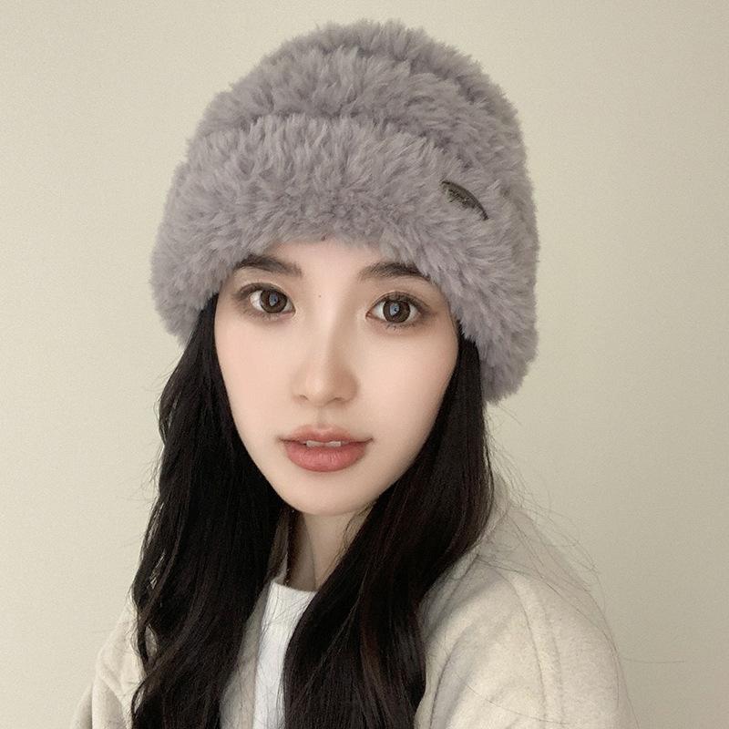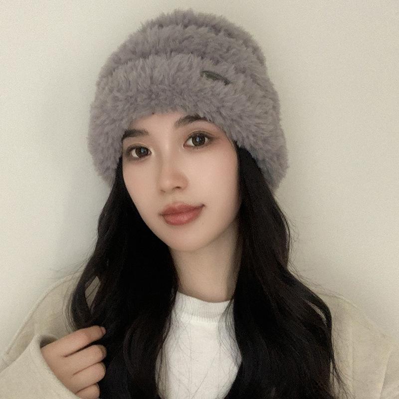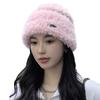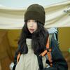 Gorro de lana de punto con punta cerrada pequeña y aspecto facial con protección para las orejas, cálido y de felpa para otoño e invierno para mujer