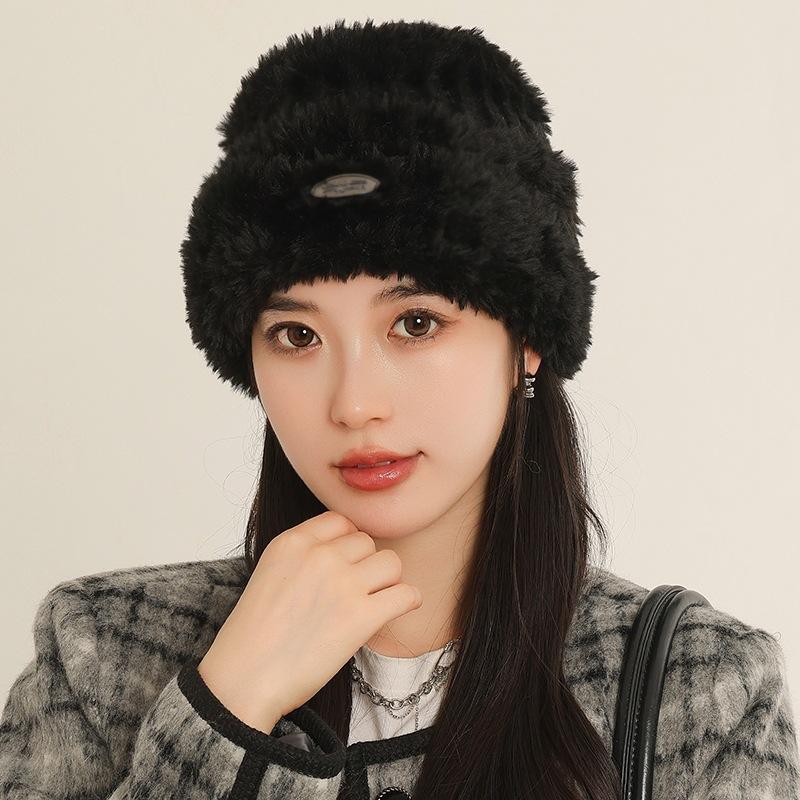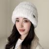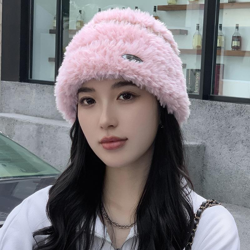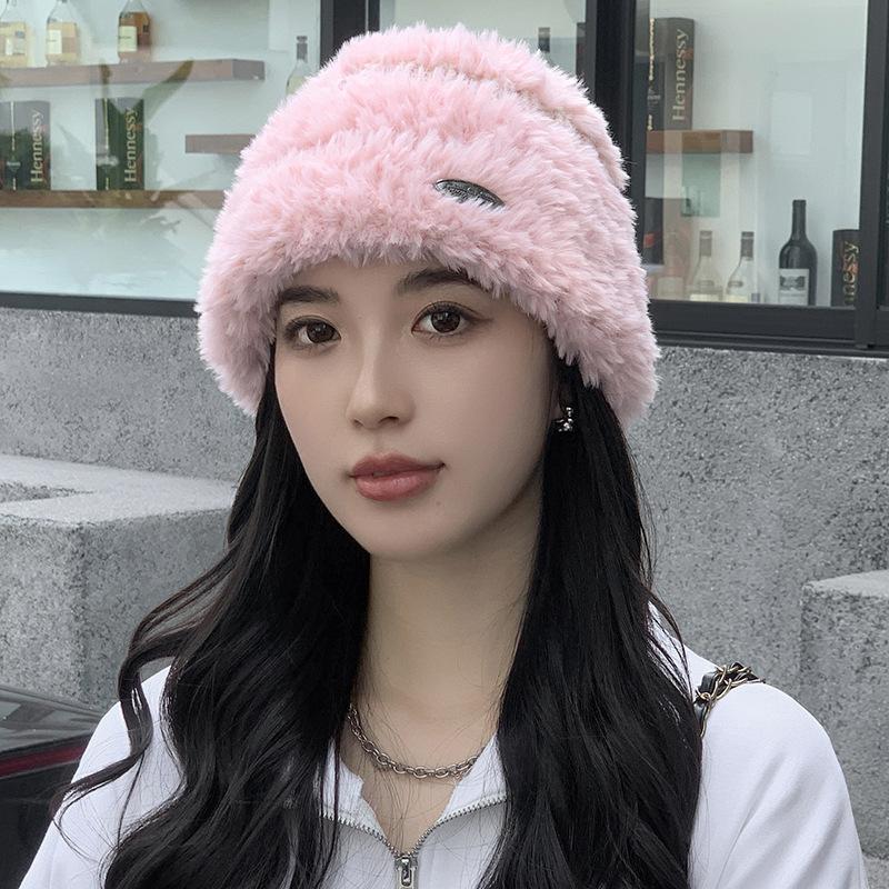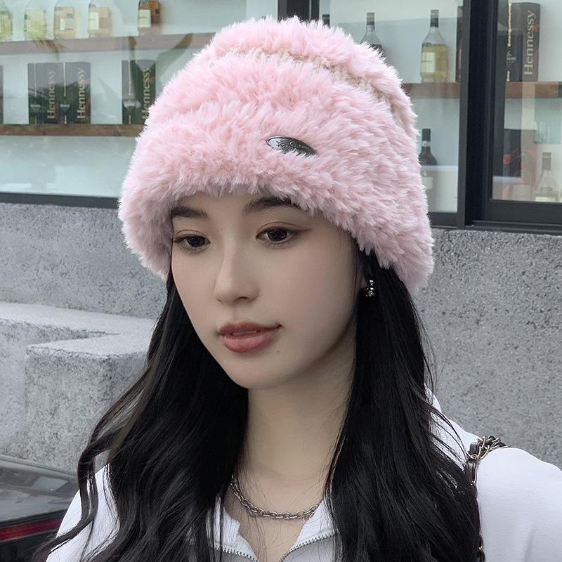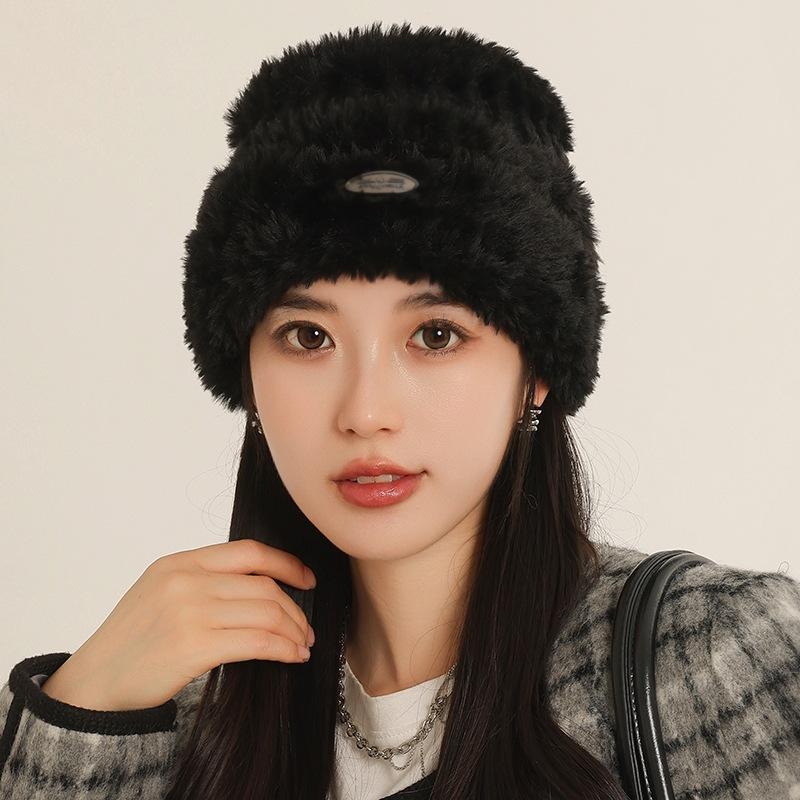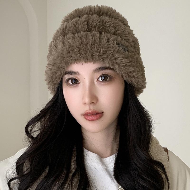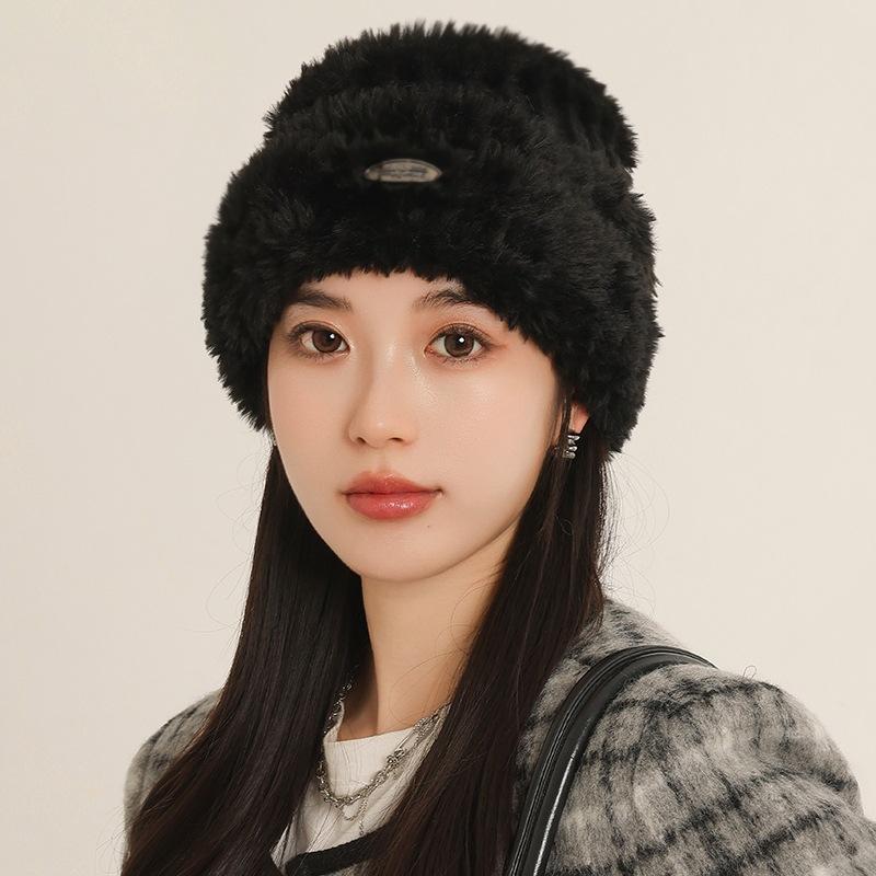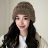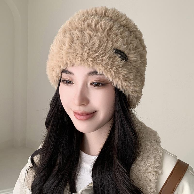 Gorro de lana de punto con punta cerrada pequeña y aspecto facial con protección para las orejas, cálido y de felpa para otoño e invierno para mujer