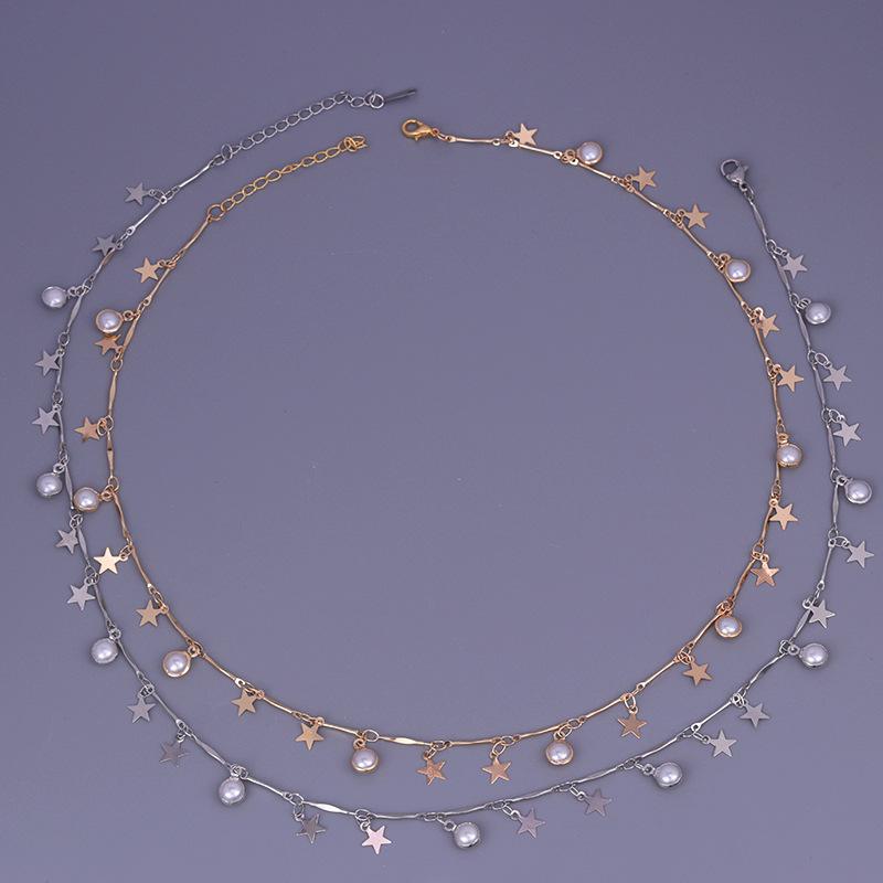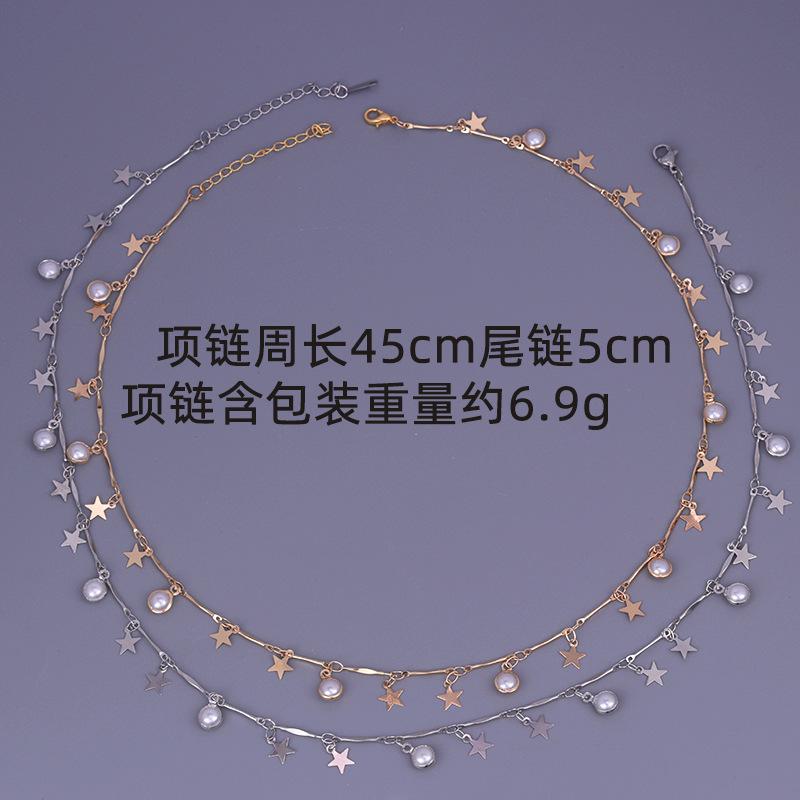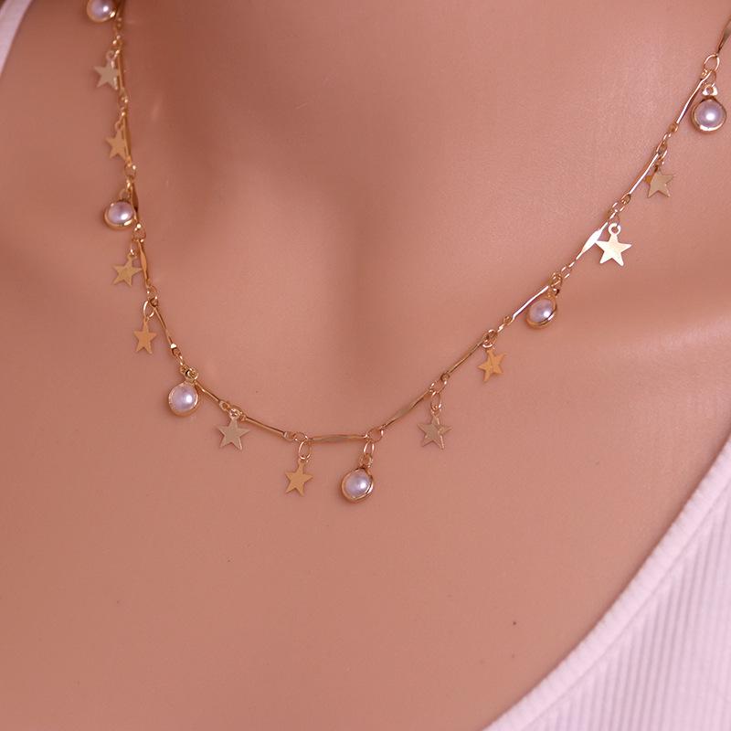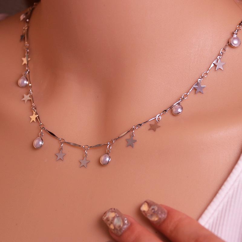 Colgante de estrella con perla y espejo de plata y oro pequeño estilo europeo y americano, collar de lujo ligero y distintivo de alta calidad, joyería para mujer