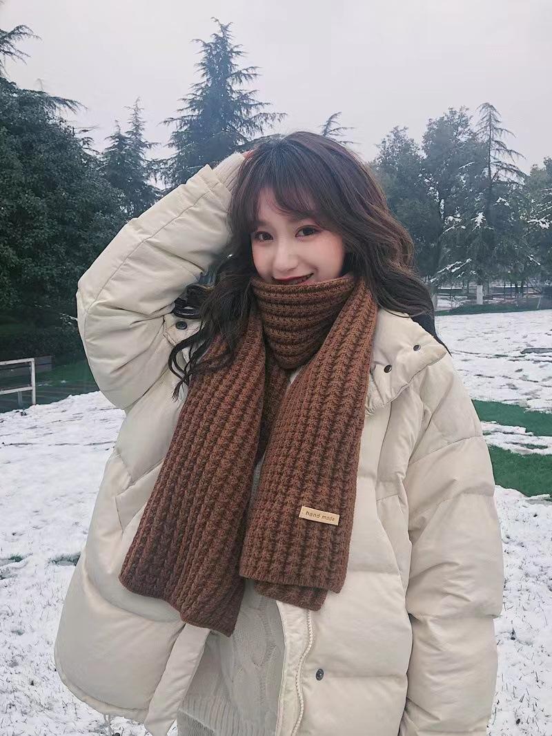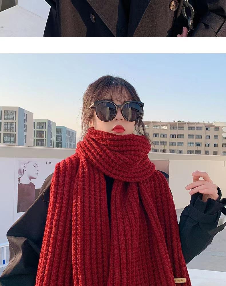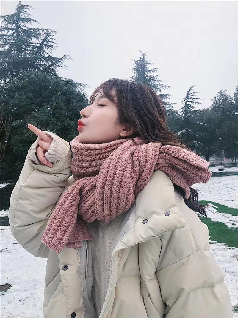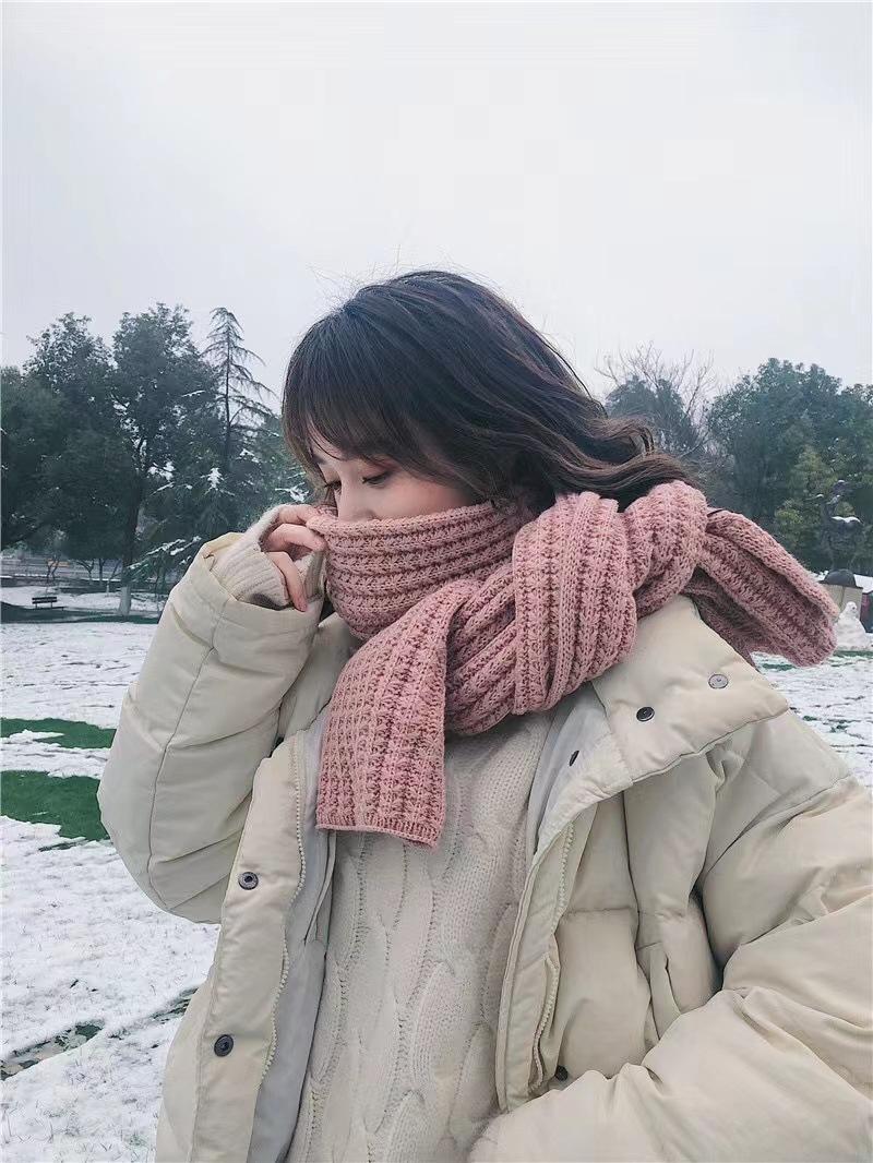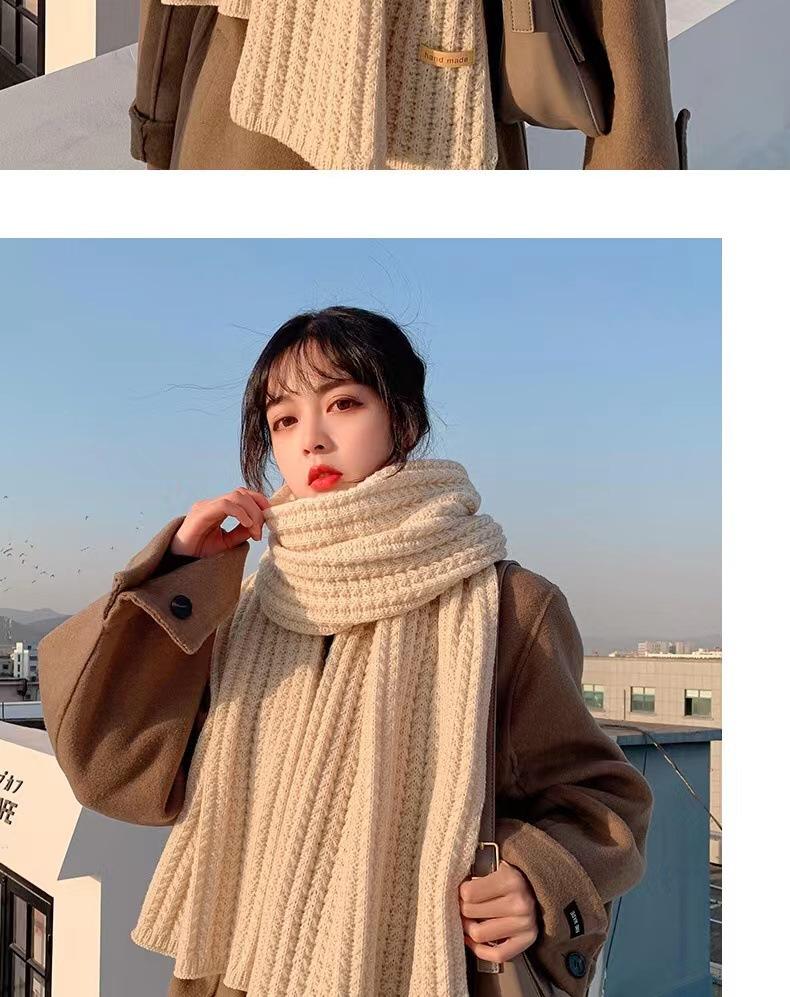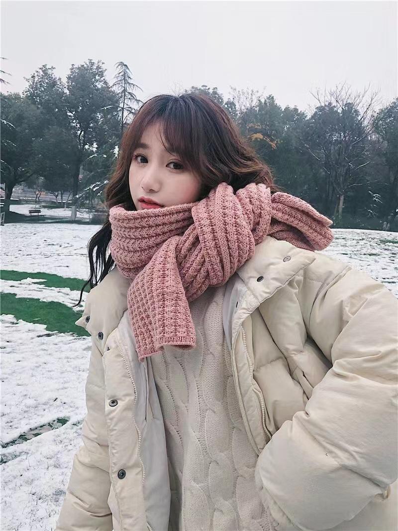 Bufanda de mujer otoño e invierno estilo coreano color sólido tejido de lana cálida estudiante linda pareja en línea celebridad bufanda hombres versátil