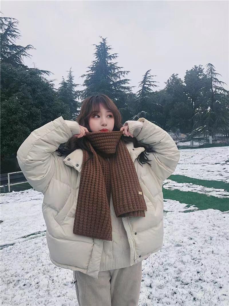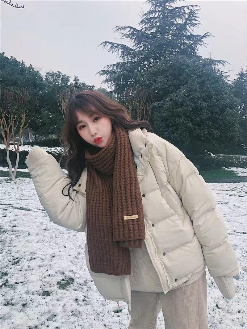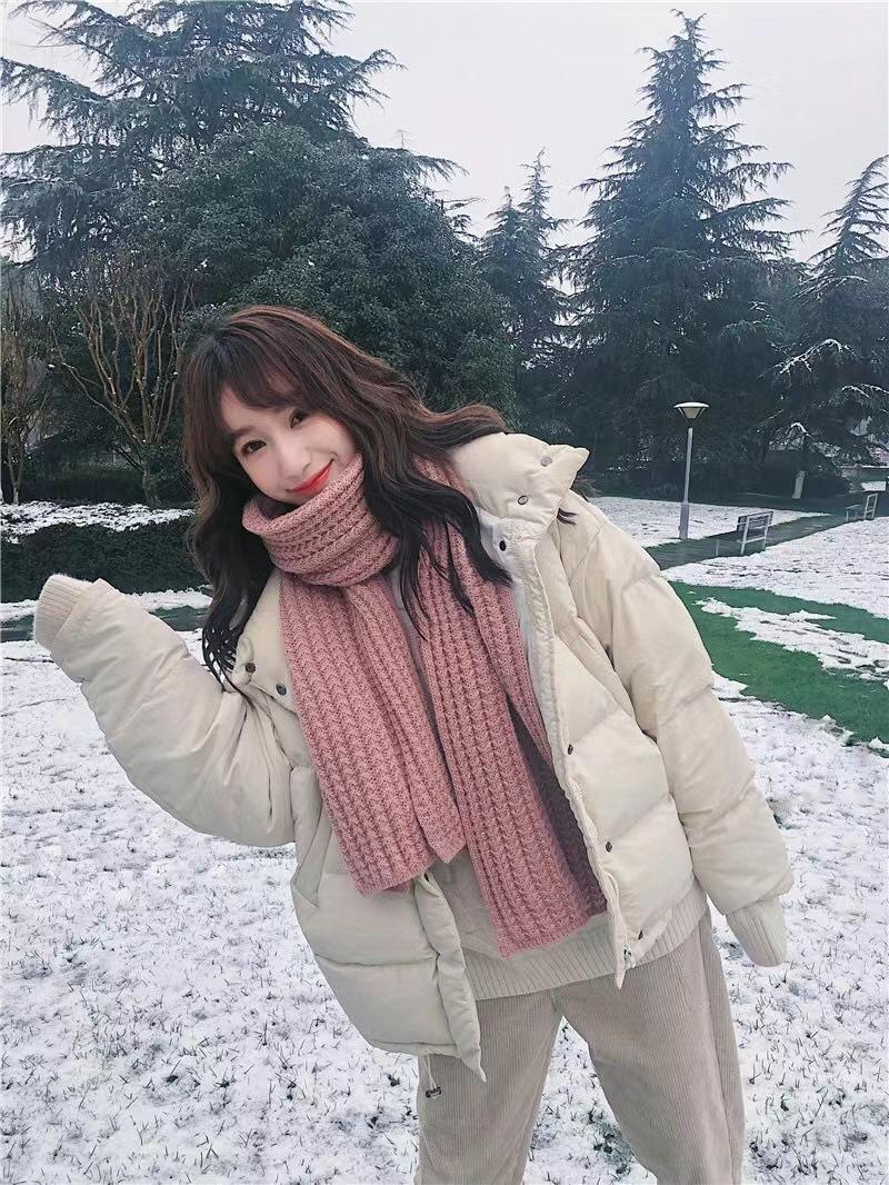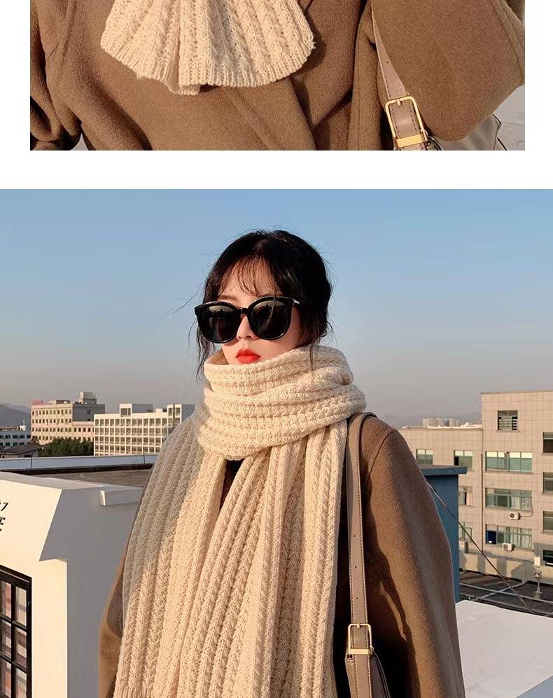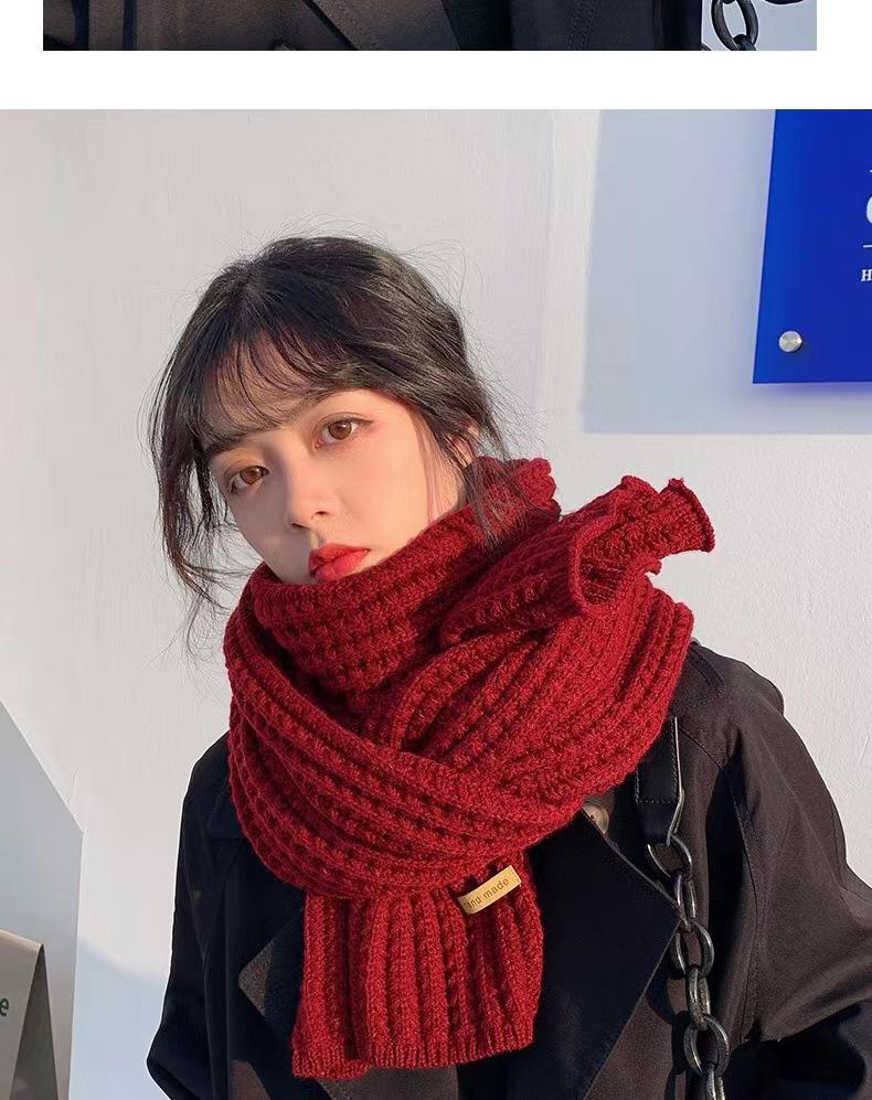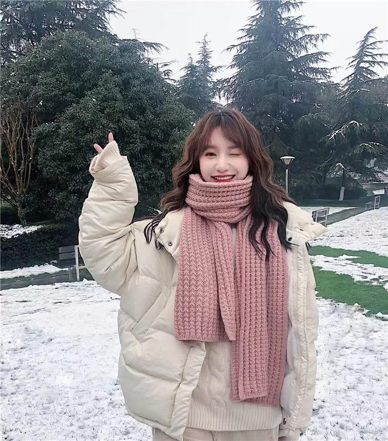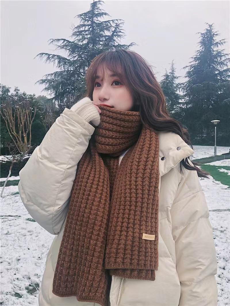 Bufanda de mujer otoño e invierno estilo coreano color sólido tejido de lana cálida estudiante linda pareja en línea celebridad bufanda hombres versátil