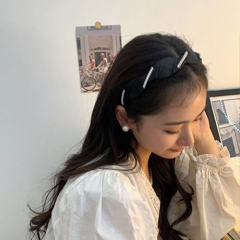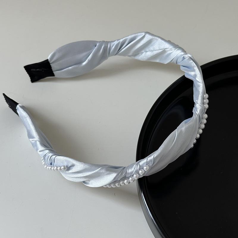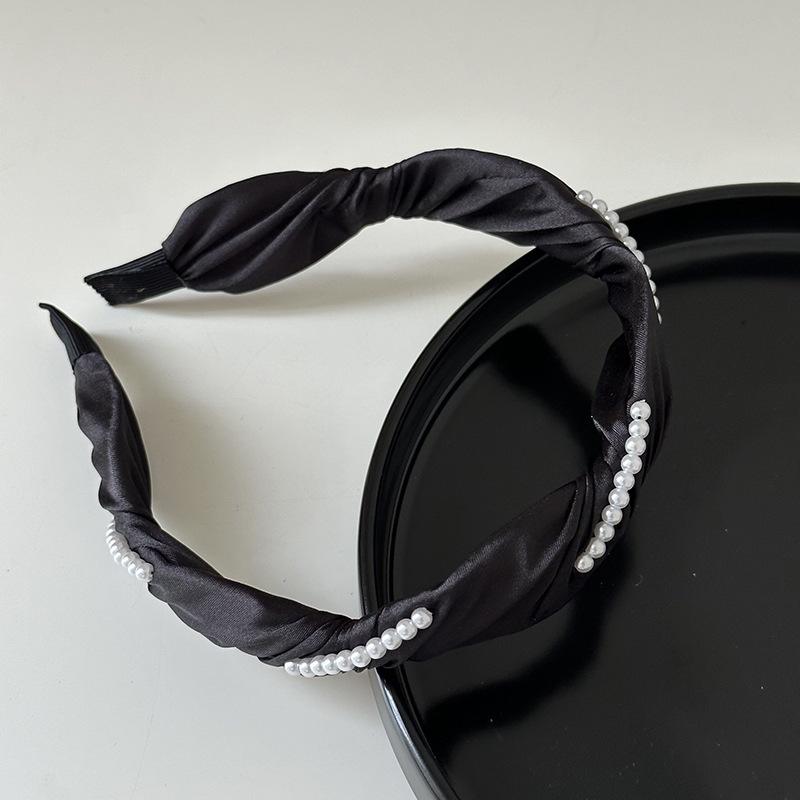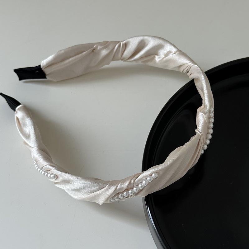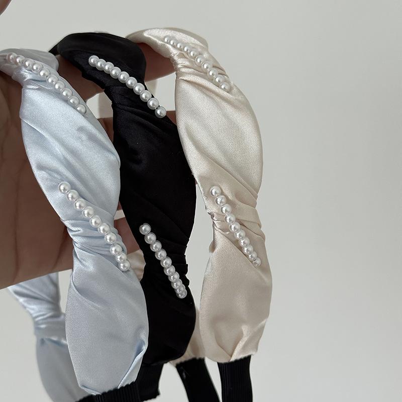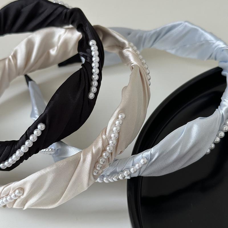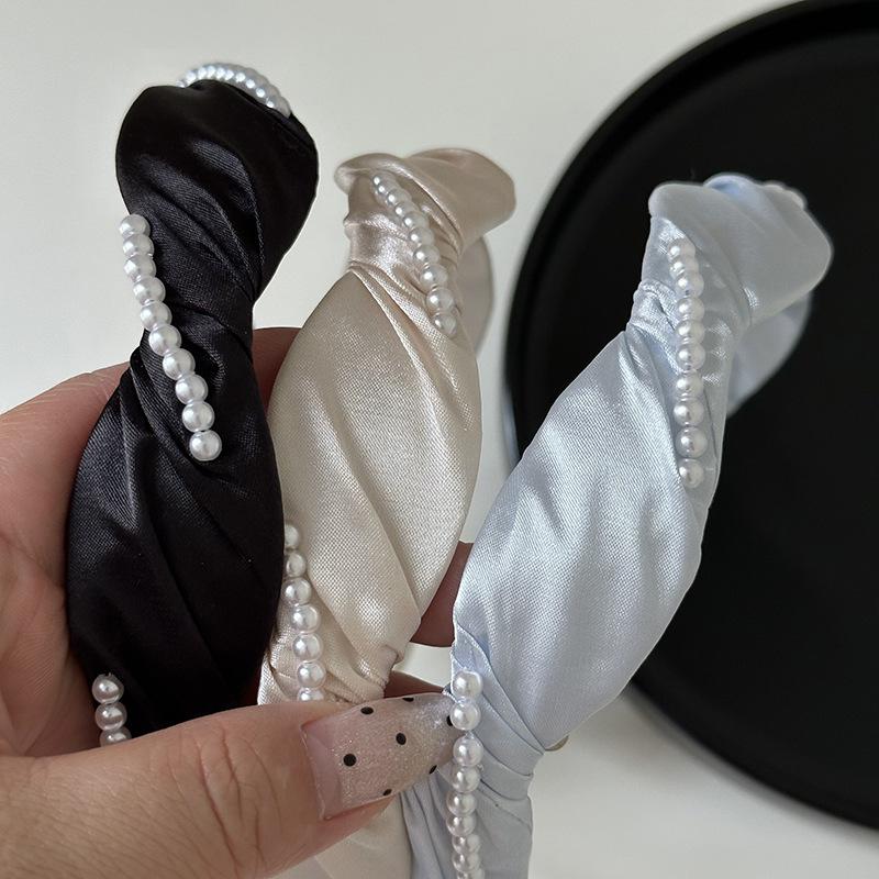 Diadema francesa elegante con ondas de perlas, elegante diadema de satén, horquilla para presionar el cabello, accesorios para el cabello de celebridades de Internet, todo a juego, nuevo