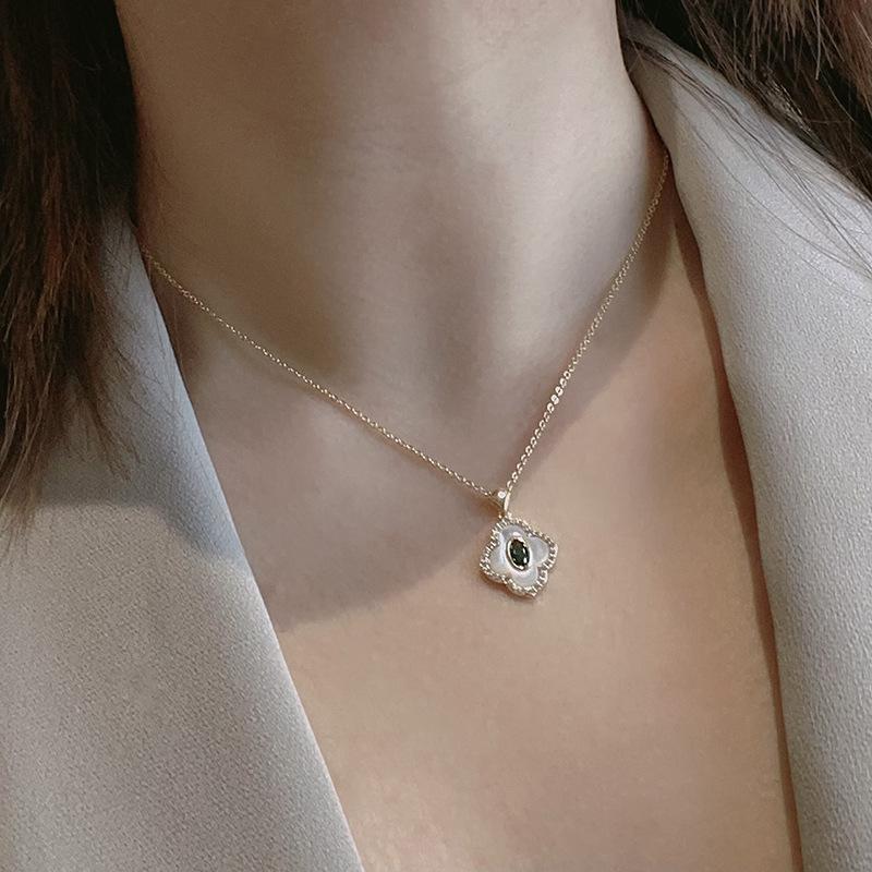 Collar de trébol de cuatro hojas con concha para mujer, elegante, ligero, de lujo, de alta gama, con cadena de diseño de nicho, cadena de clavícula de moda, combina con todo.