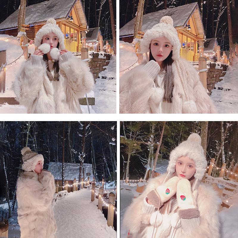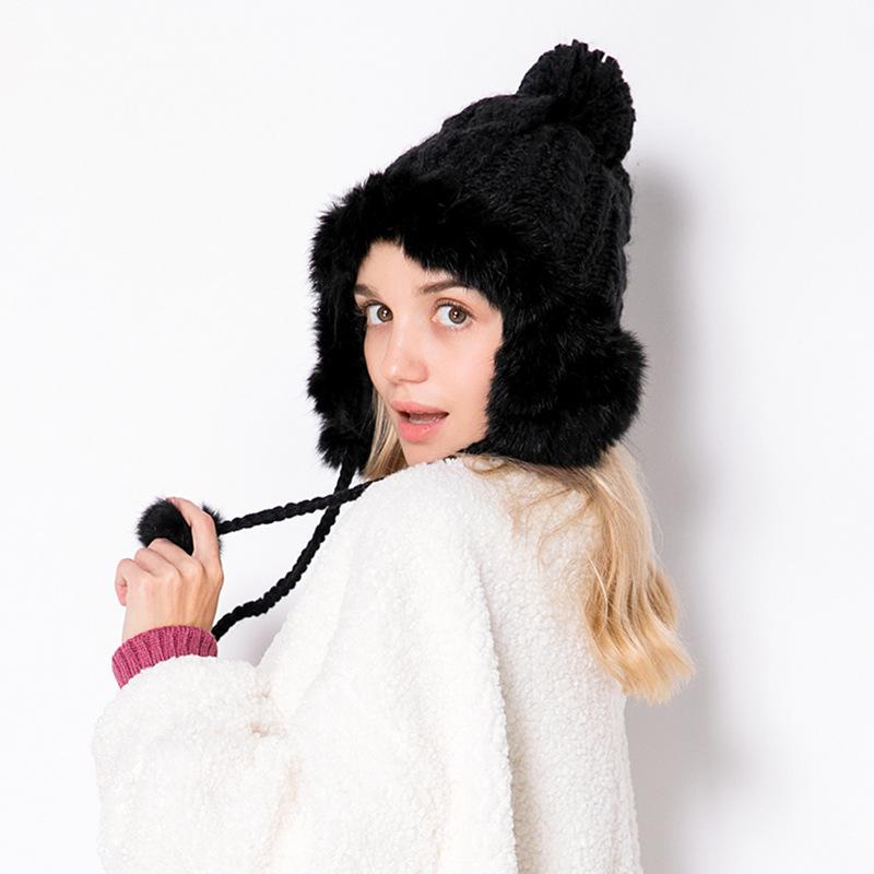Gorro femenino de otoño e invierno, estilo coreano, grueso gorro de lana con forro polar, gorro frío, gorro Lei Feng, gorro de punto, gorro cálido de invierno para estudiantes, ciclismo.