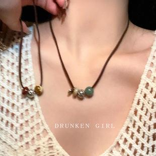 Nuevo collar de cuentas de cuerda trenzada china para mujer 2024, nuevo estilo étnico, accesorios de estilo nacional, diseño de nicho, cadena de clavícula