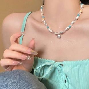 Collar de clavícula con cuentas de concha de dopamina de verano para mujer, diseño de nicho de lujo ligero, accesorios de alta gama, collar dulce y fresco y versátil.