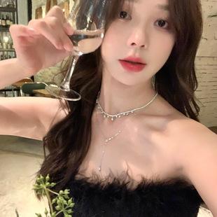 Collar de circonita brillante para mujer, nuevo estilo 2024, collar con borlas, gargantilla ligera de lujo, accesorios de cadena de clavícula de alta gama