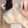 Aretes Elegantes de Borla y Perla de Hada Estilo Francés para Mujer, Aretes de Lujo Ligero y Alta Gama, Aretes Largos Barrocos de Luna con Pin de Plata