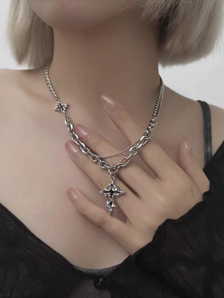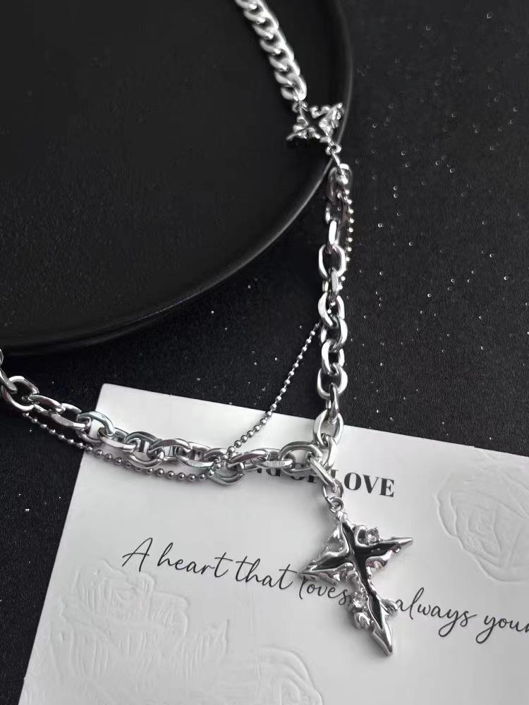 Collar con colgante de cruz de acero de titanio fundido para hombre, marca de moda que combina con todo, estilo hip hop, de alta calidad, con accesorios de cadena.