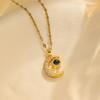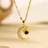 Temperamento Celebridad de Internet Trendy Cadena Clavícula Colgante Proyección Luna Creativo Collar Acero Titanio Simple Diamante Collar Corto para Mujer
