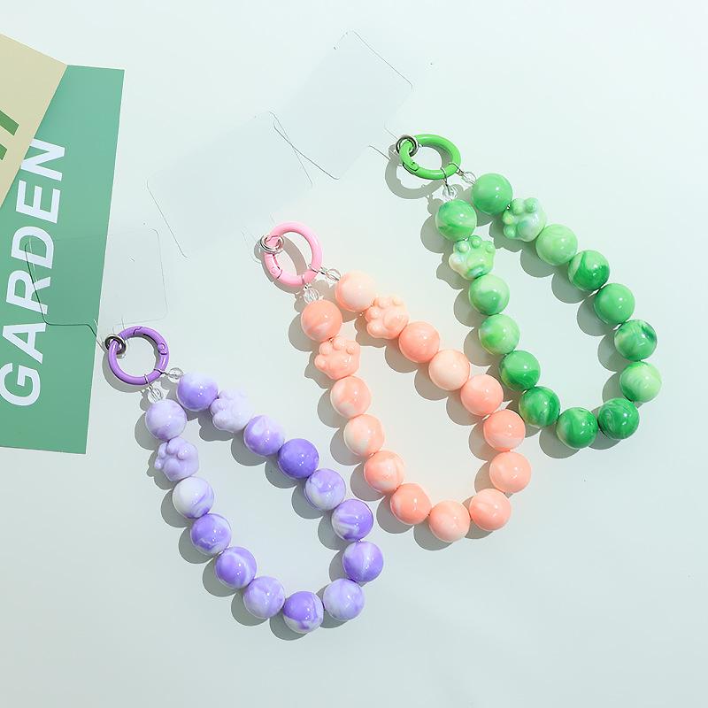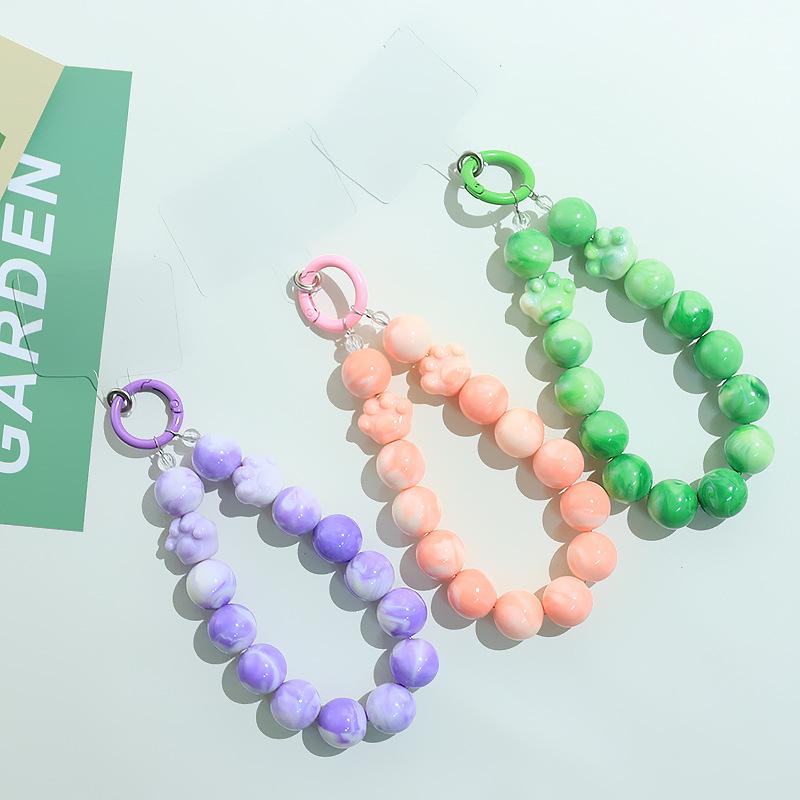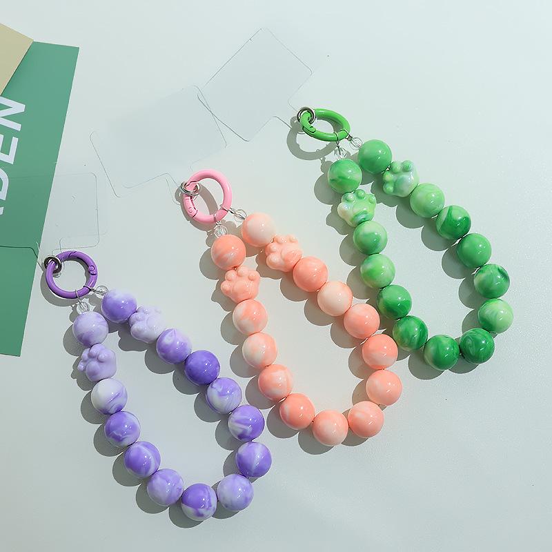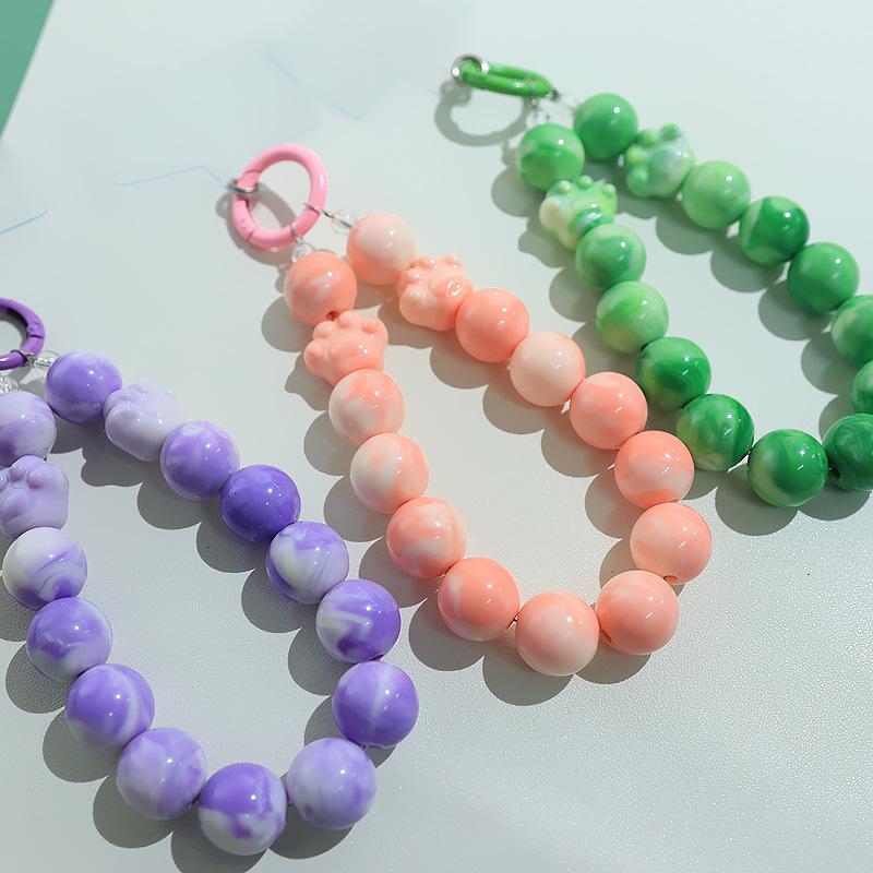 Funda para teléfono móvil creativa DIY, colgante de mano con cuentas, bonito llavero con estampado de oso y palma, bolsa de joyería, regalo pequeño colgante