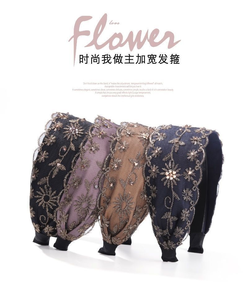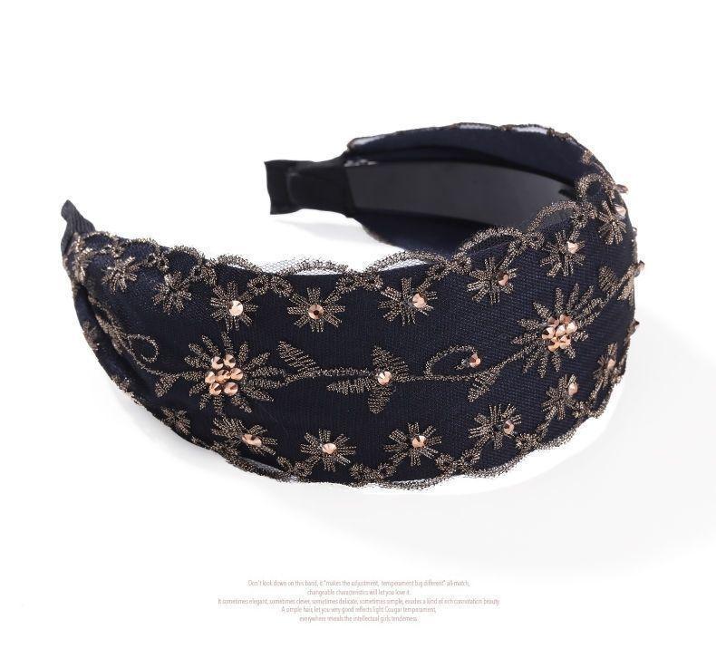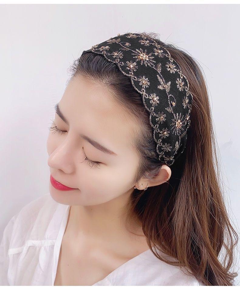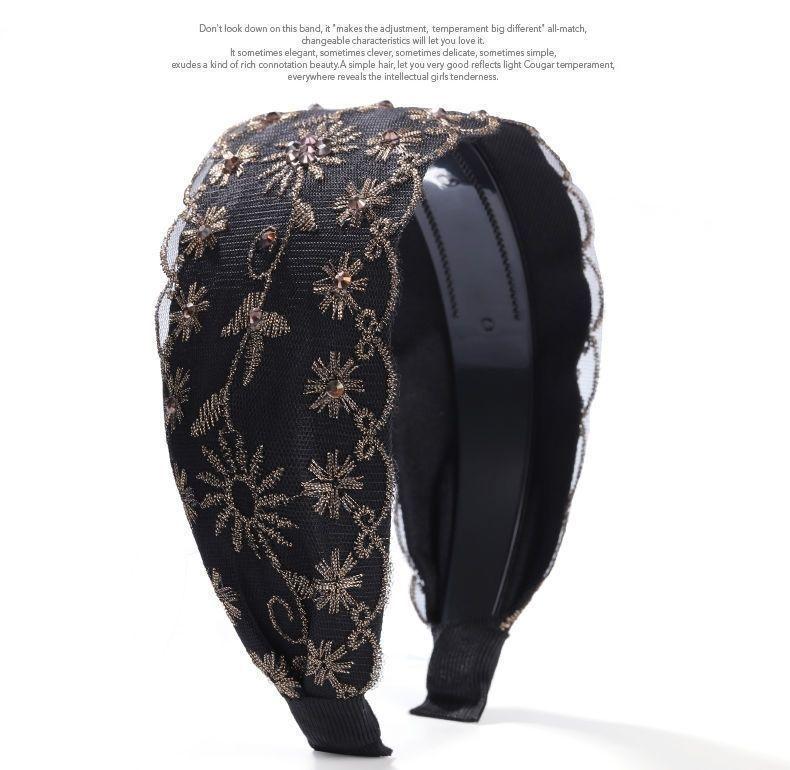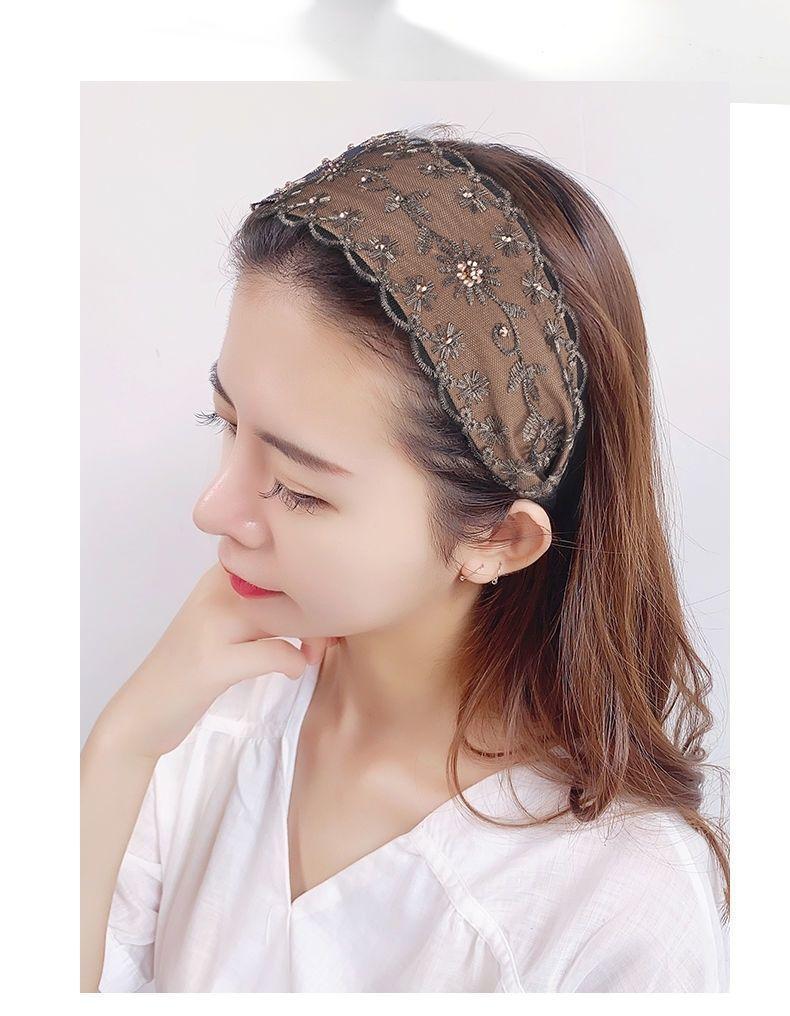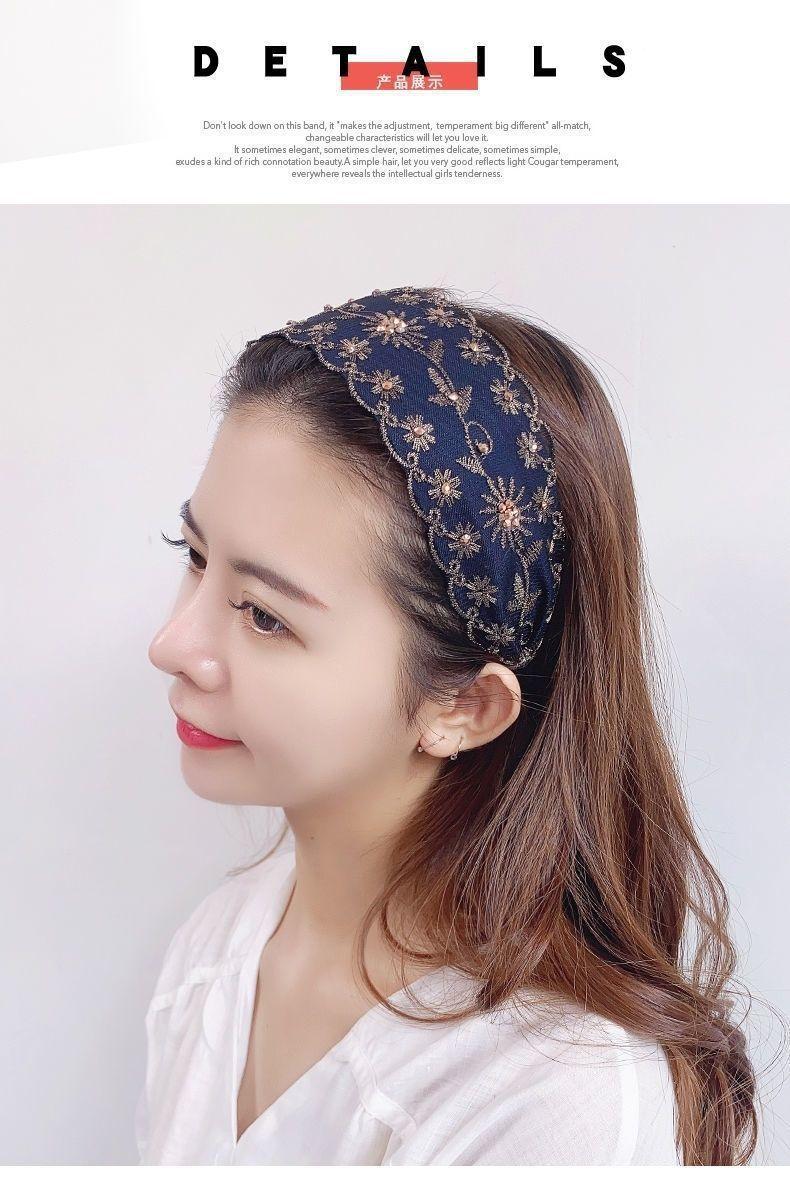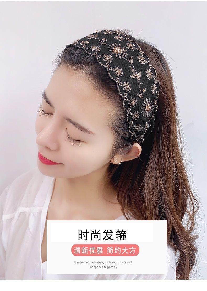 Diadema de pelo blanco con cristales bordados de ala ancha de estilo europeo y americano, horquilla a presión para el cabello, horquilla de moda para cabello roto con temperamento femenino, venta al por mayor