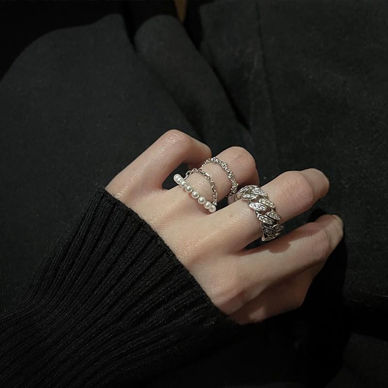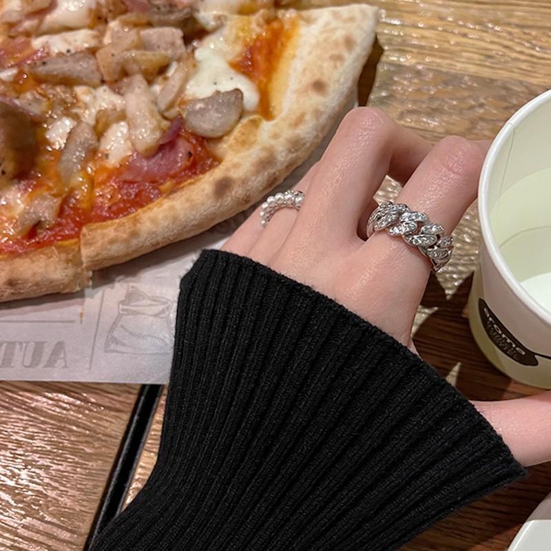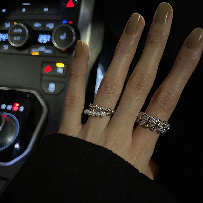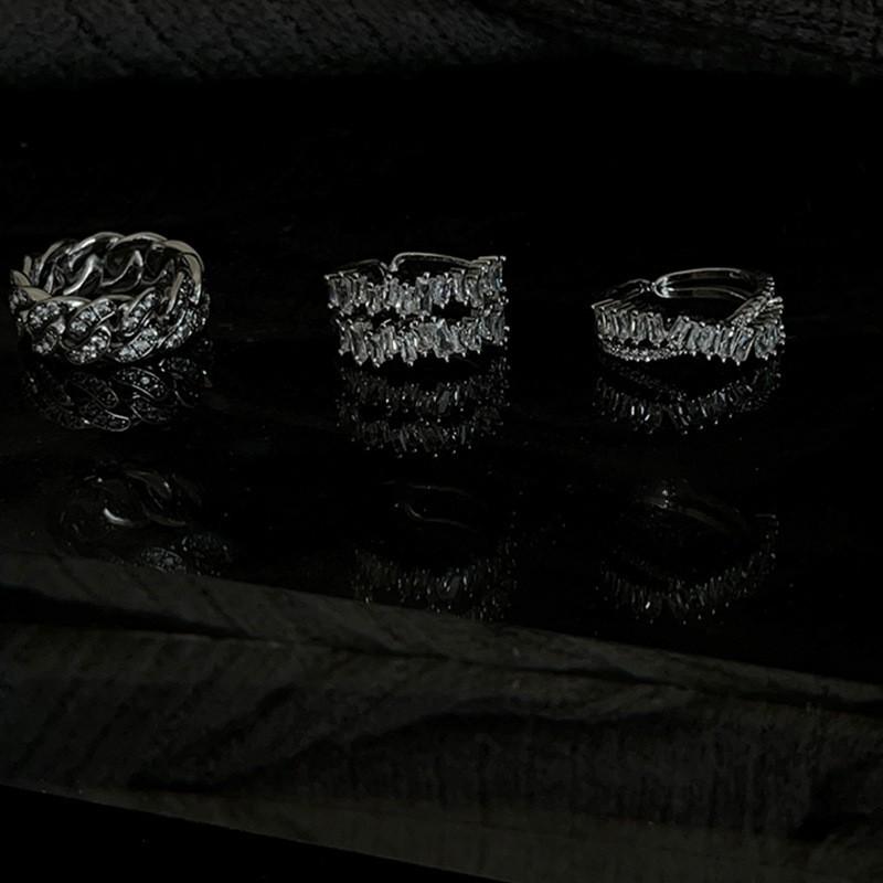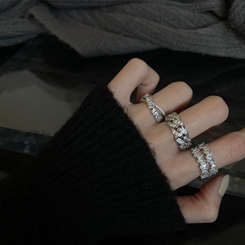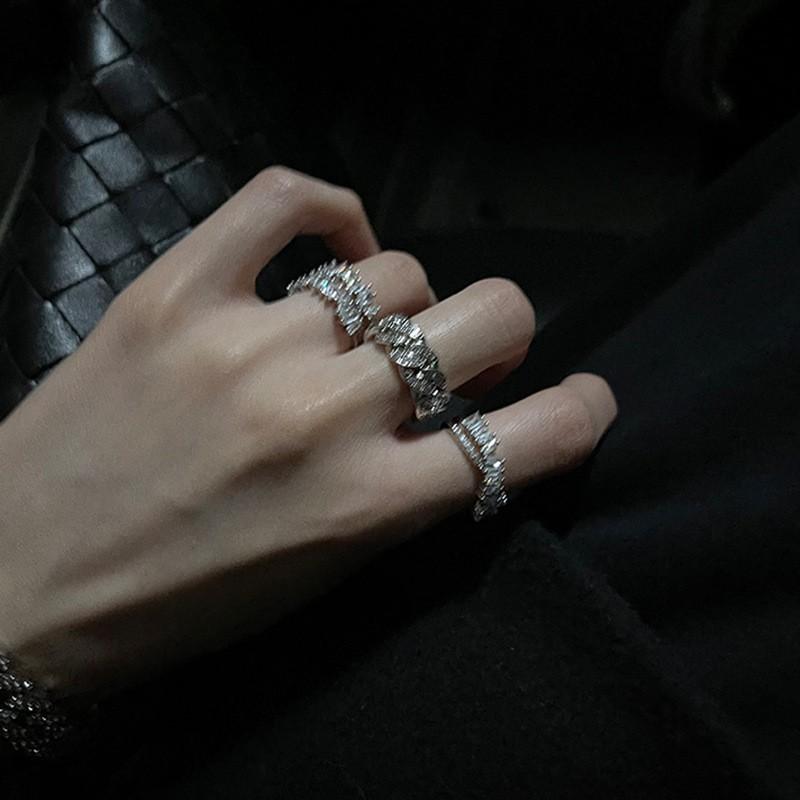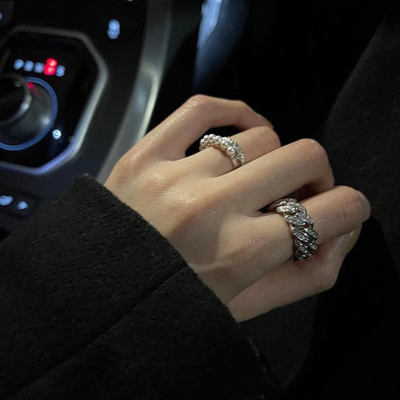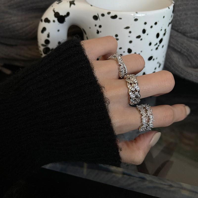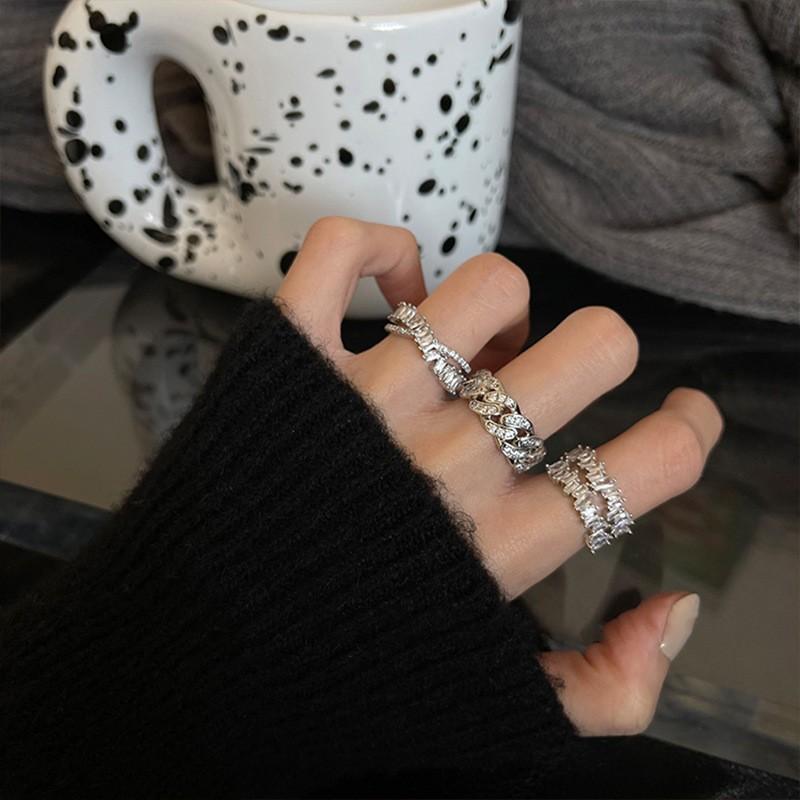 Anillo de diseñador de lujo ligero y ancho de alta gama con cadena de diamantes súper brillantes de doble capa y cristales de alta calidad para hombres y mujeres, apilado, estilo europeo y americano.