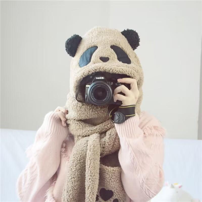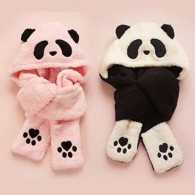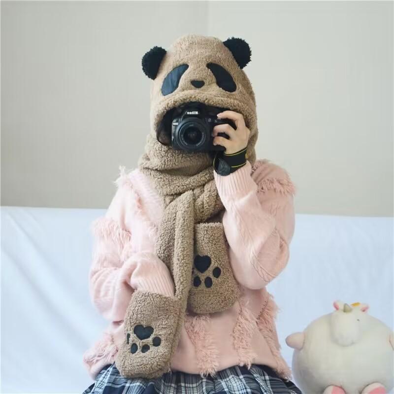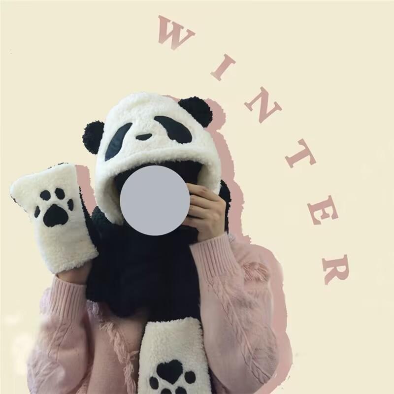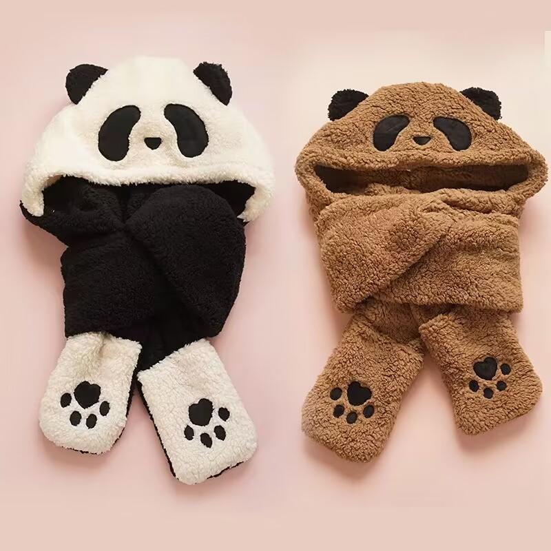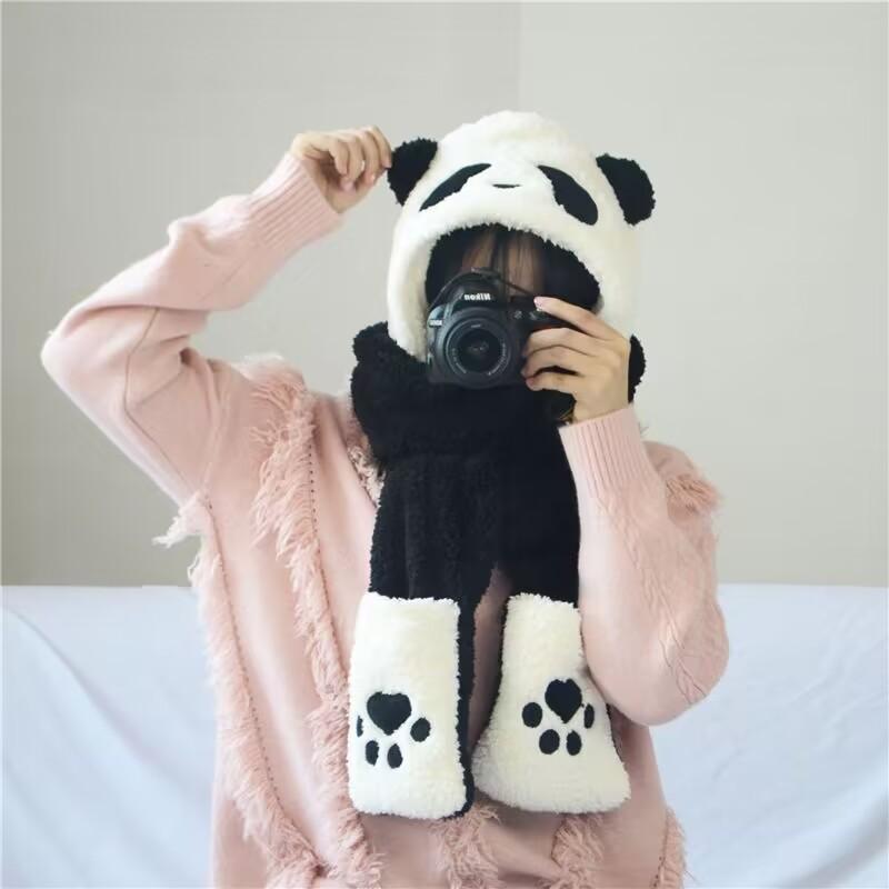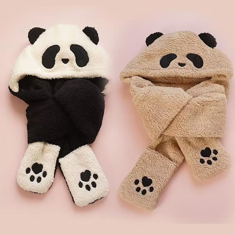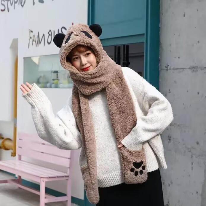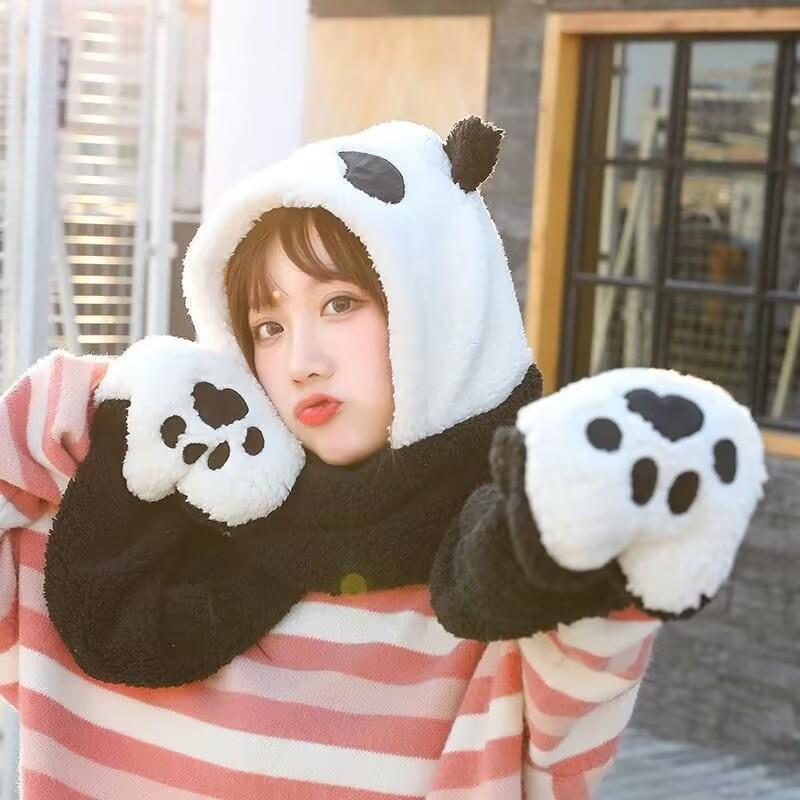 Sombrero de Panda Bufanda Guantes Otoño e Invierno Uno Espesado Maomao Cálido Popular en Internet Moda Coreana Todo Combinable Gorro para Montar