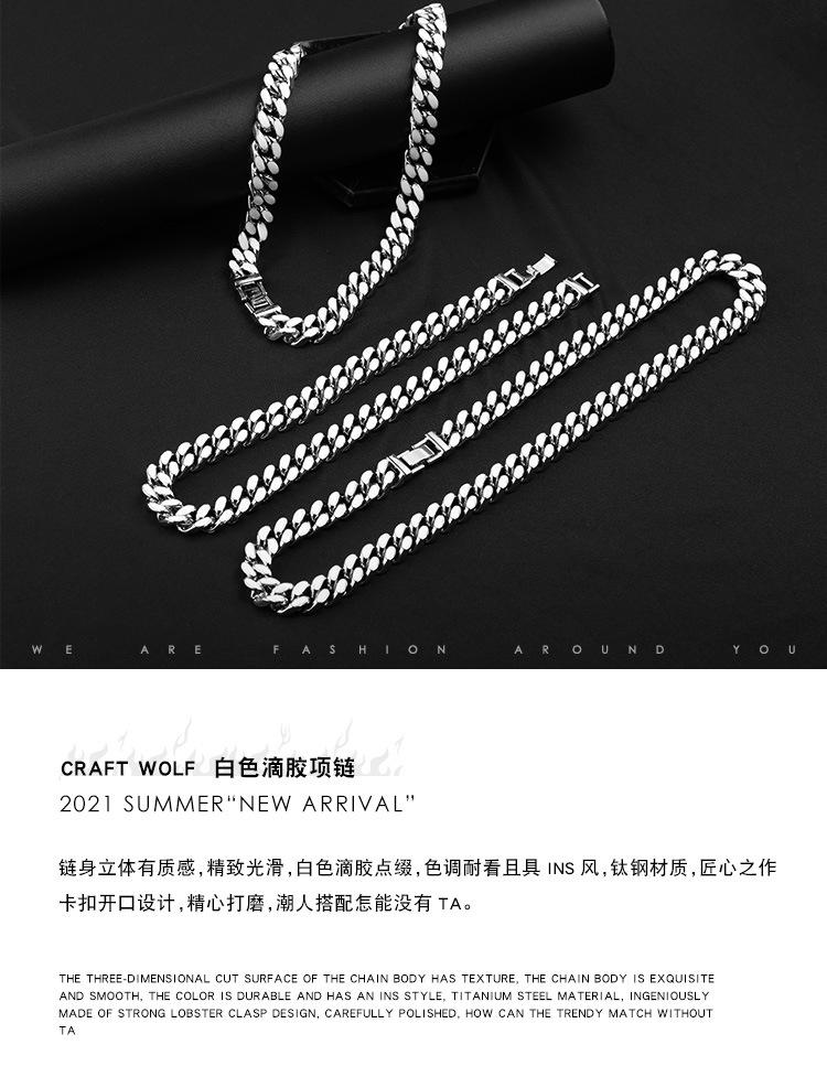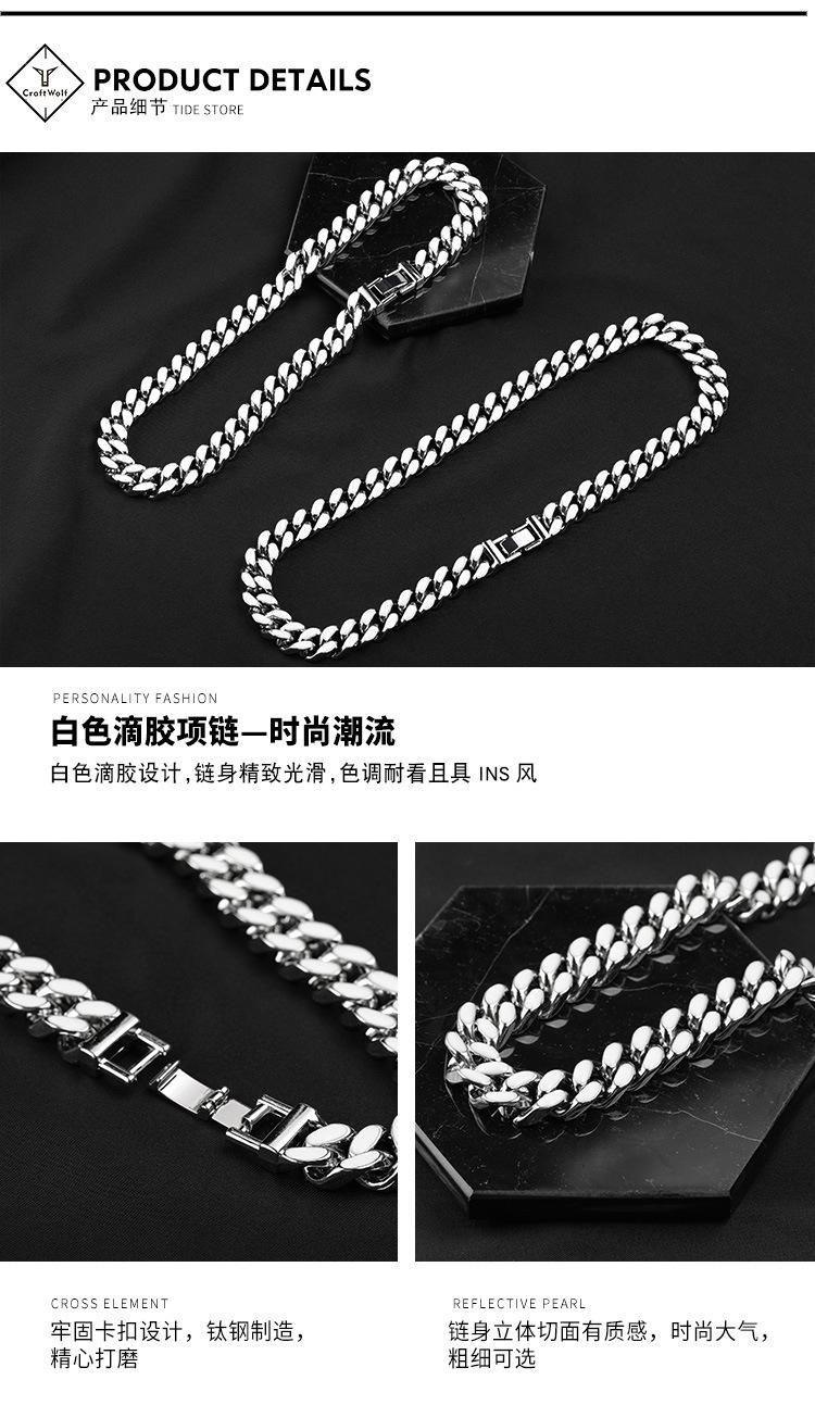 Collar de aleación con texto de hip-hop europeo y americano, collar de cadena cubana con pegamento de gota blanca gruesa, estilo hip-hop, para hombres y mujeres.