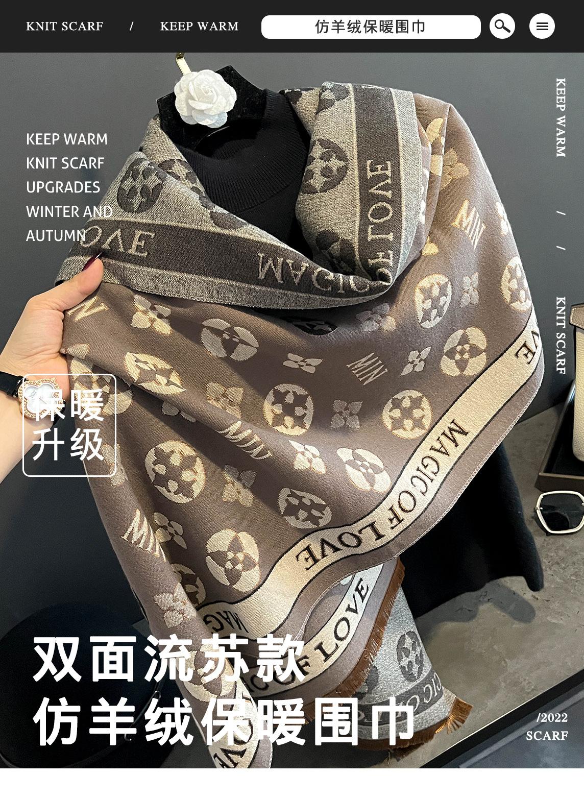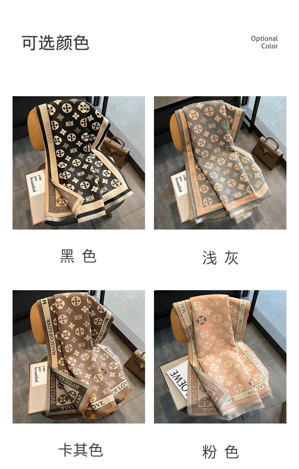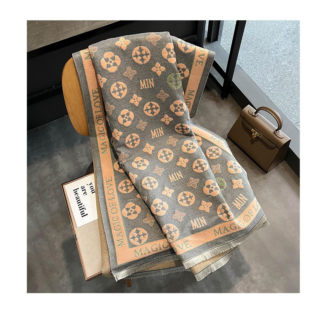 Otoño e Invierno Nuevo Estilo Coreano Bufanda Estampada de Imitación Cachemira Chal de Aire Acondicionado de Doble Uso para Mujer 2024 Nueva Bufanda Gruesa de Doble Cara