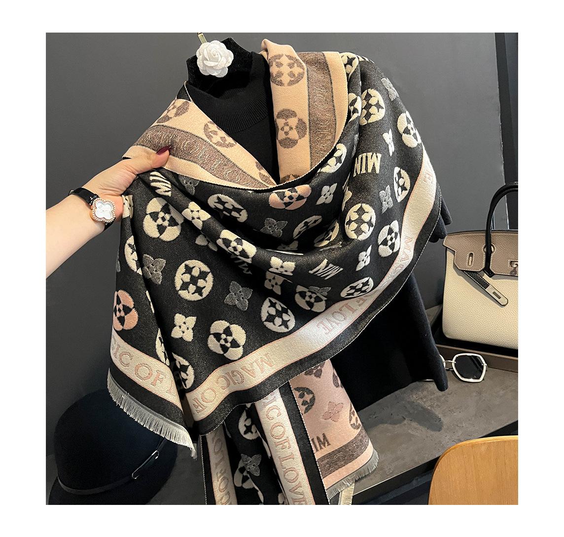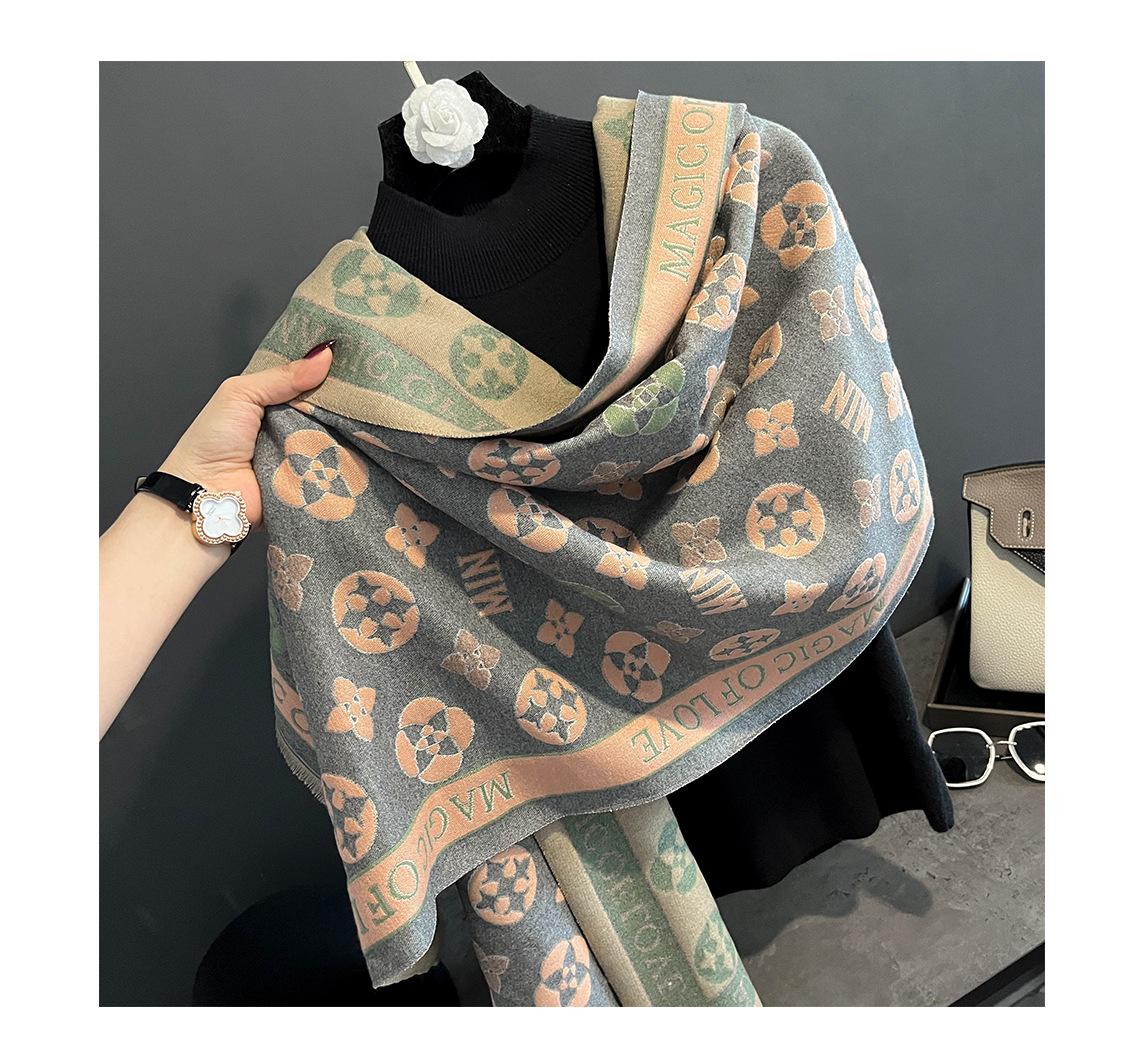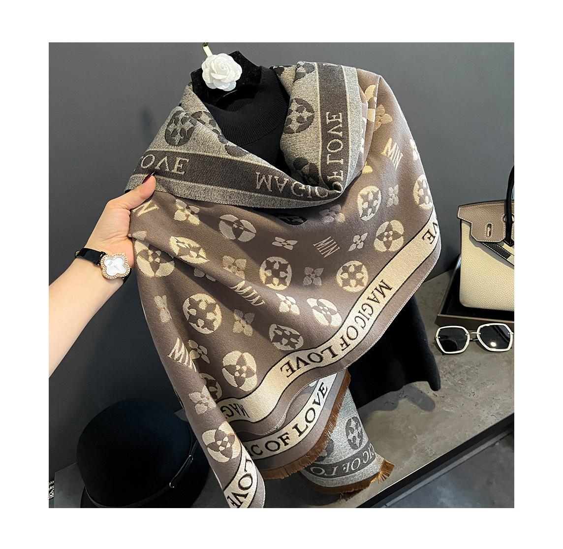 Otoño e Invierno Nuevo Estilo Coreano Bufanda Estampada de Imitación Cachemira Chal de Aire Acondicionado de Doble Uso para Mujer 2024 Nueva Bufanda Gruesa de Doble Cara