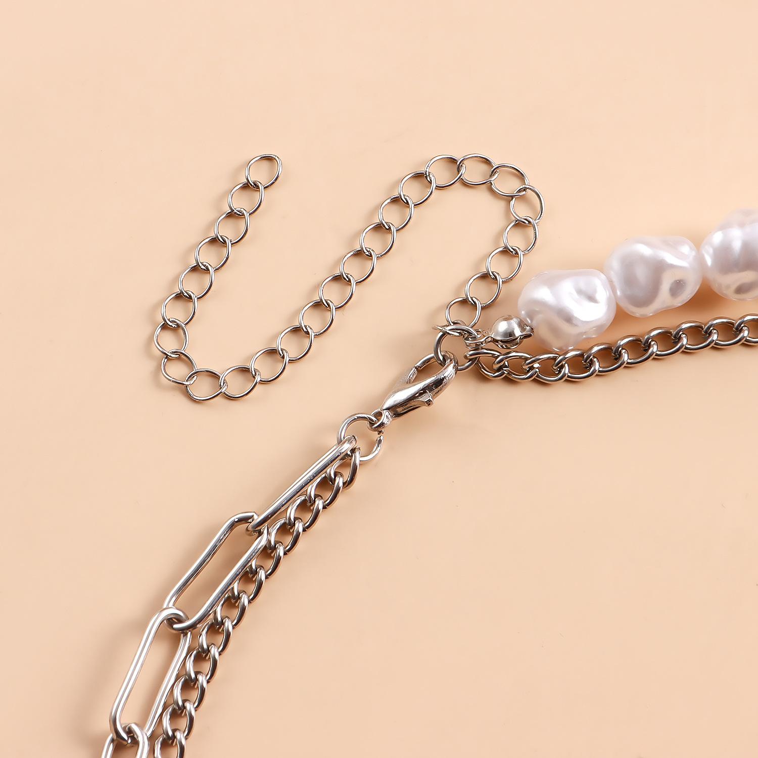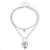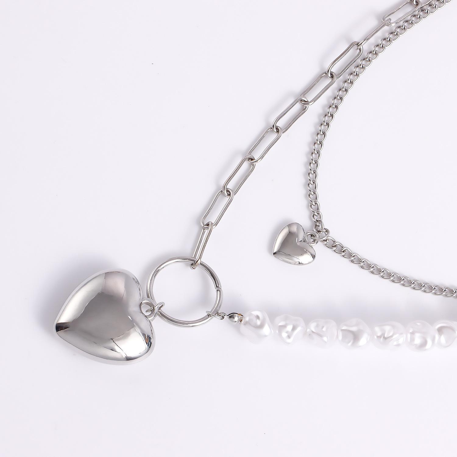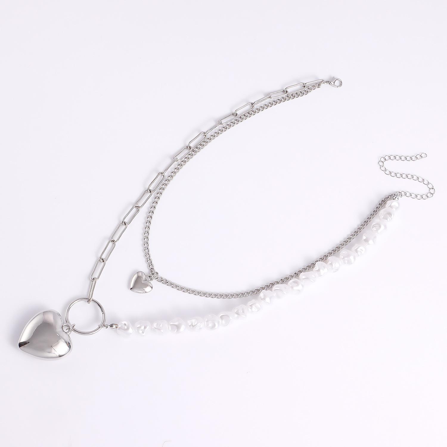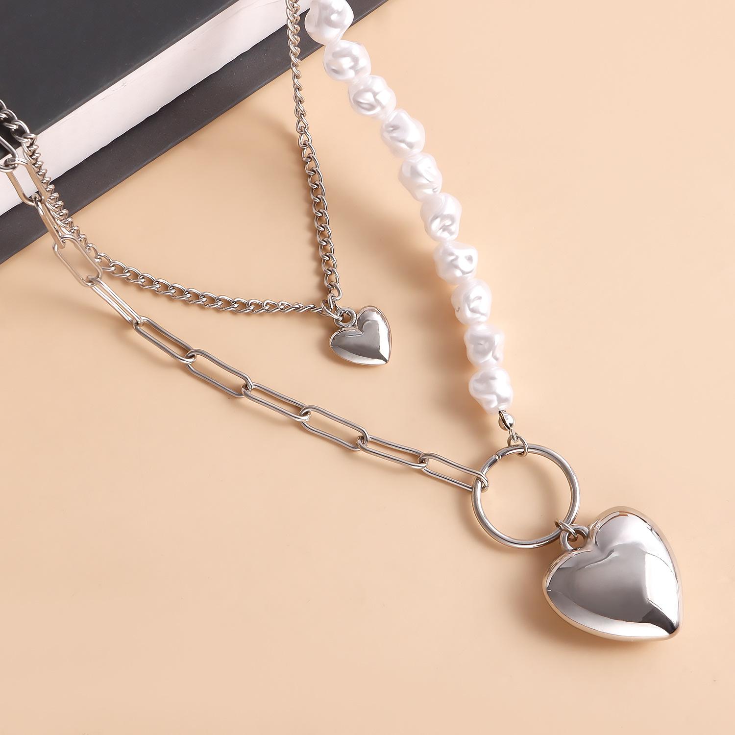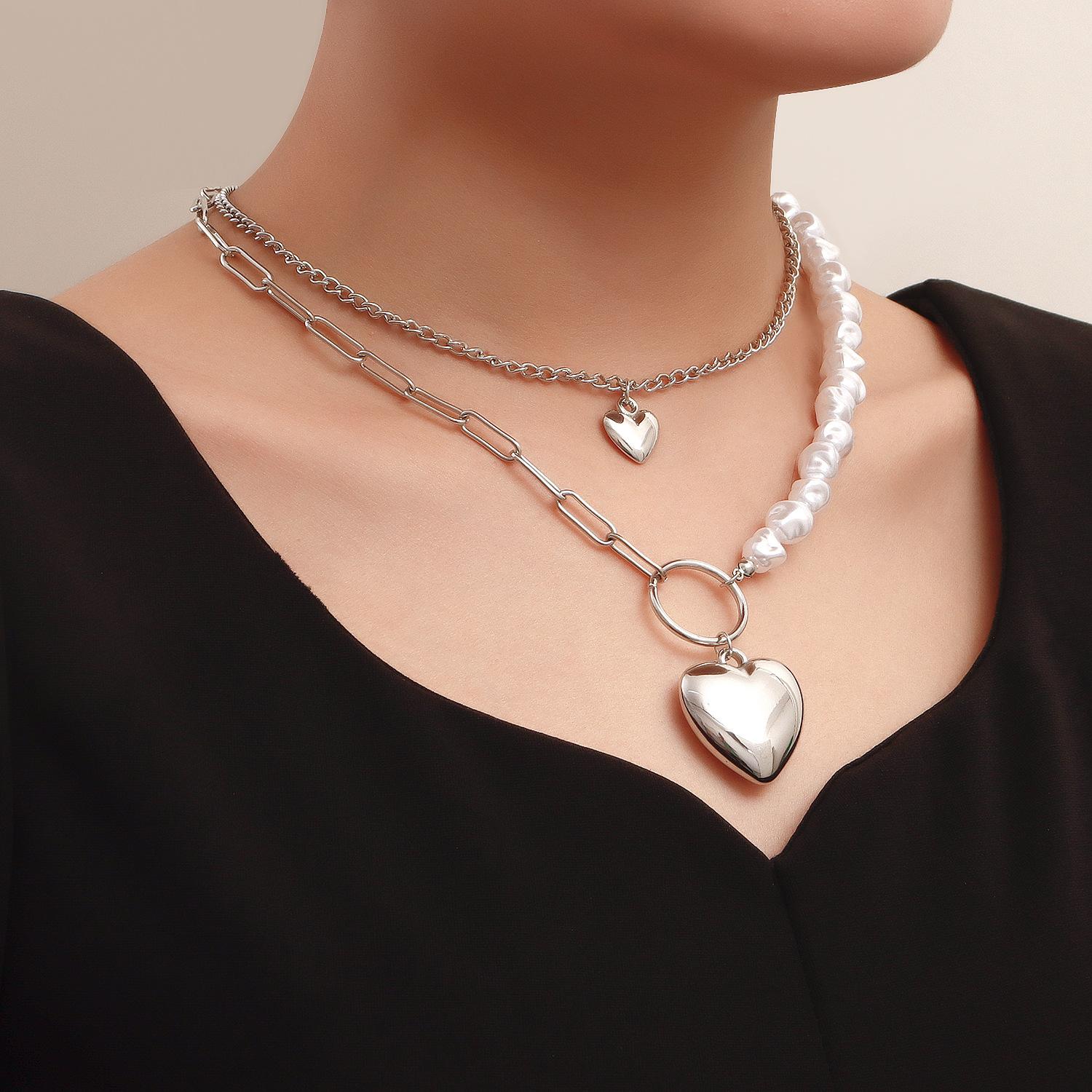 Collar con colgante de amor de doble capa con cadena de clavícula y costuras de perlas artificiales de forma especial para mujer, joyería transfronteriza europea y americana