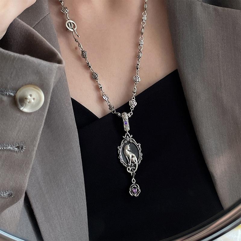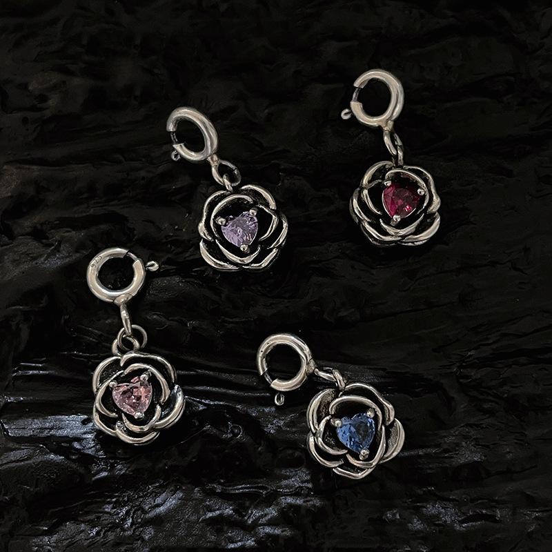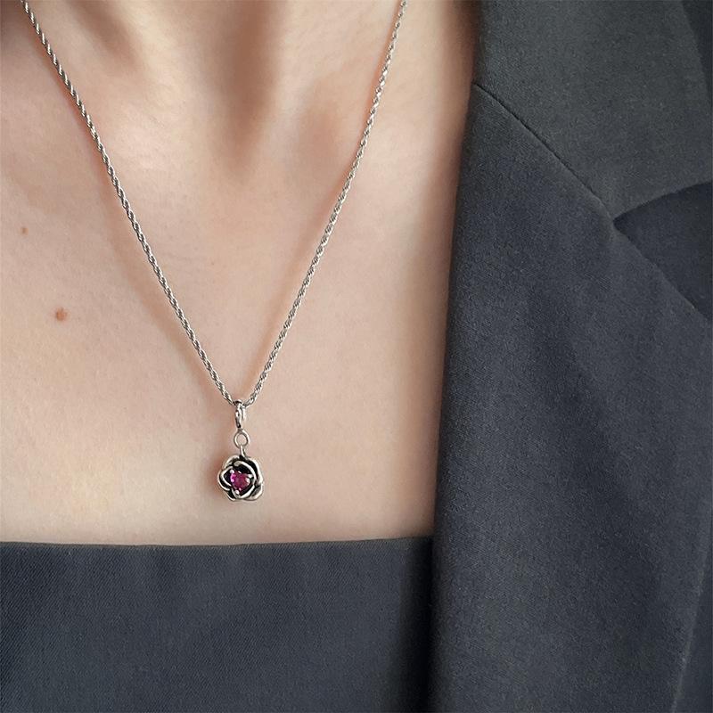 2023 nuevo nicho de diseño retro circón tridimensional rosa colgante femenino temperamento de moda todo fósforo pequeño colgante