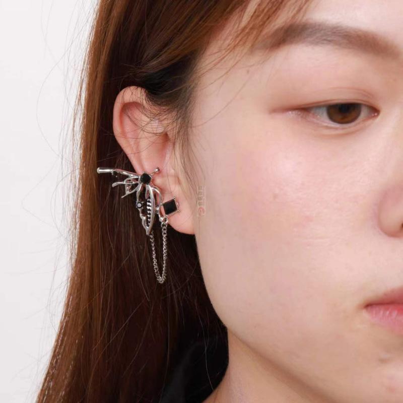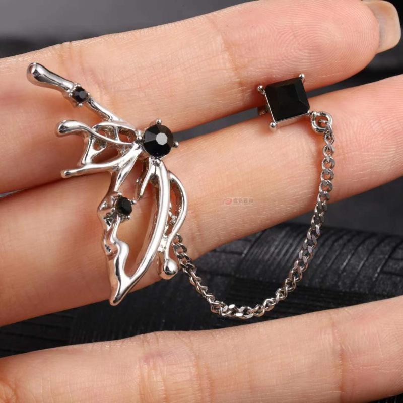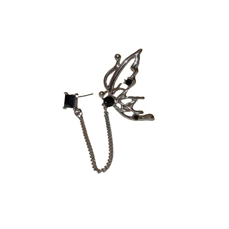 Pendientes de mariposa con diamantes, pendientes de clip de una sola pieza, diseño de nicho de Corea del Sur, pendientes de metal de estilo frío sin orejas para mujer