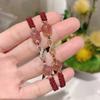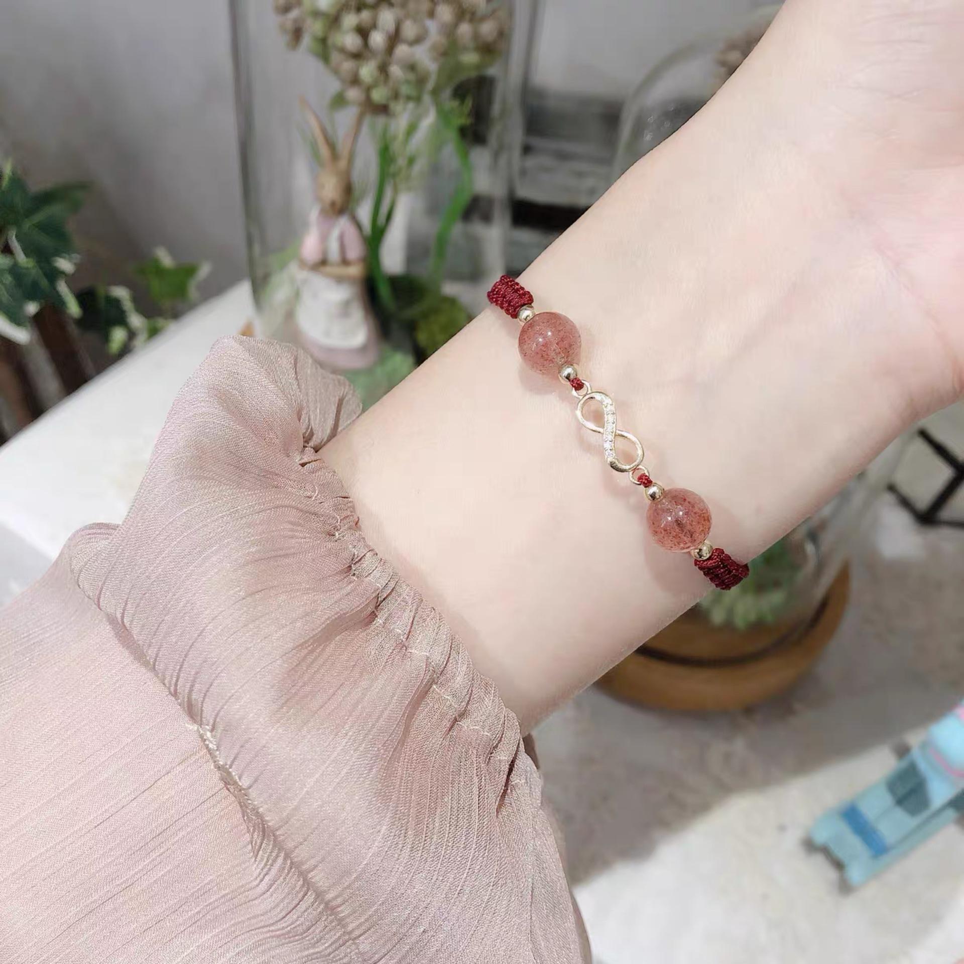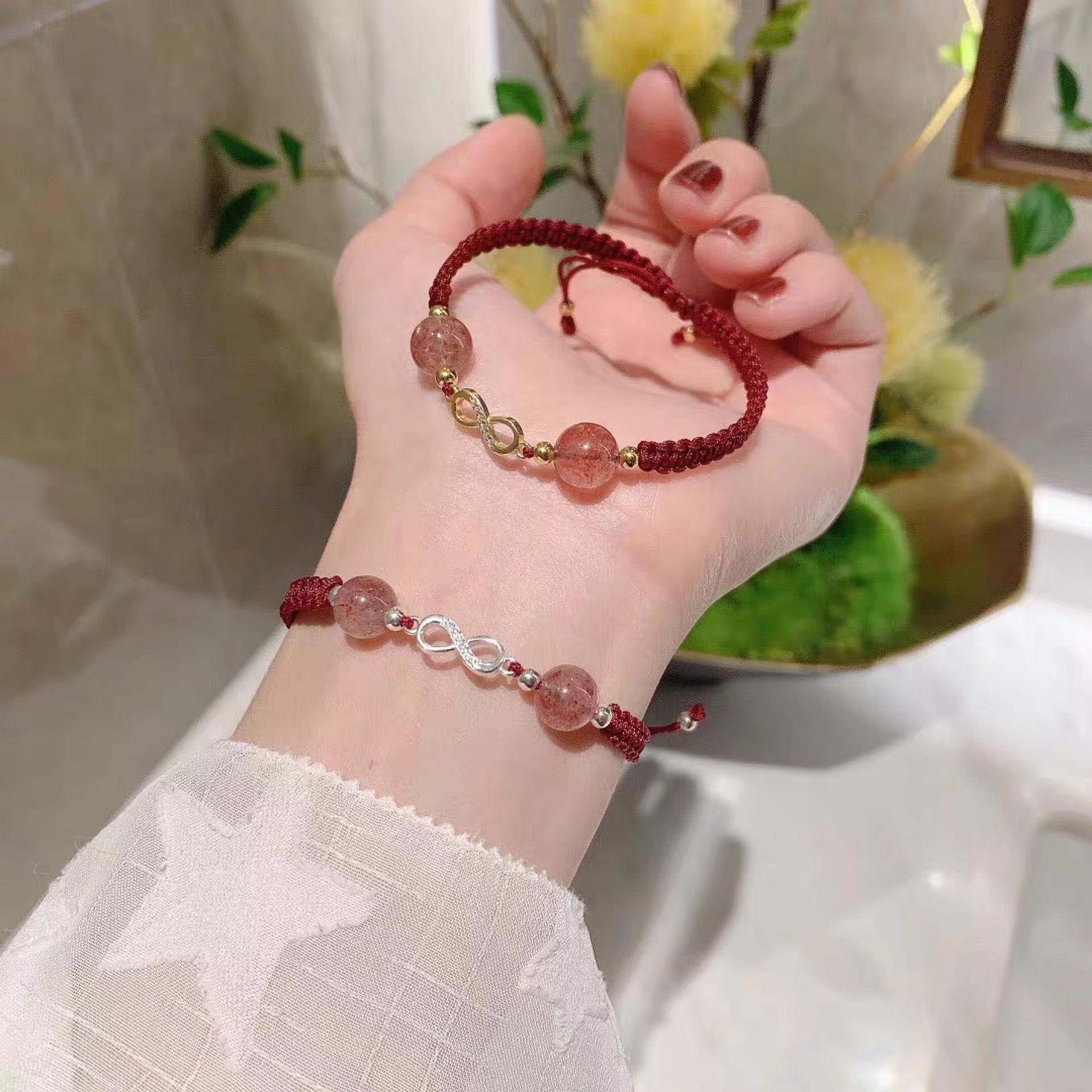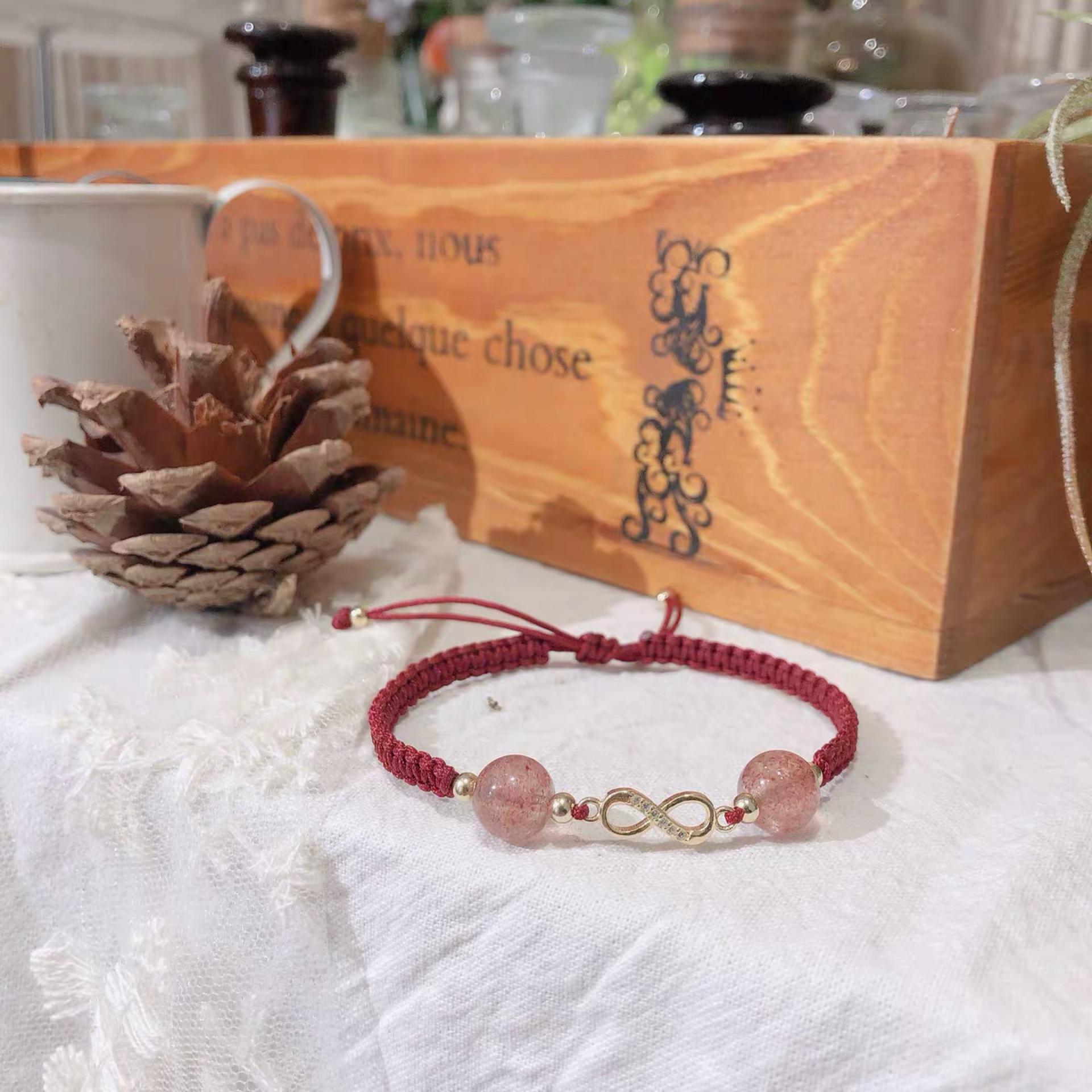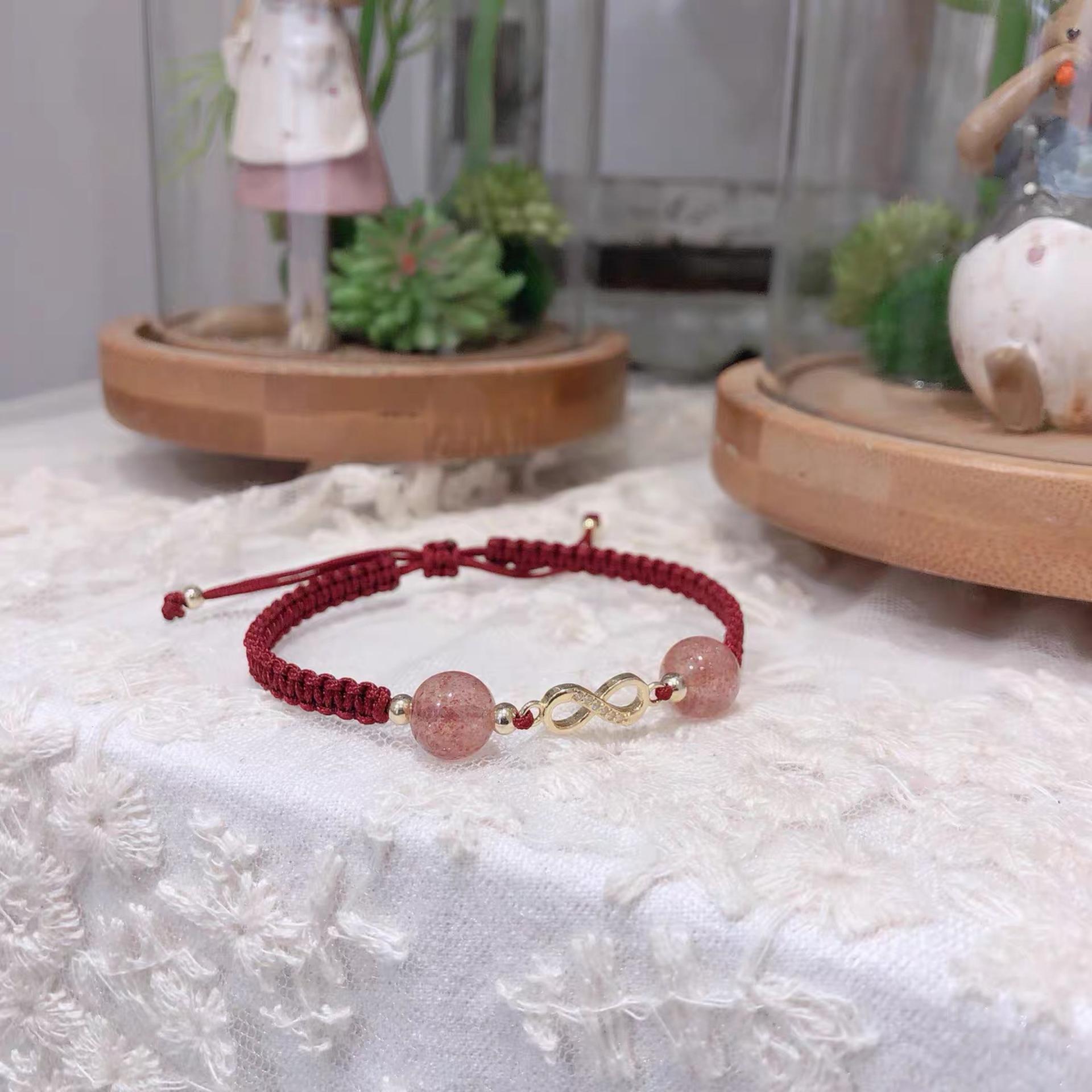Pulsera de Cristal de Fresa Cristal para Estudiantes Simples Mori Cuerda Roja Tejida a Mano Ajustable