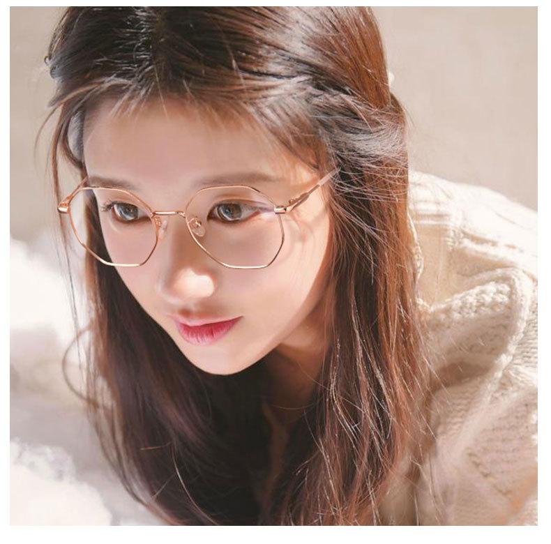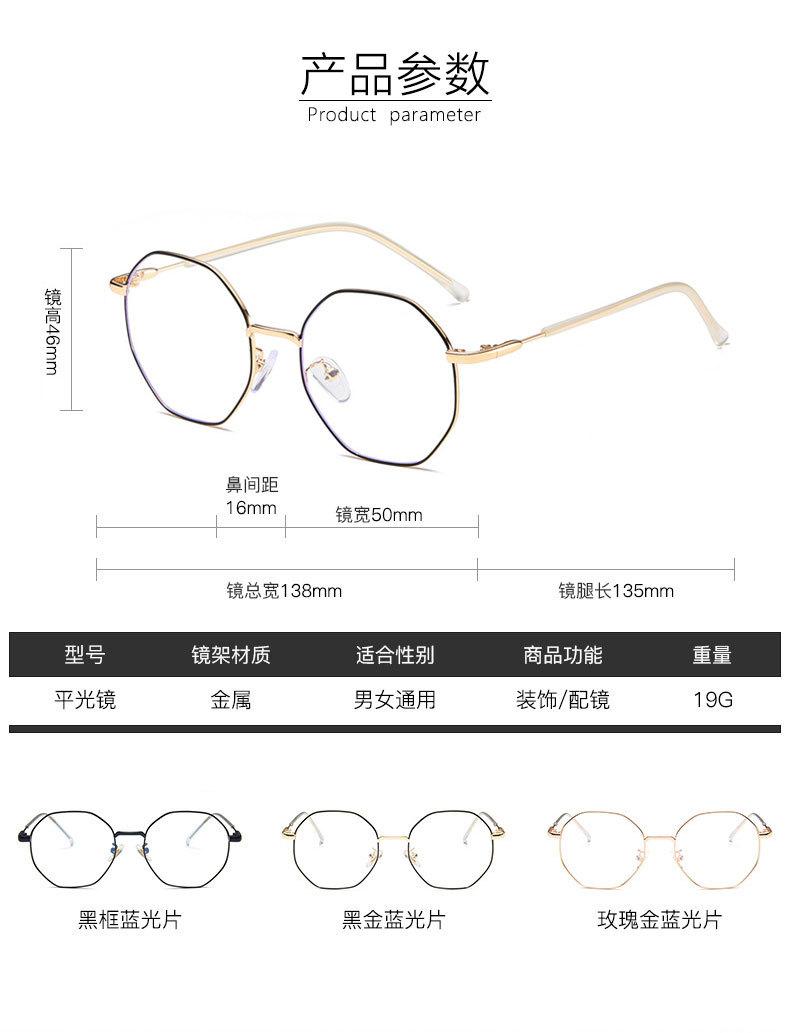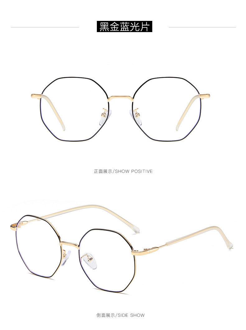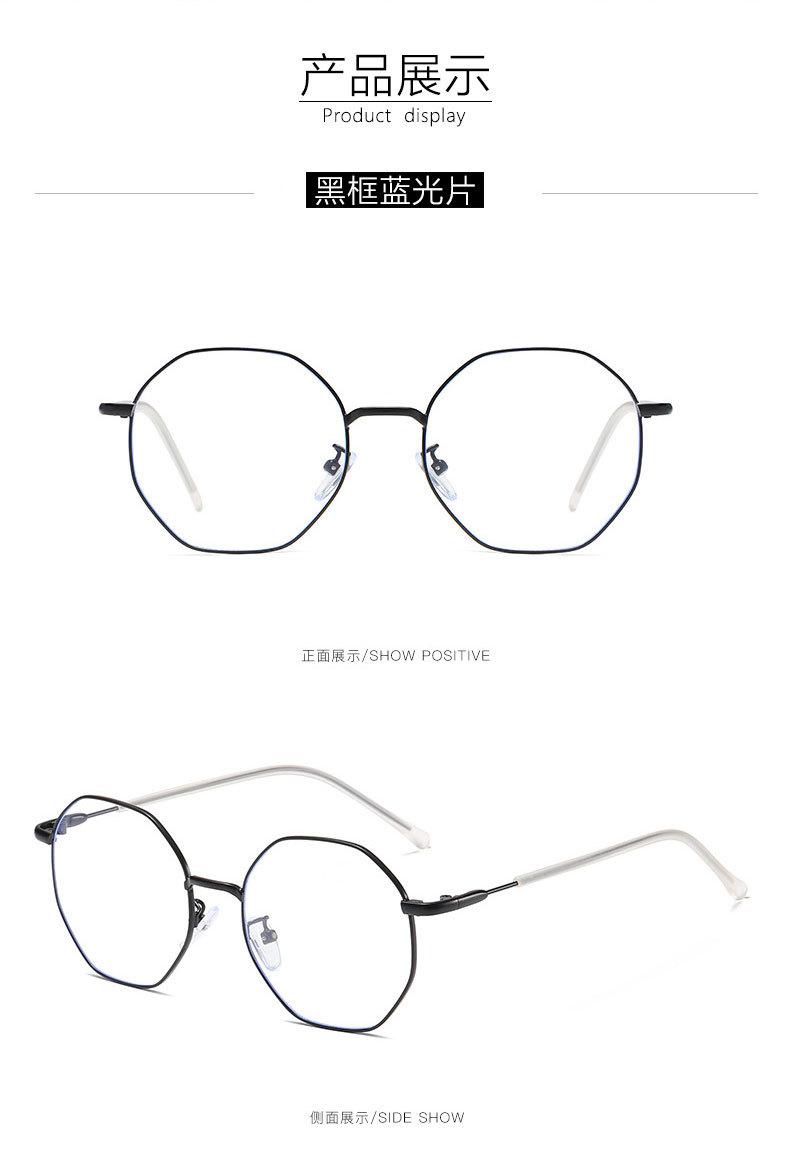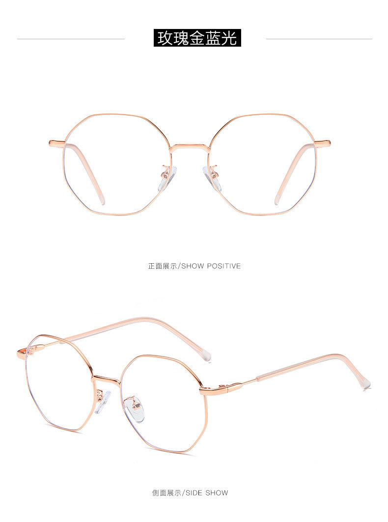 Gafas de moda de metal con luz anti-azul para hombres y mujeres, polígono irregular, protección UV, sencillas, montura grande, gafas lisas