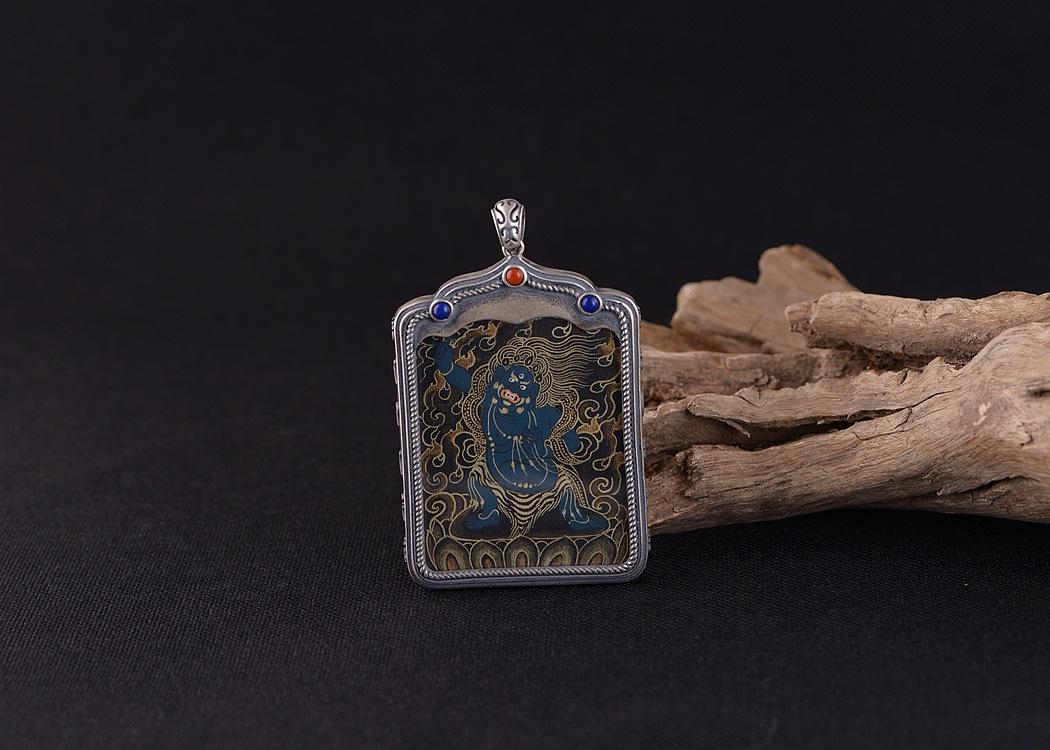 Colgante Ciervo Dorado Rey Plata Esterlina S925 Artesanía Retro Pintado a Mano Oro Negro Thangka Estilo Nacional Nicho Cultural Juguete Colgante de Plata