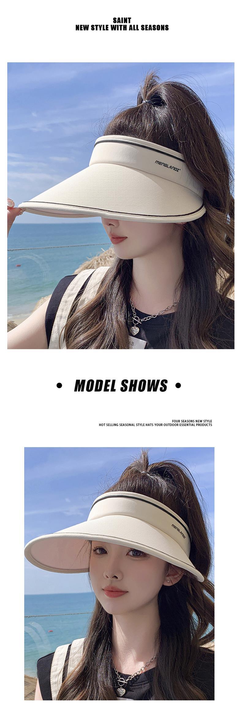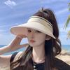 Sombrero de primavera y verano para mujer, sombrero para el sol con parte superior vacía y ala ancha para mujer, sombrero para el sol pequeño con aspecto de cara, sombrero para el sol para montar en la playa al aire libre.