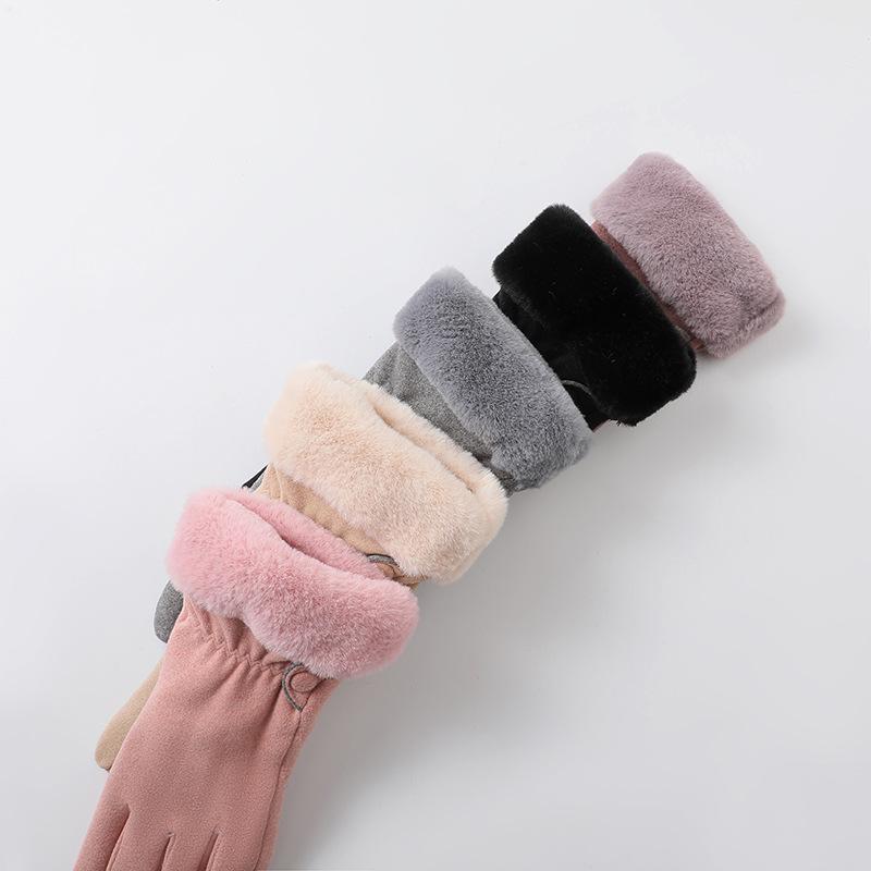 Guantes térmicos de invierno para mujer, forro polar de terciopelo grueso, estilo coreano, para otoño, para ciclismo al aire libre, conducción, pantalla táctil, guantes para montar