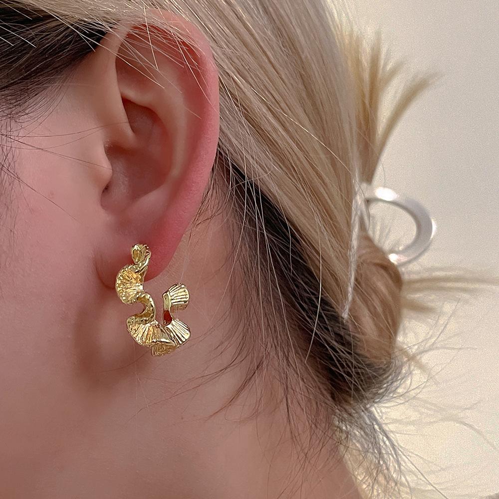 Nuevos Aretes Ondulados al Por Mayor, Estilo Lujo Ligero, Aretes de Temperamento Retro, Moda para Ir al Trabajo, Aretes Simples de Alta Gama para Mujeres