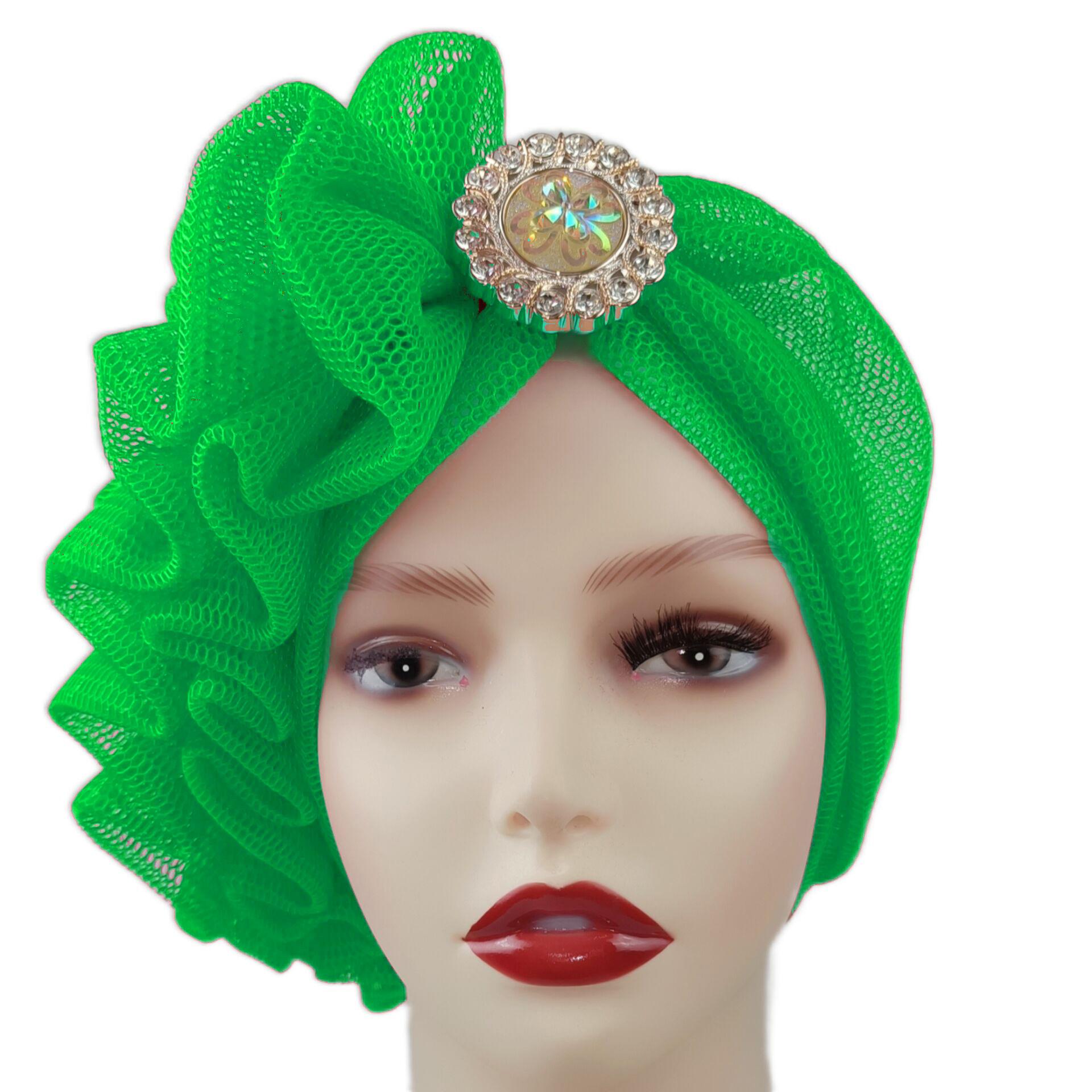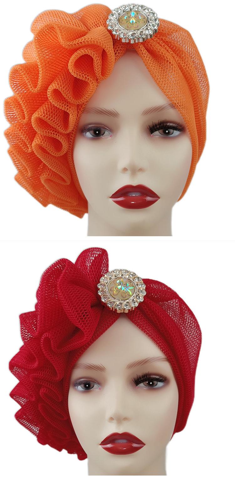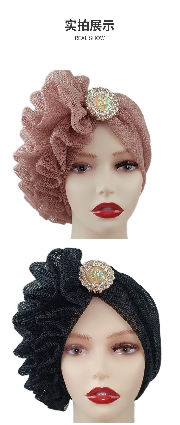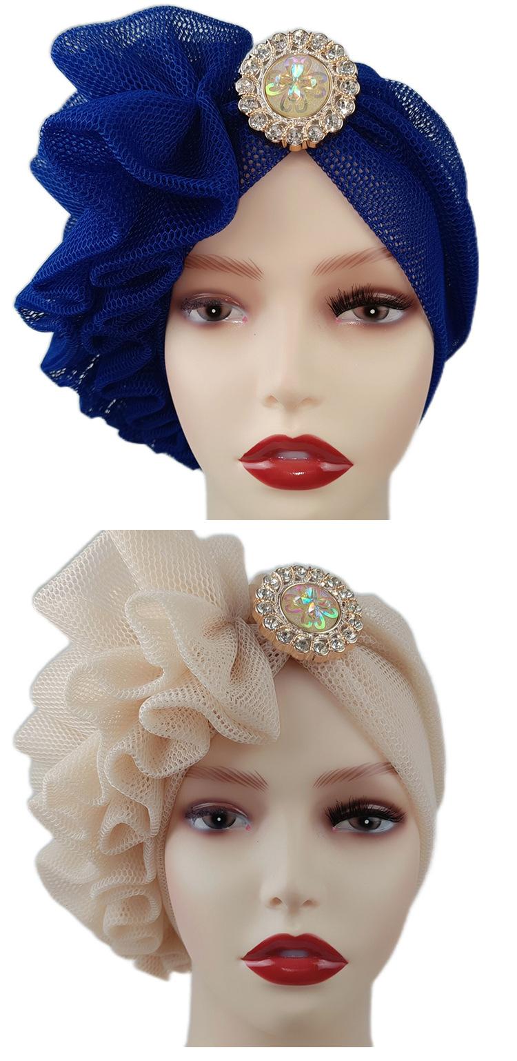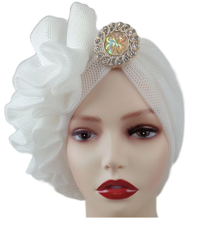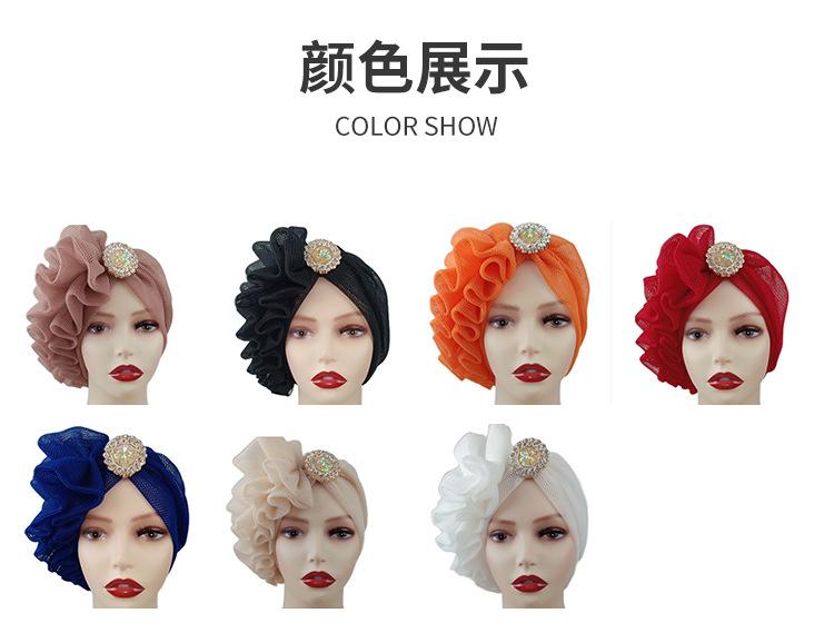 Sombreros musulmanes nuevos transfronterizos con decoración de aleación, sombreros turbante de encaje arrugado, ventas directas de fabricante, venta al por mayor de estilo étnico en stock