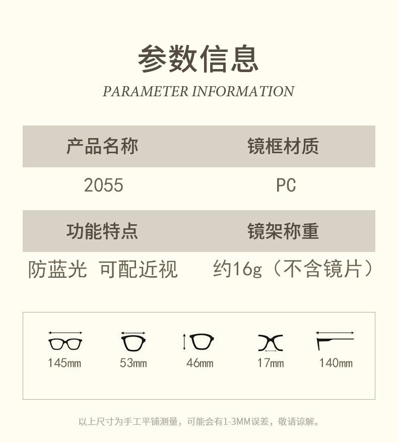 Nuevo espejo plano antirreflejo azul para mujer sin maquillaje puede combinar con armazón de gafas graduadas para miopía para hombre de montura grande cuadrada a la moda con graduación