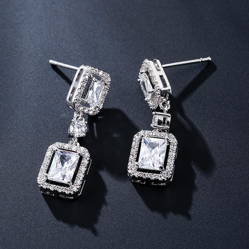 Compra Pendientes de circonita cuadrada geométrica clásica nueva europea y americana para mujer, elegantes y ligeros pendientes de lujo para boda y fiesta. al por mayor en Joom.pro