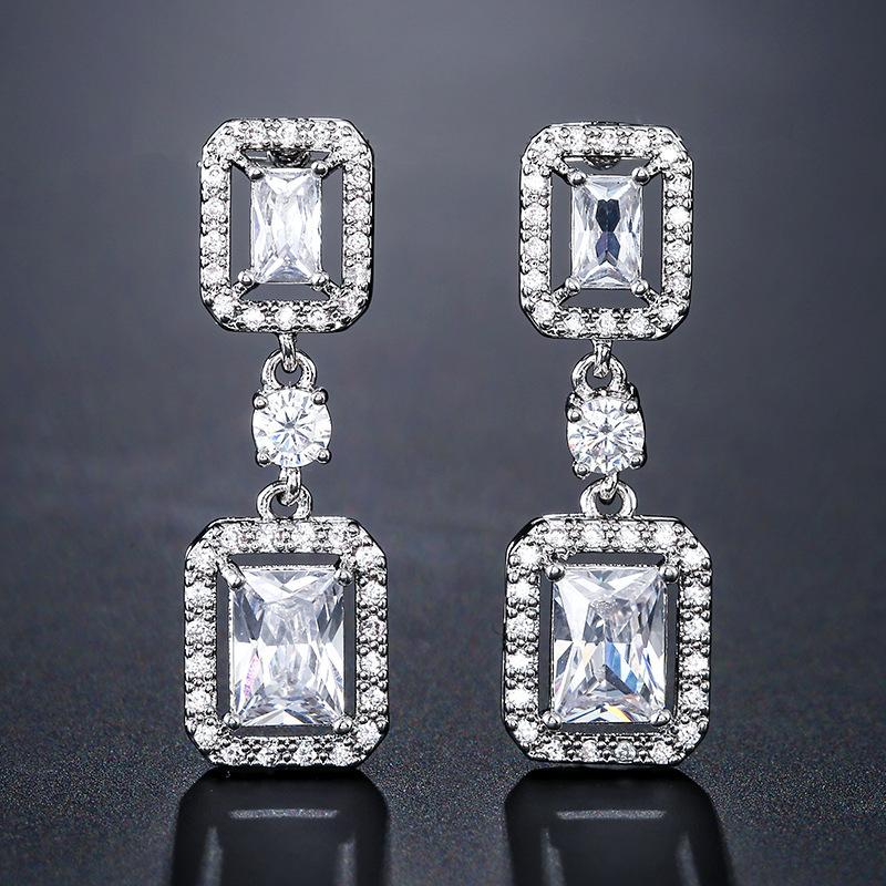 Pendientes de circonita cuadrada geométrica clásica nueva europea y americana para mujer, elegantes y ligeros pendientes de lujo para boda y fiesta.