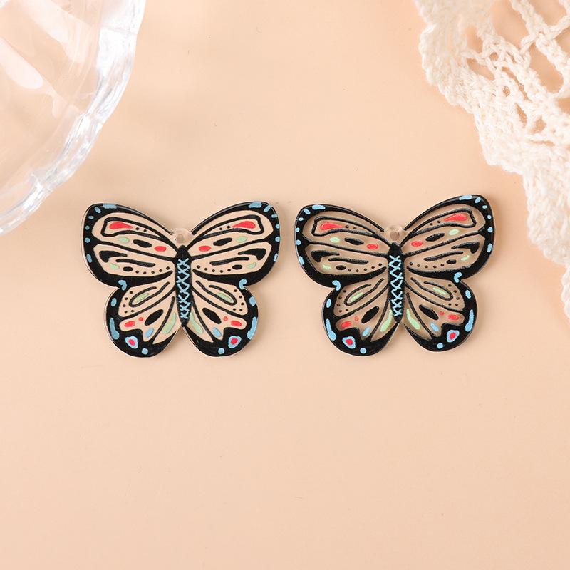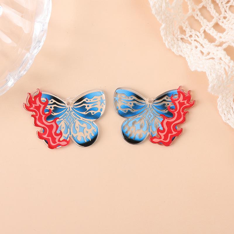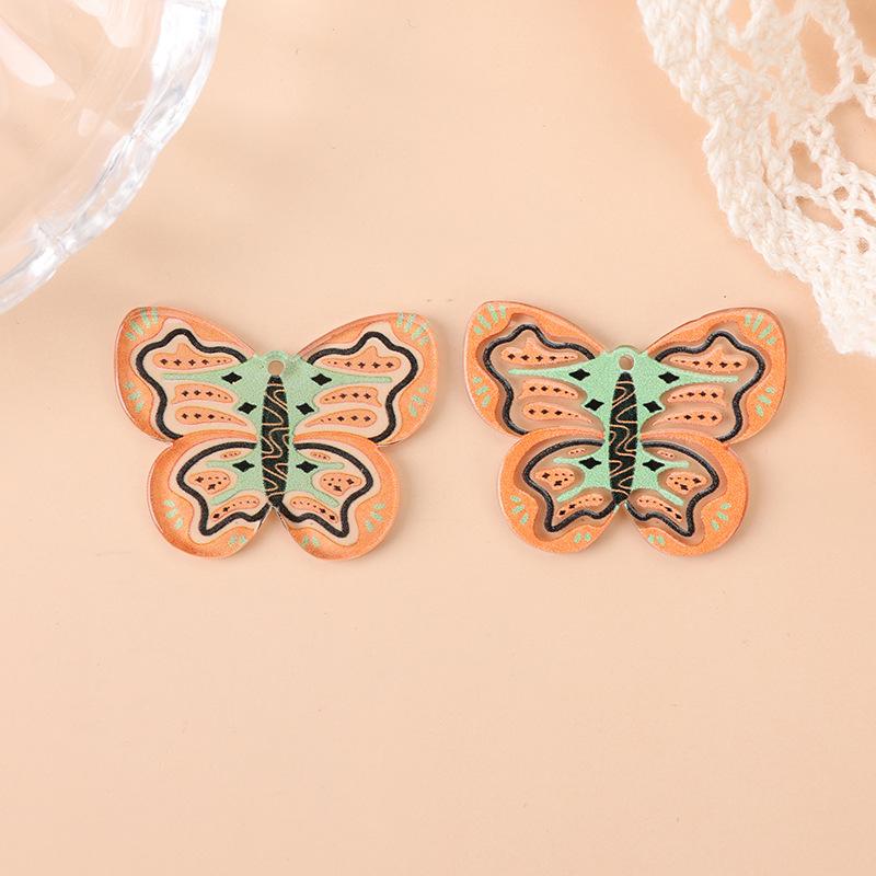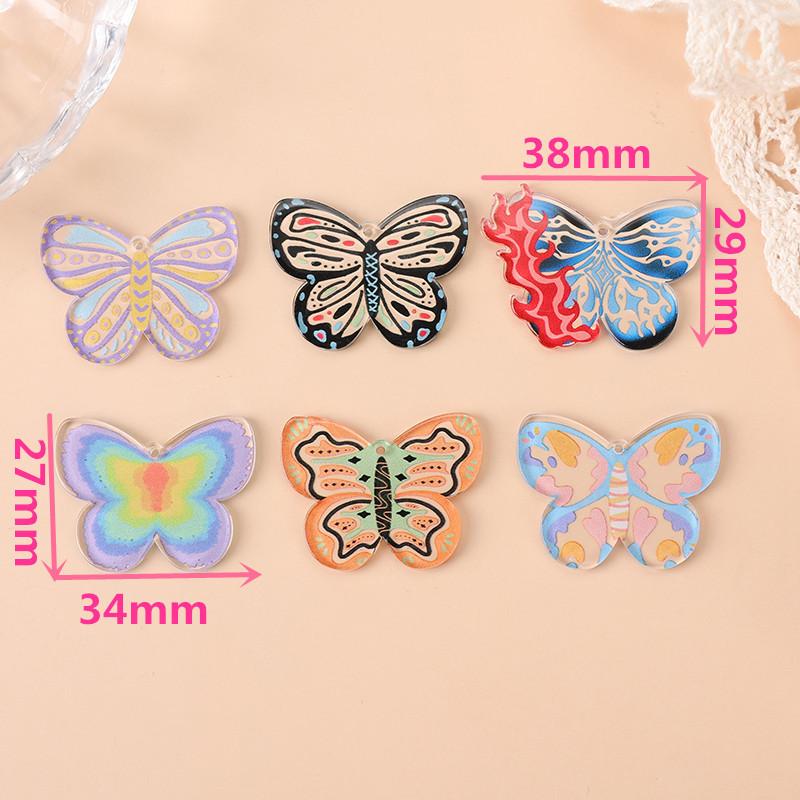 Venta caliente transfronteriza de pendientes, collares y llaveros de mariposa acrílica de doble cara DIY.