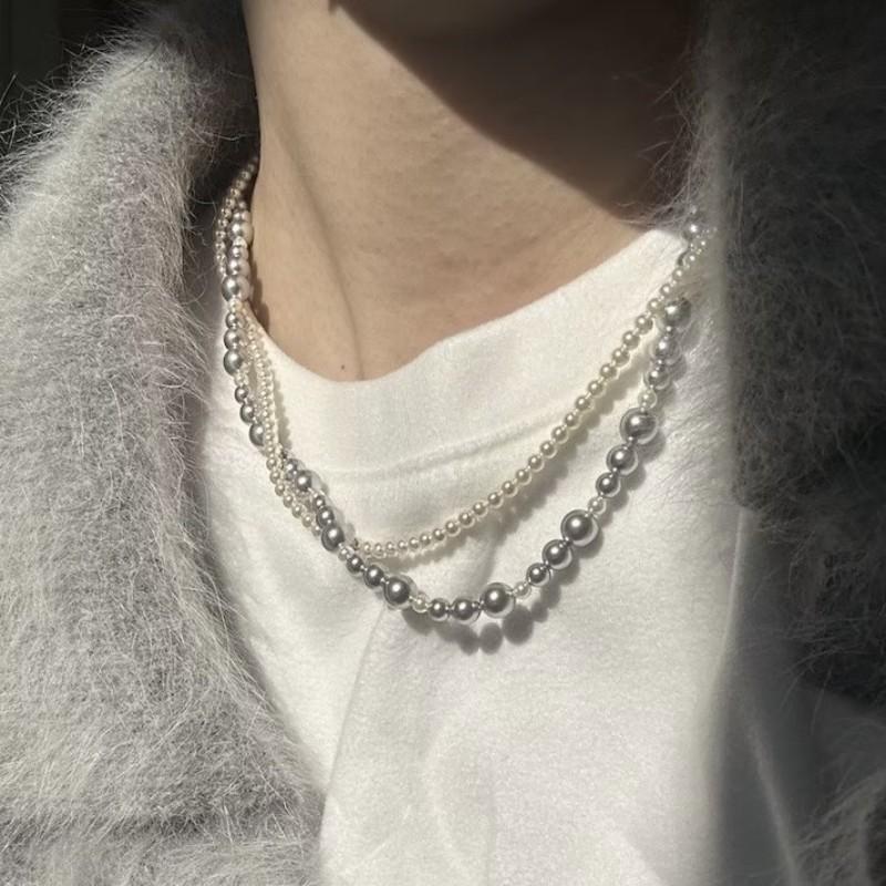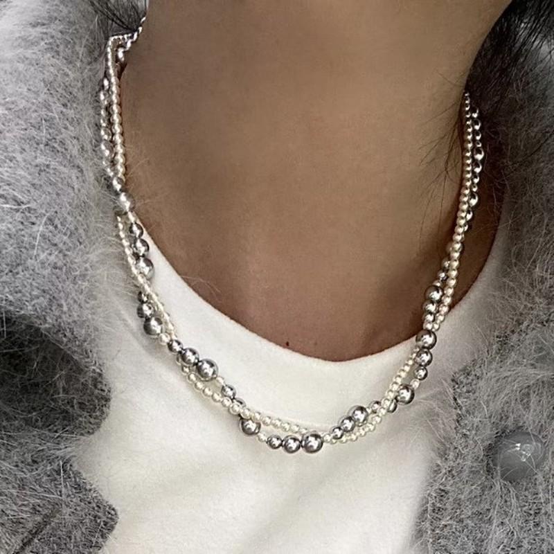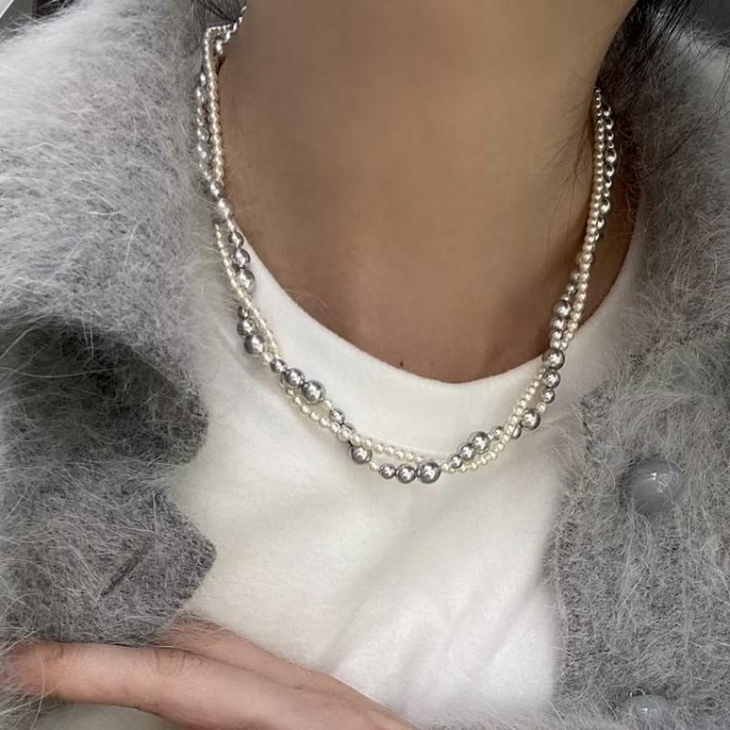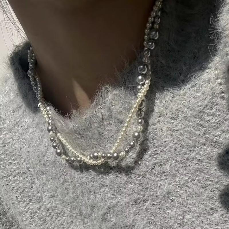 Nuevo collar de perlas apiladas de alta gama con un toque de estilo nicho. Collar juvenil de moda con cadena de clavícula para mujer.