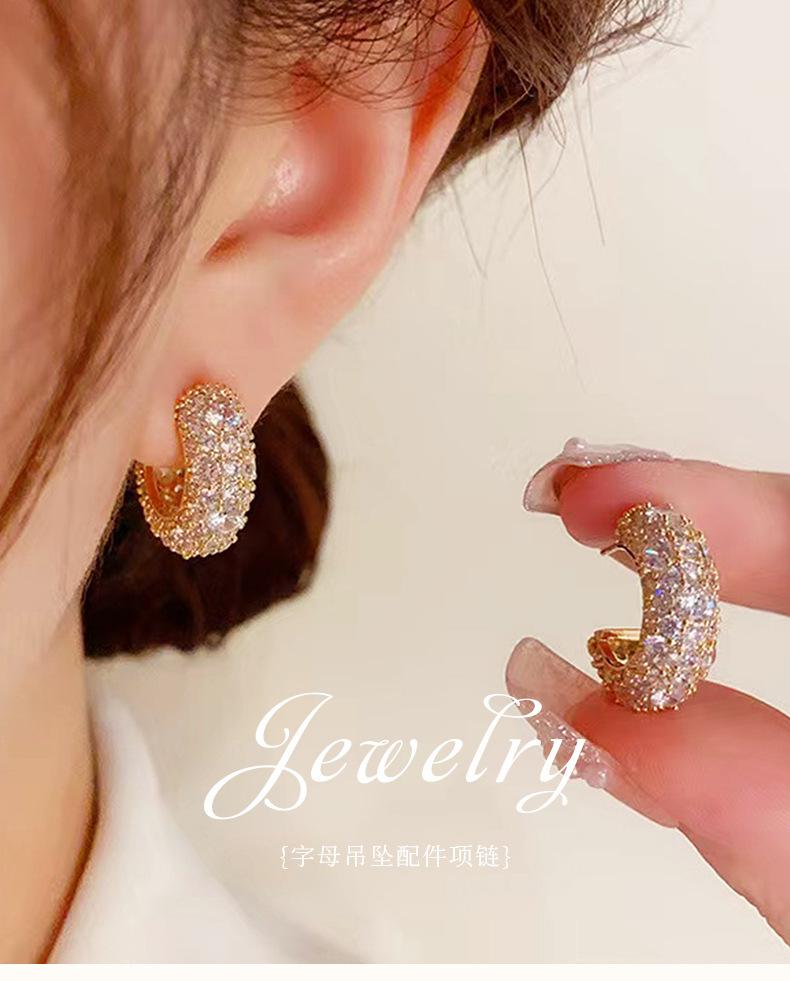 Pendientes sencillos con microincrustaciones de circonita en forma de C, de estilo transfronterizo europeo y americano, con un diseño de nicho ligero y lujoso, pendientes superllamativos que combinan con todo.