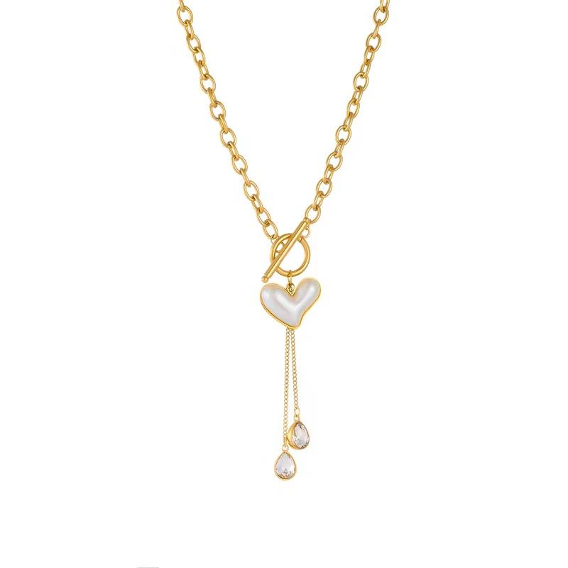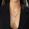 Collar de perlas de amor de acero de titanio con diseño de nicho, nuevo, de moda retro, con hebilla, borla y colgante de gota de agua, cadena de clavícula para mujer